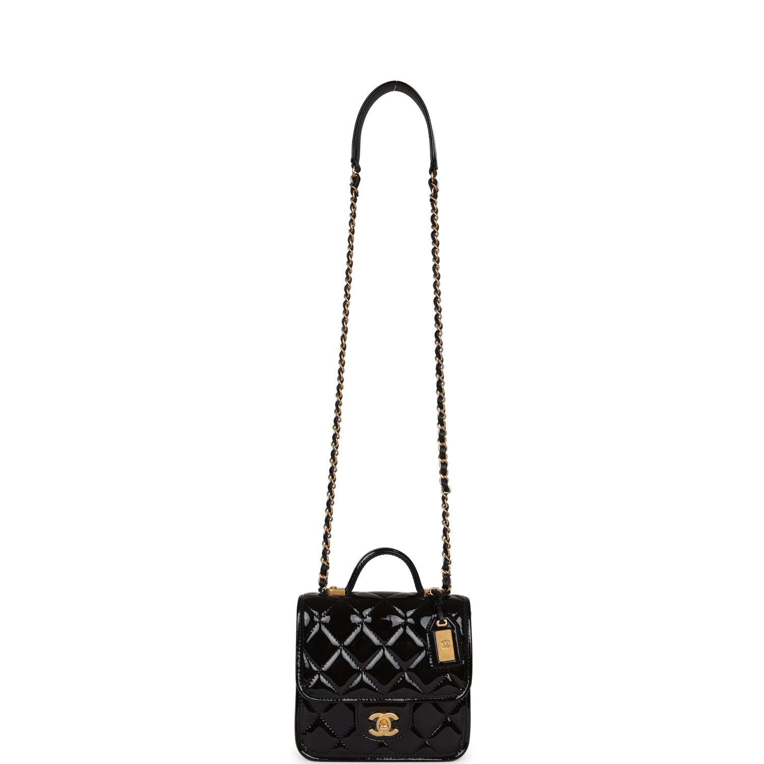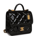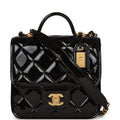 Chanel School Memory Square Top Handle Flap Bag Black Patent Leather Antique Gold Hardware