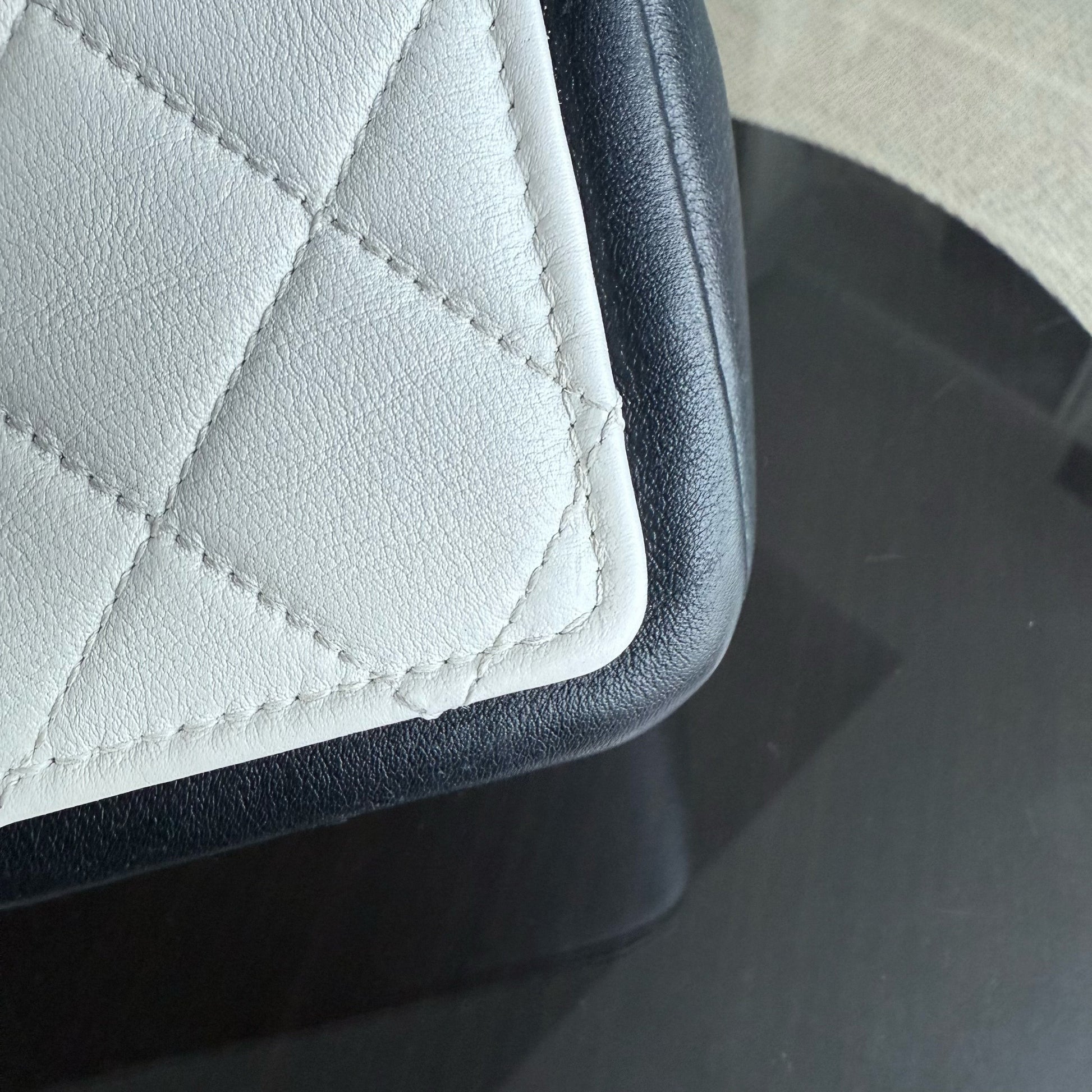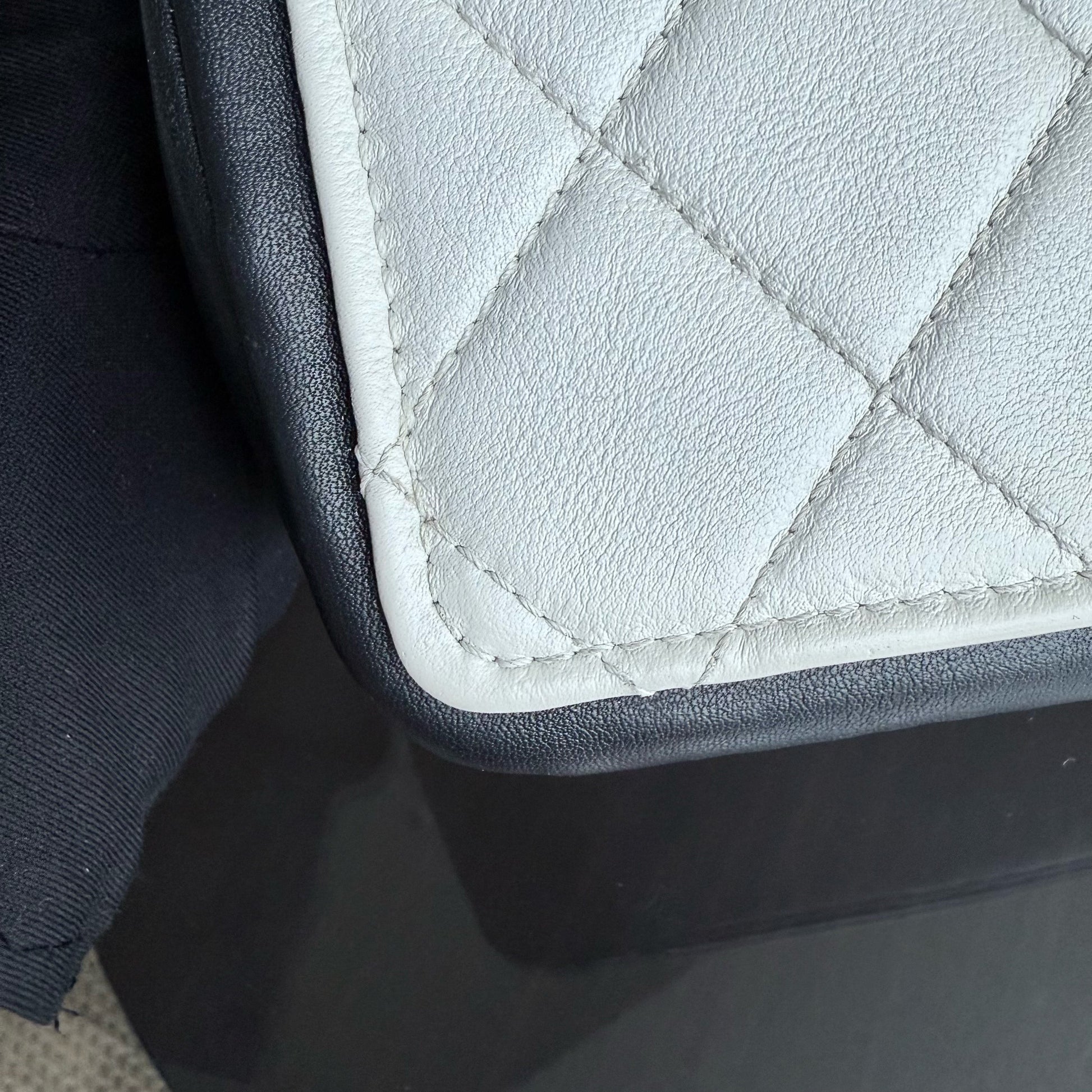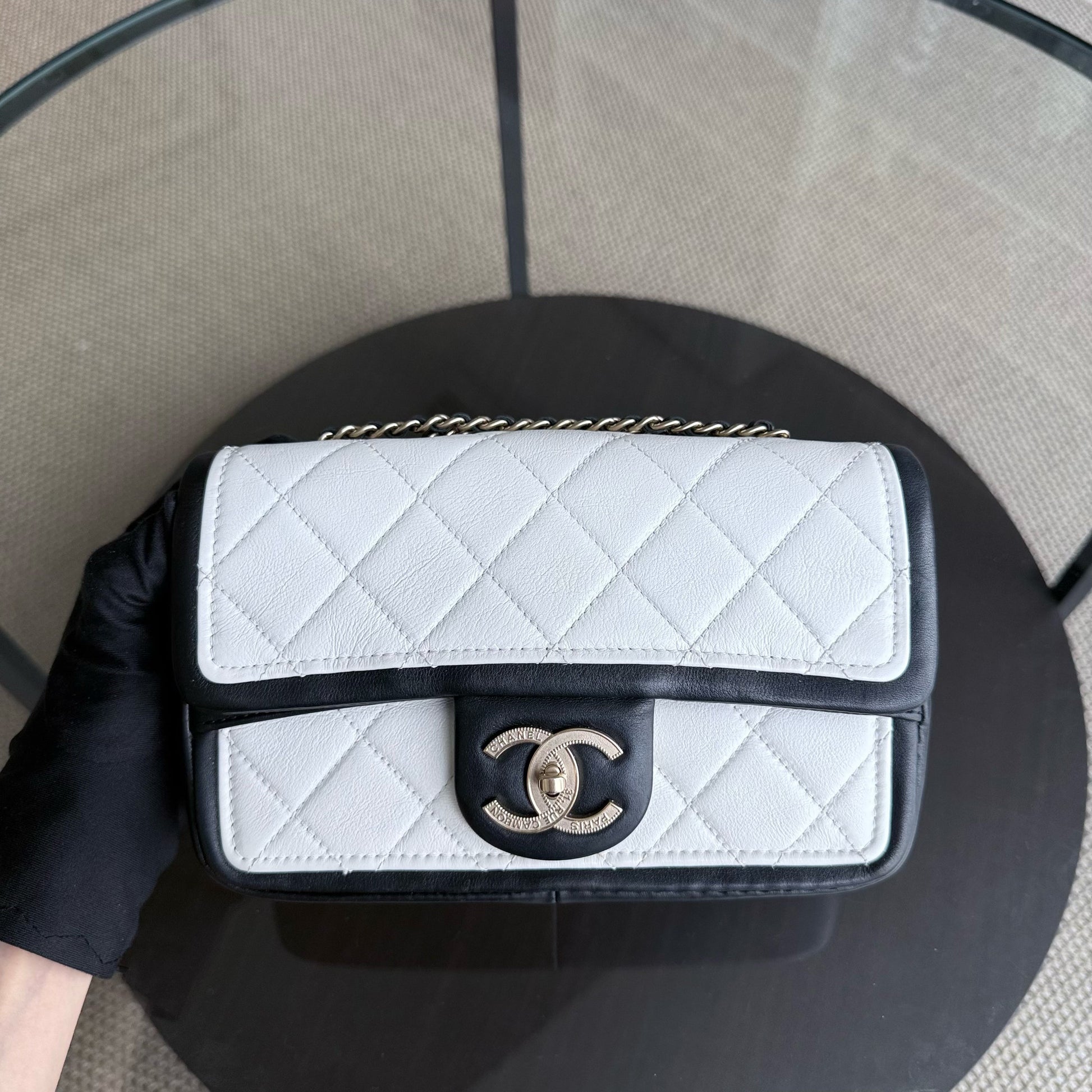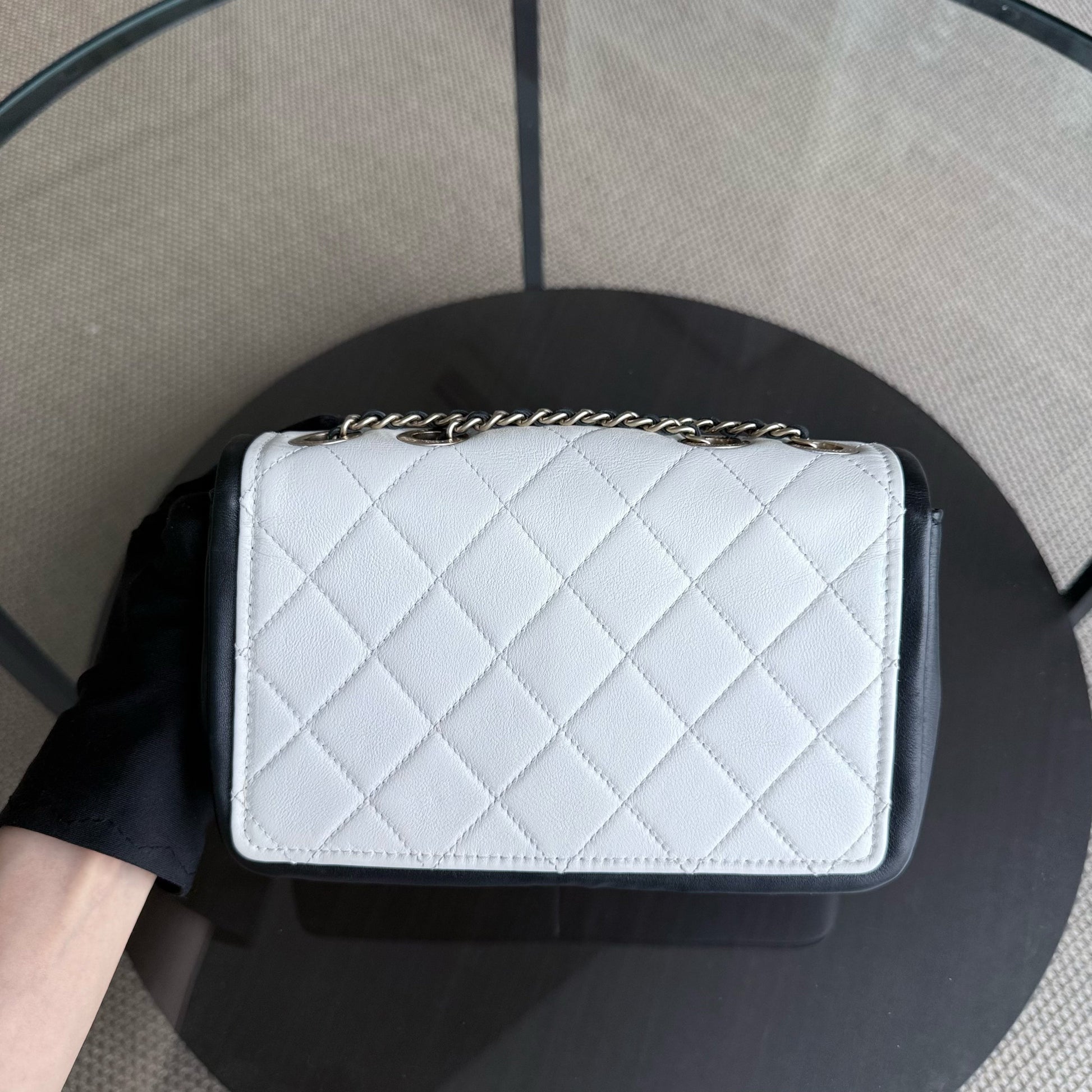 Chanel Seasonal Flap - 23CM Quilted Lambskin Bi-Color White Black Gold Hardware Series 19