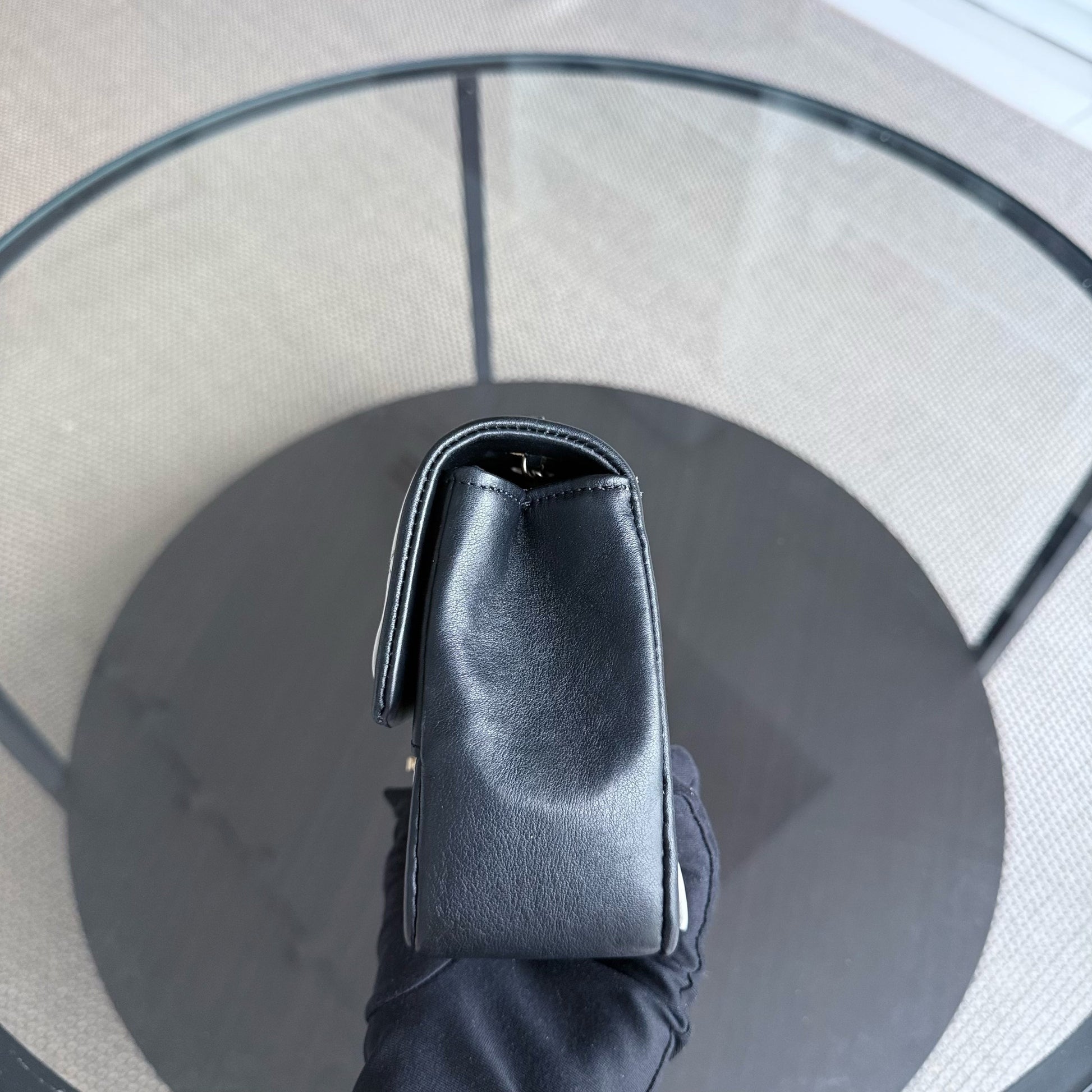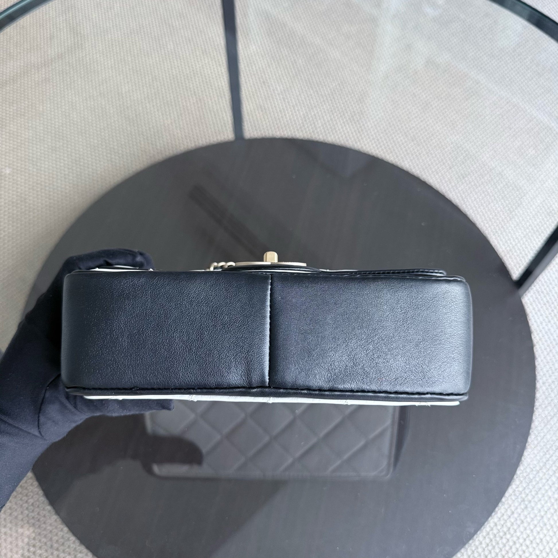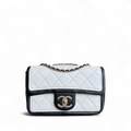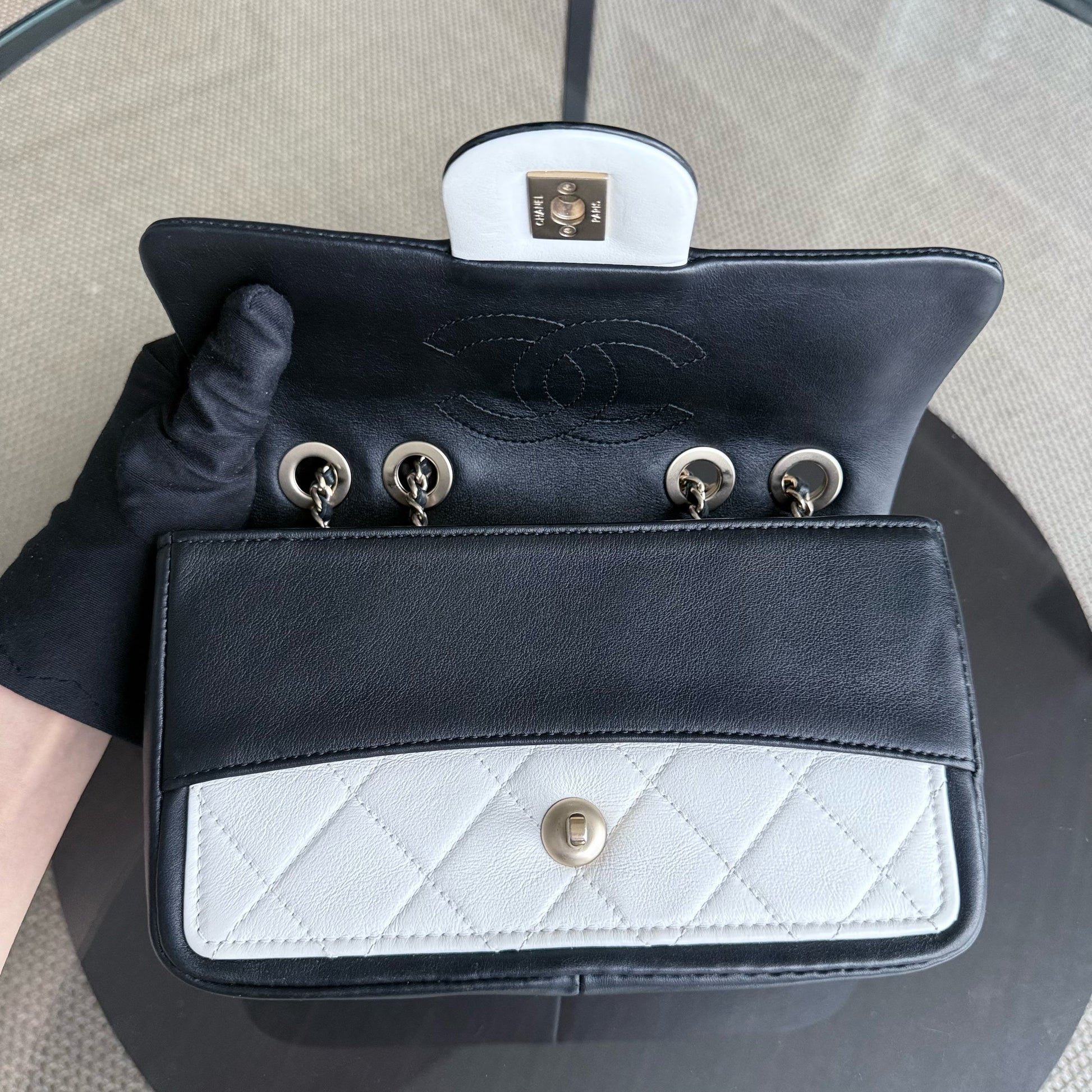 Chanel Seasonal Flap - 23CM Quilted Lambskin Bi-Color White Black Gold Hardware Series 19