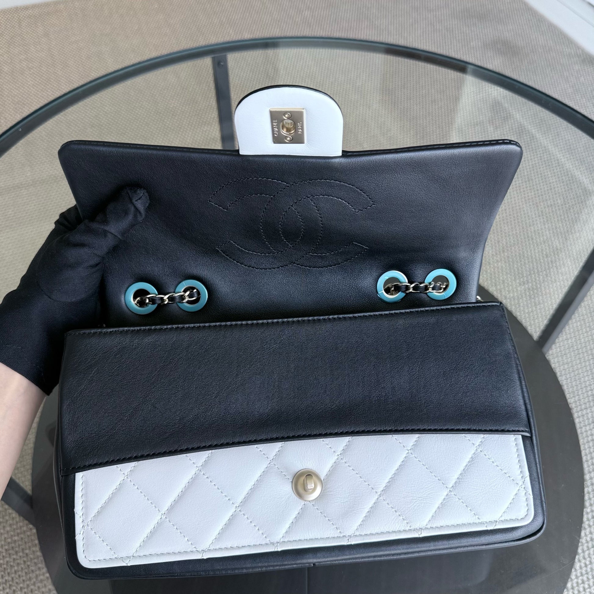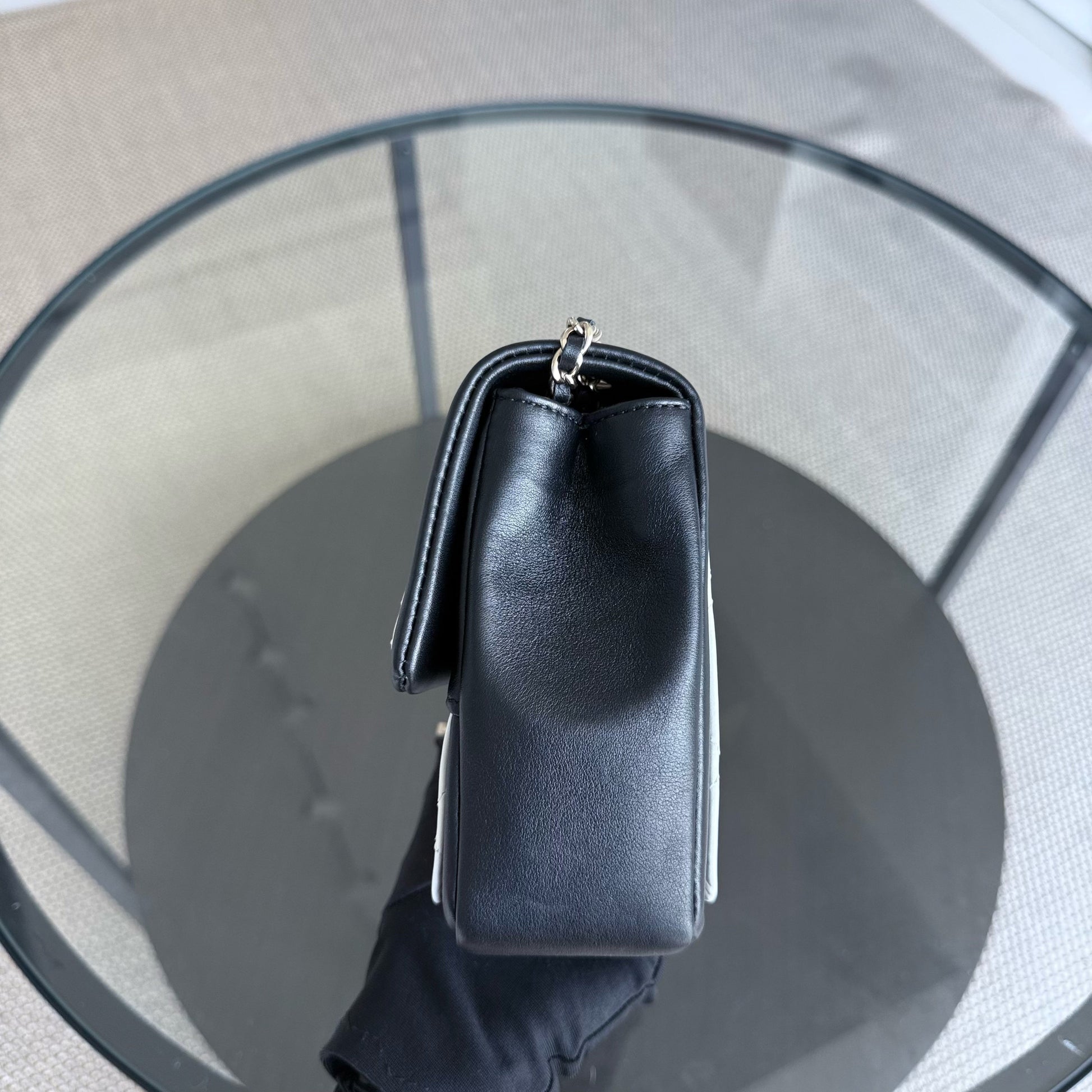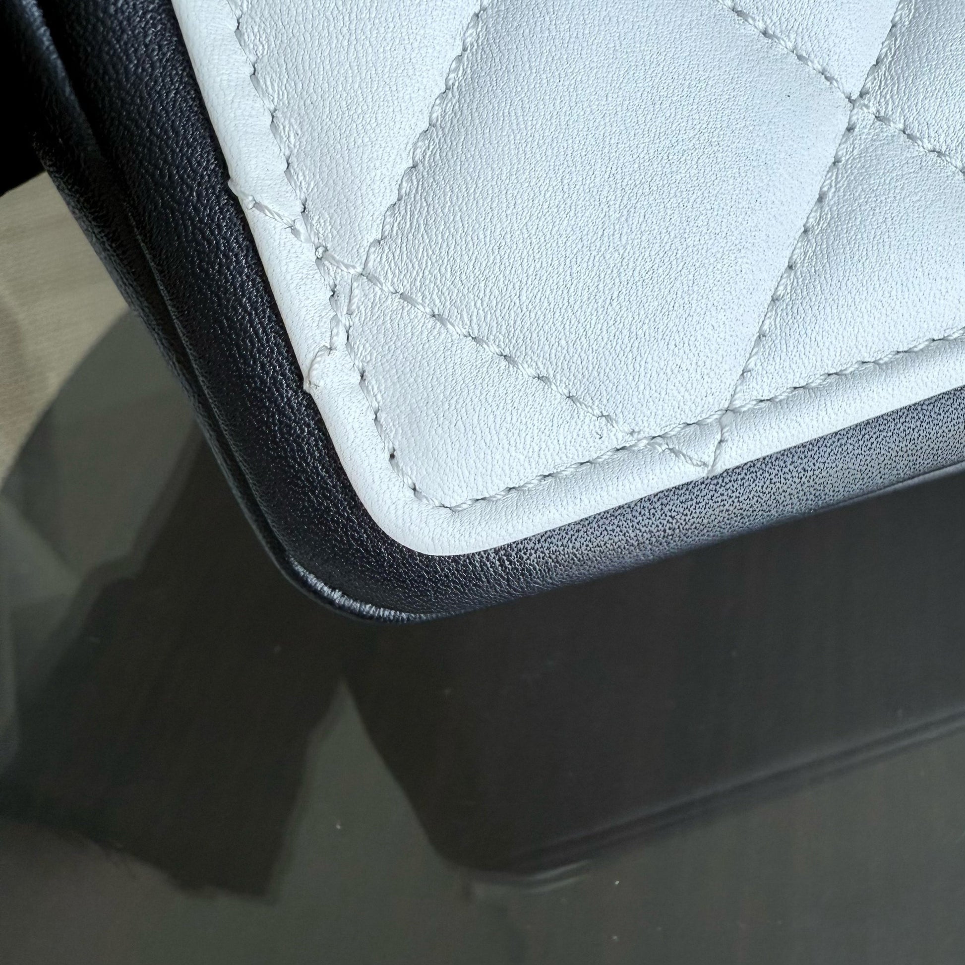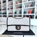 Chanel Seasonal Flap - 25CM Quilted Lambskin Bi-Color White Black Gold Hardware Series 20