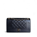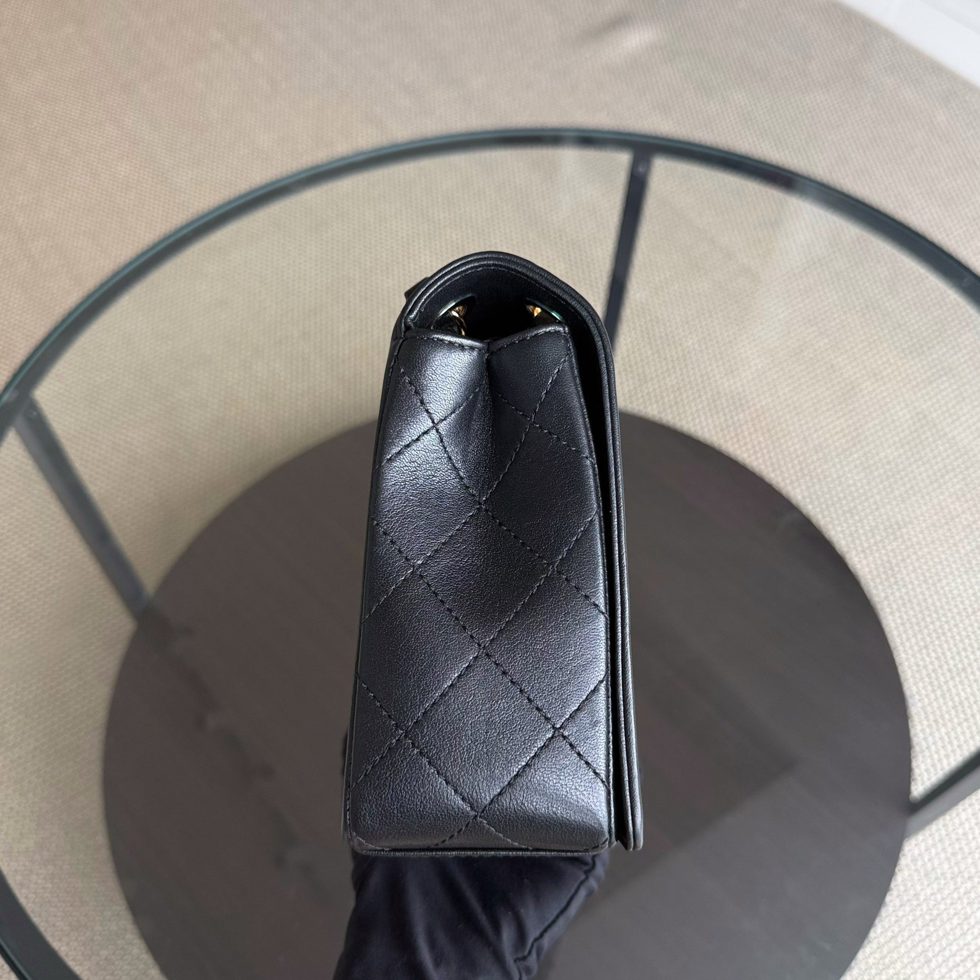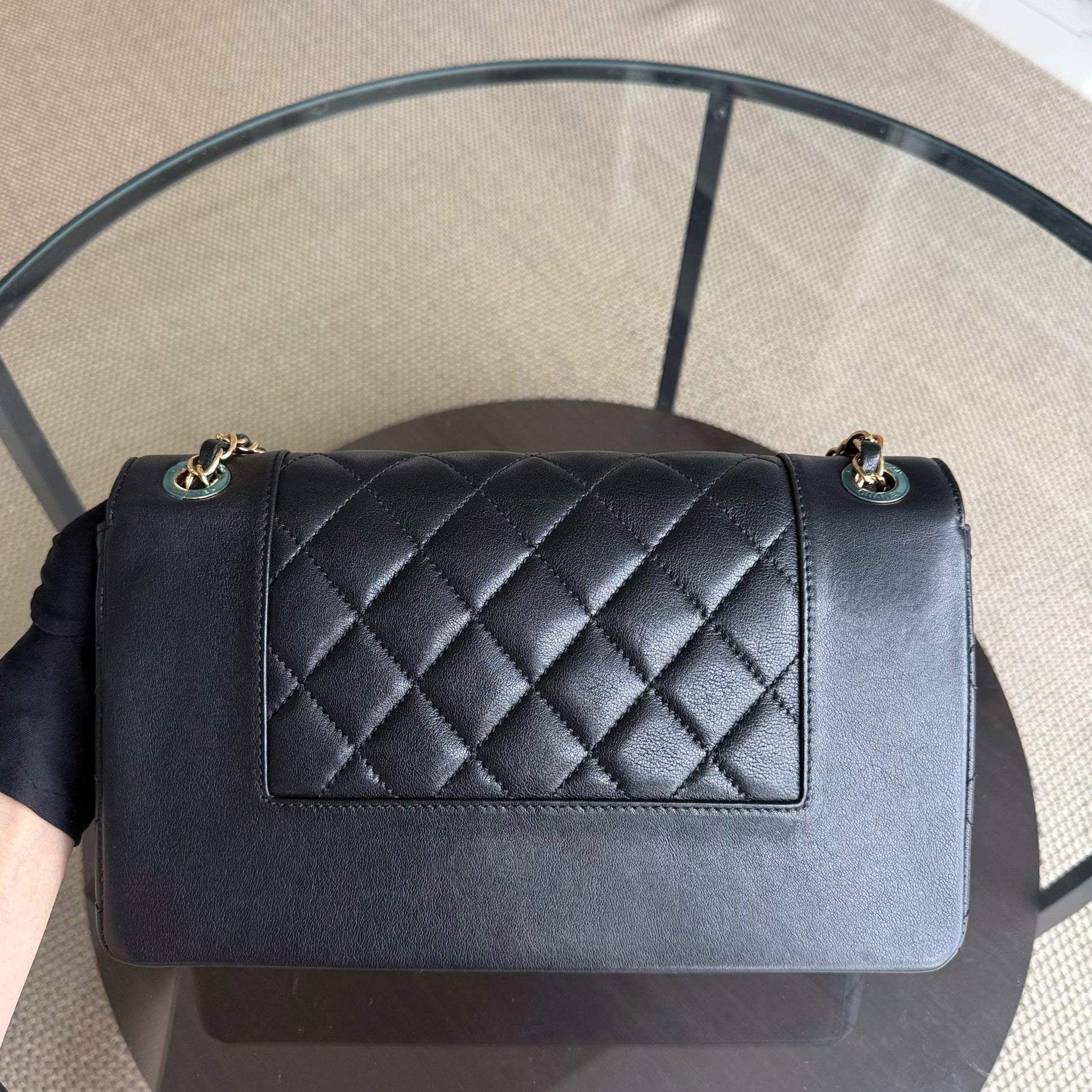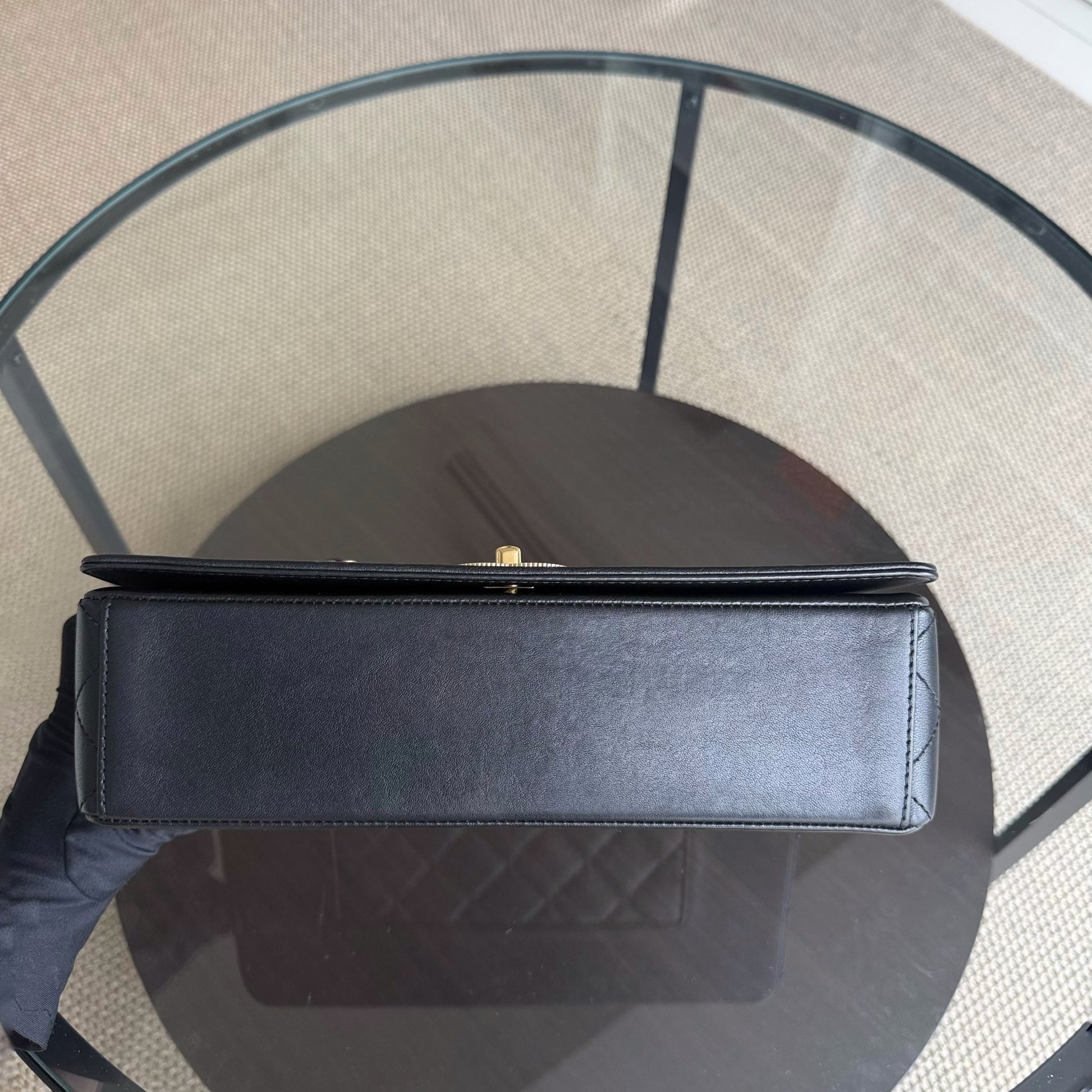 Chanel Seasonal Flap Mademoiselle - 28CM Quilted Lambskin Black Gold Hardware Series 23