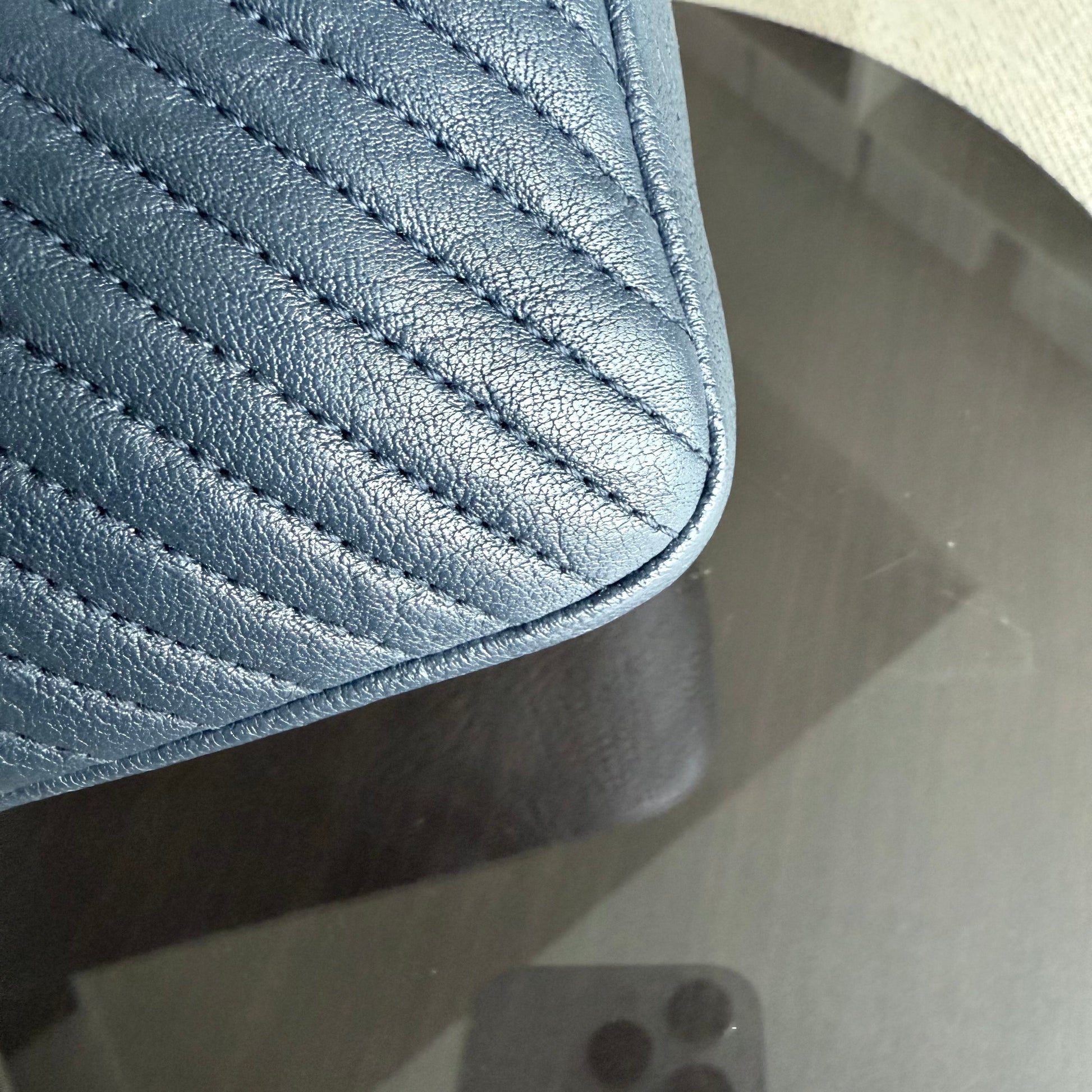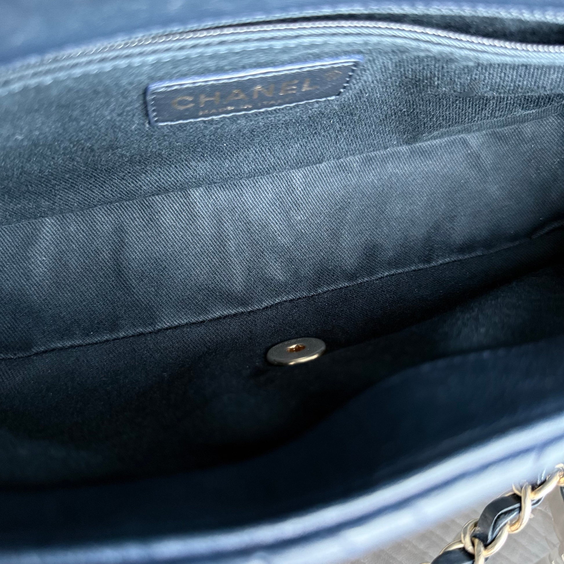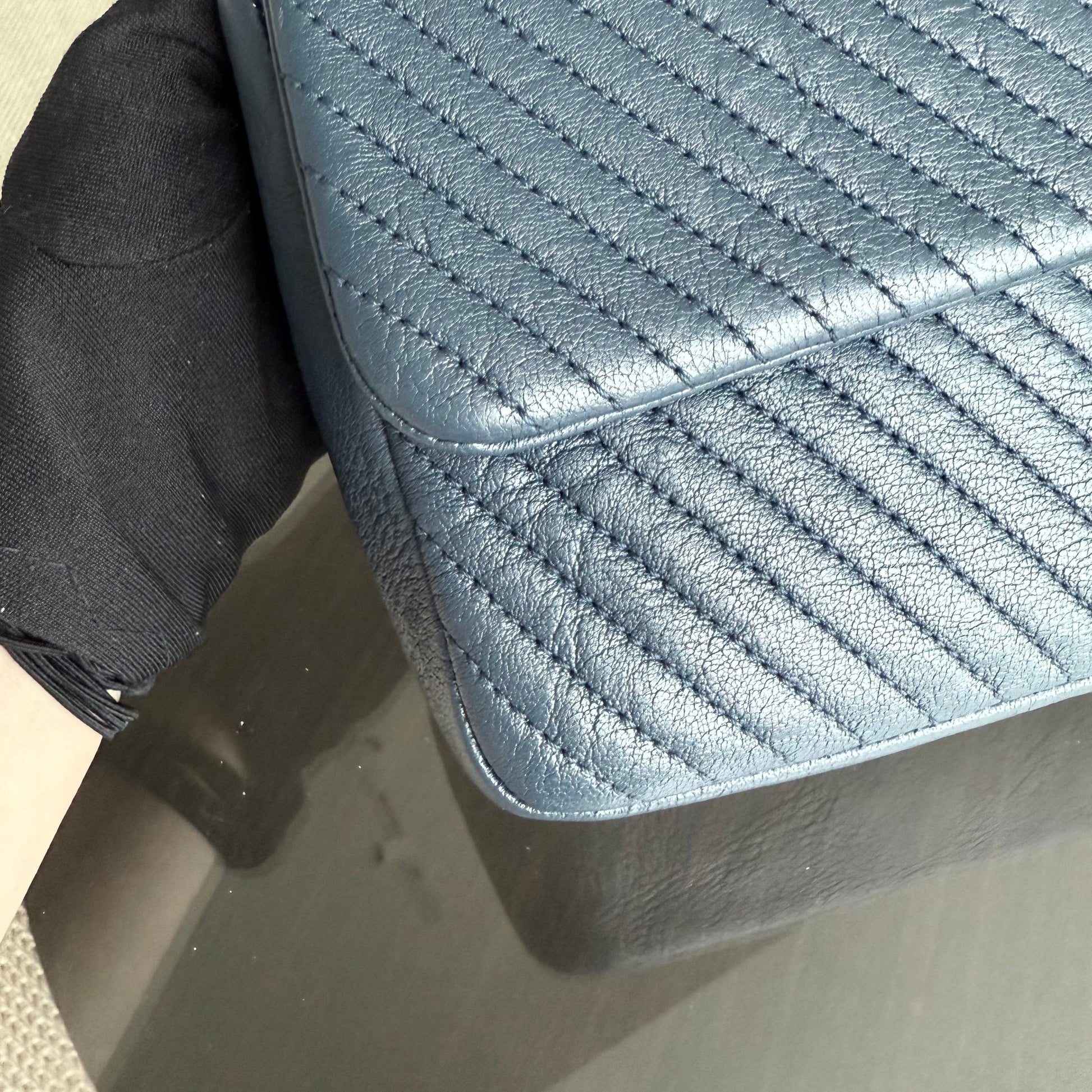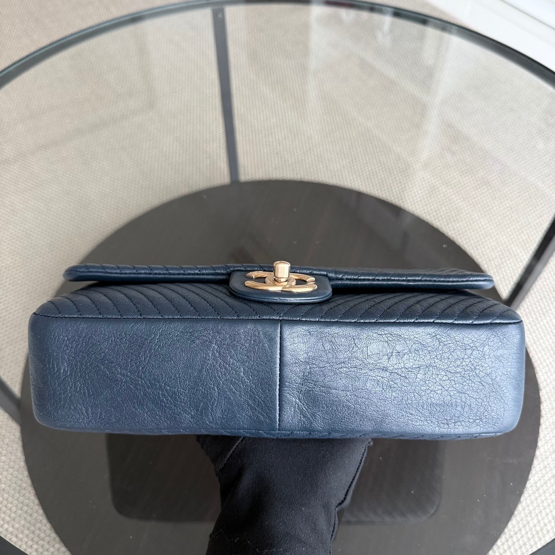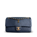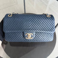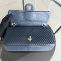 Chanel Seasonal Herringbone Medium Flap - Calfskin Chevron Blue Distressed Aged Gold Hardware Series 21