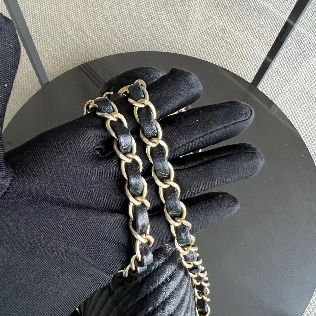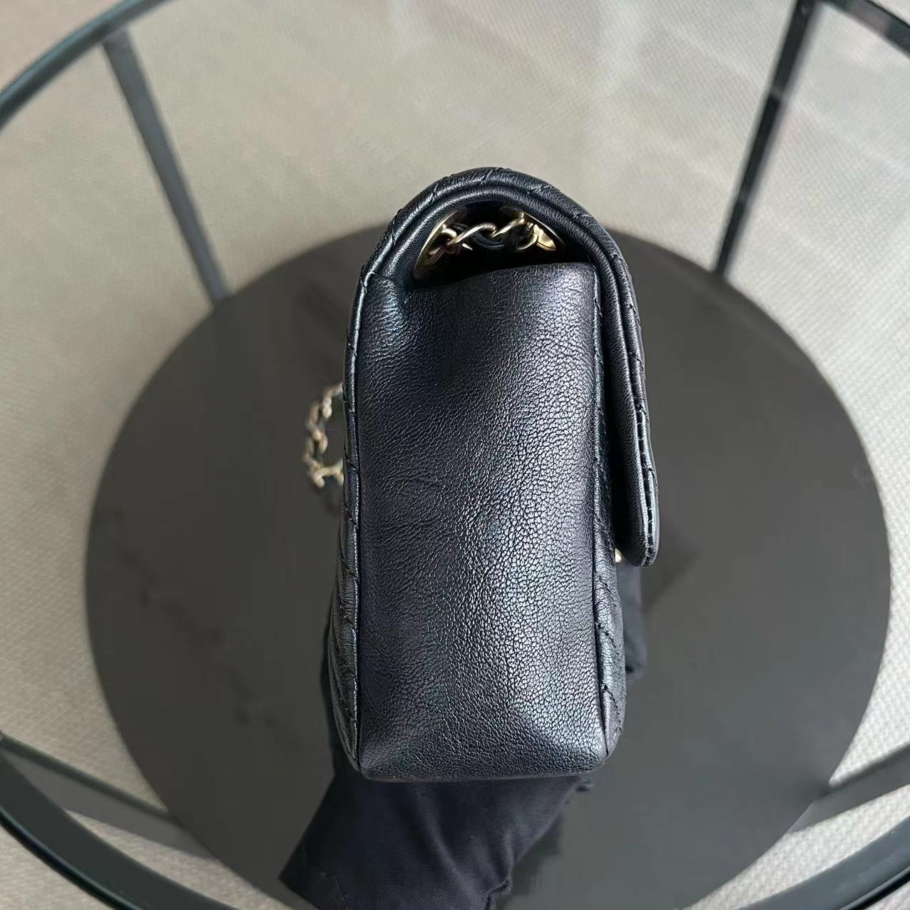 Seasonal Herringbone Medium Flap in Black Distressed Calfskin Aged Golden Hardware Series 21