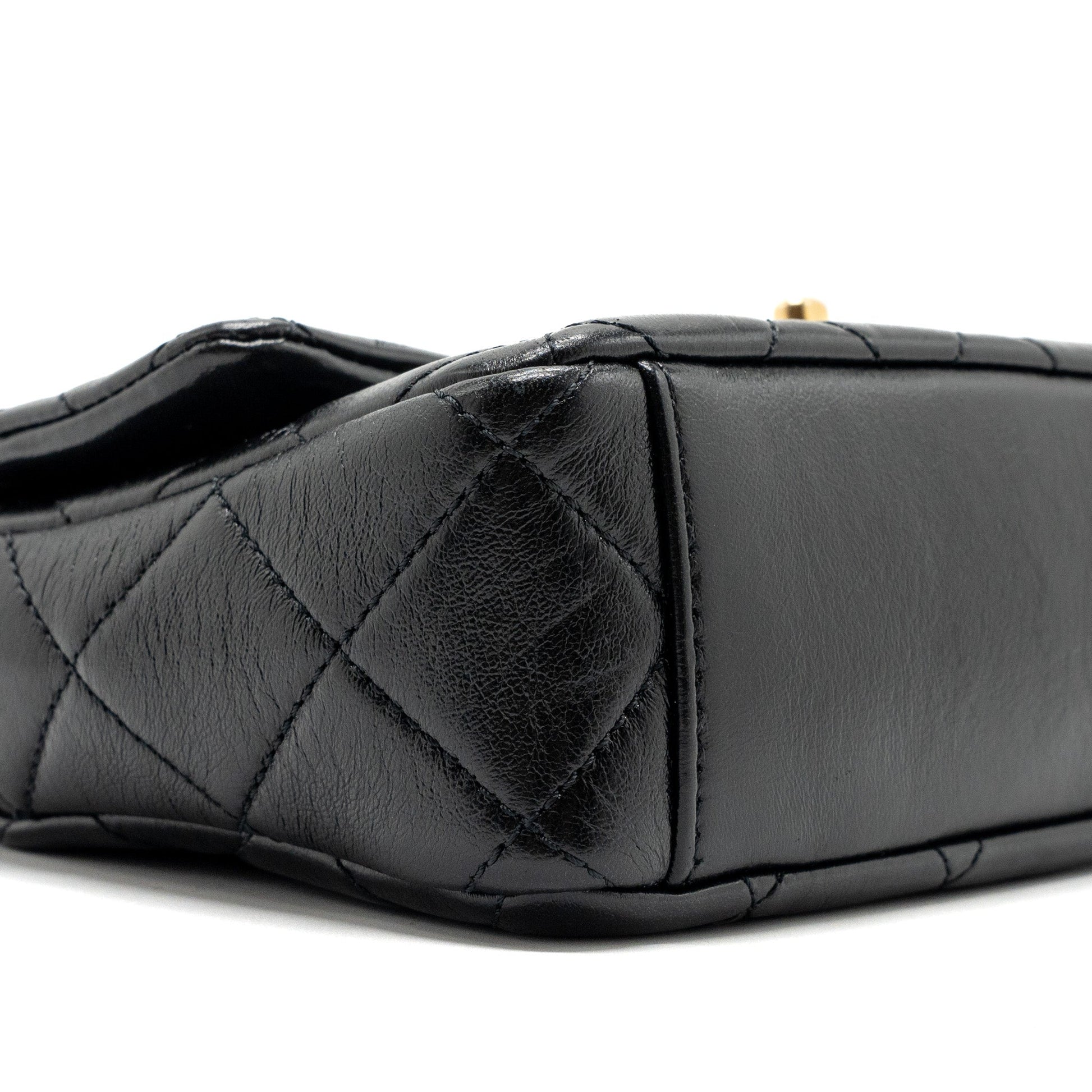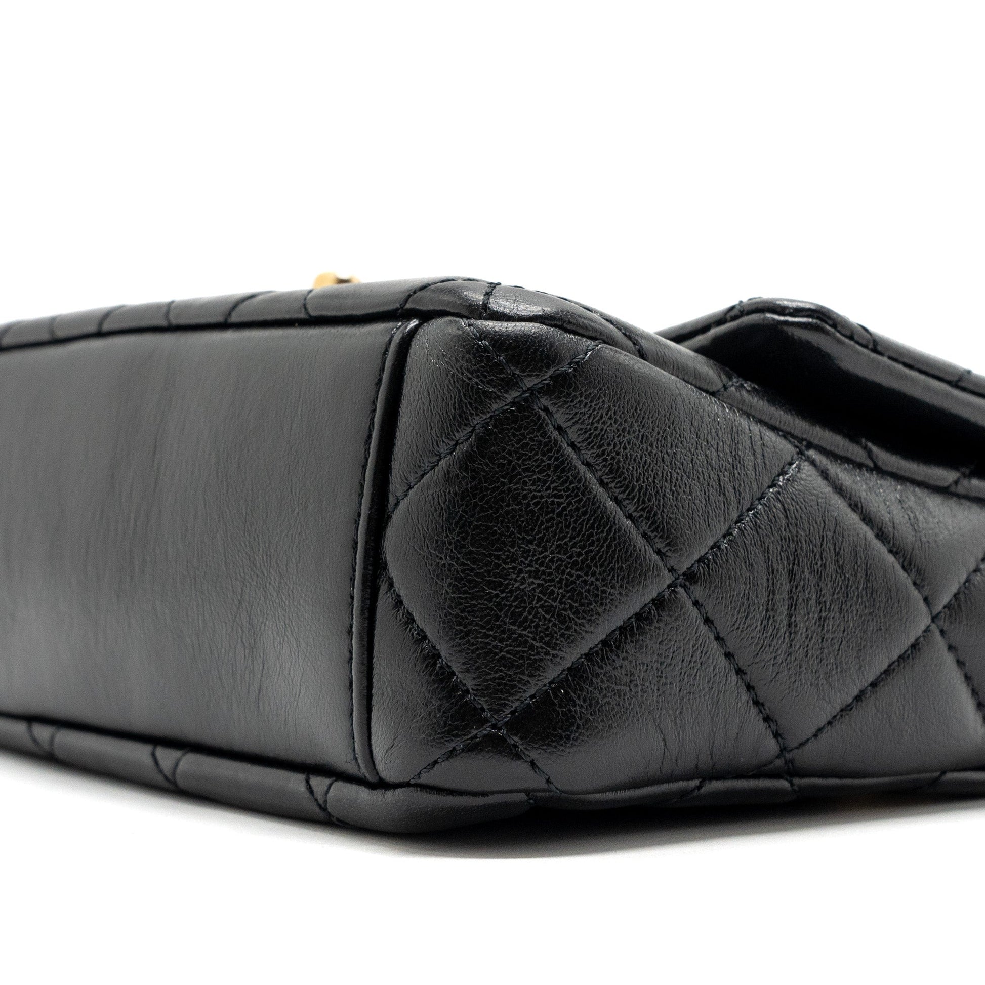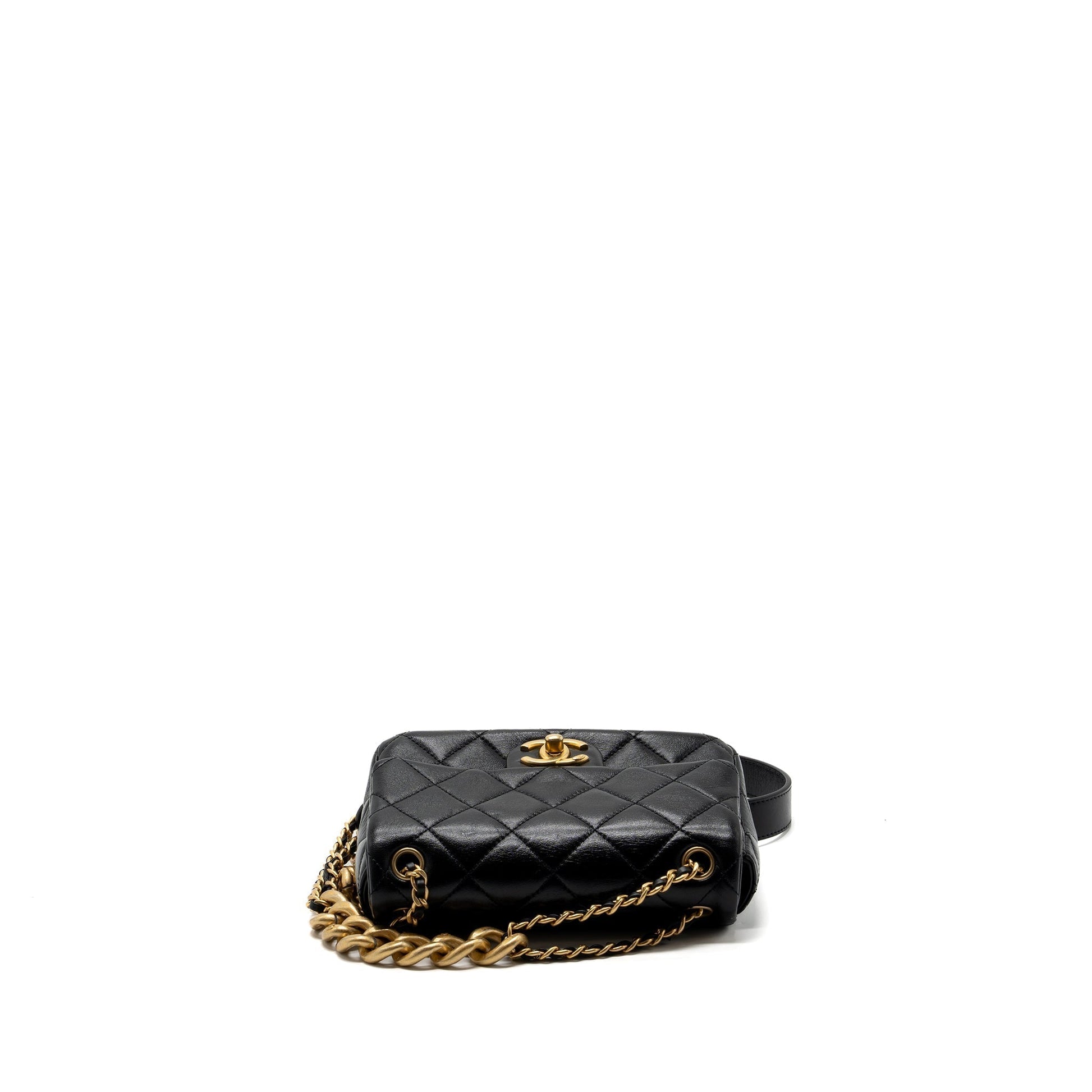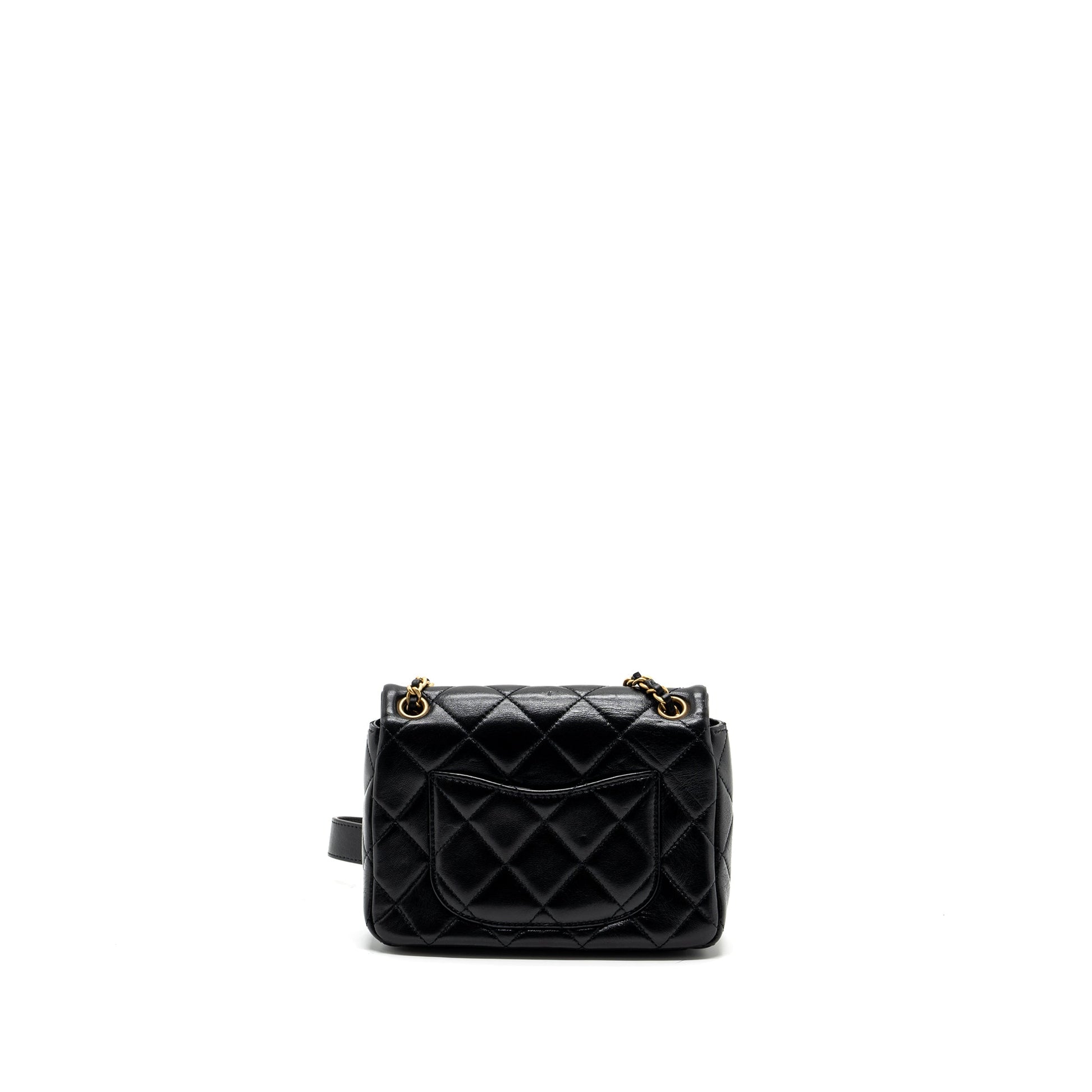 Chanel seasonal mini square flap bag with detailed chain strap calfskin black GHW (Microchip)