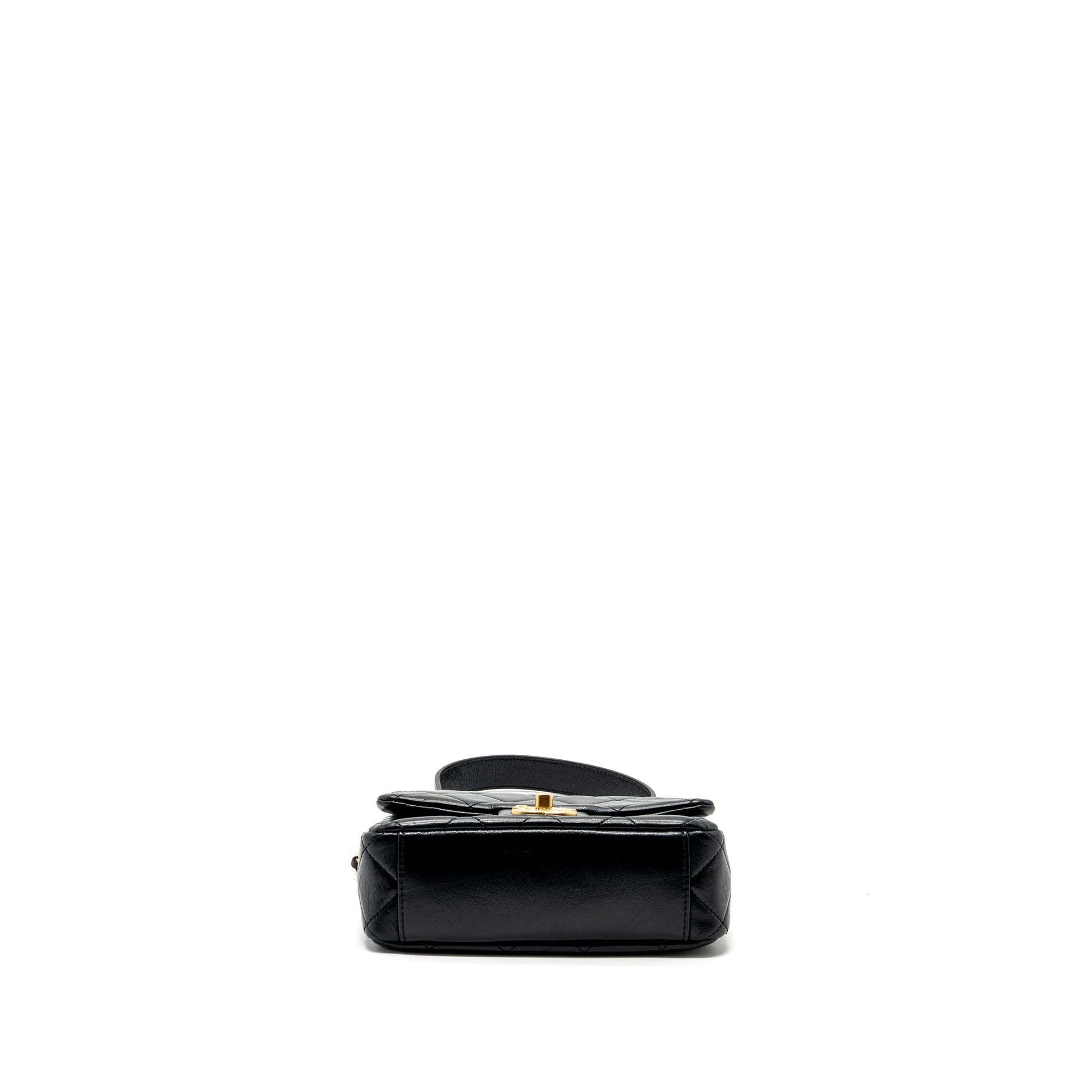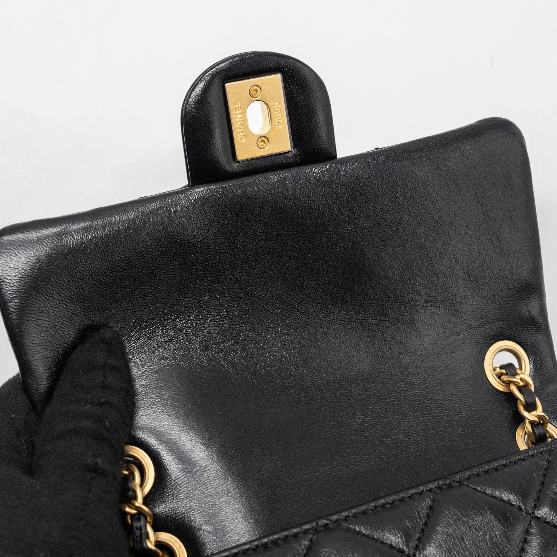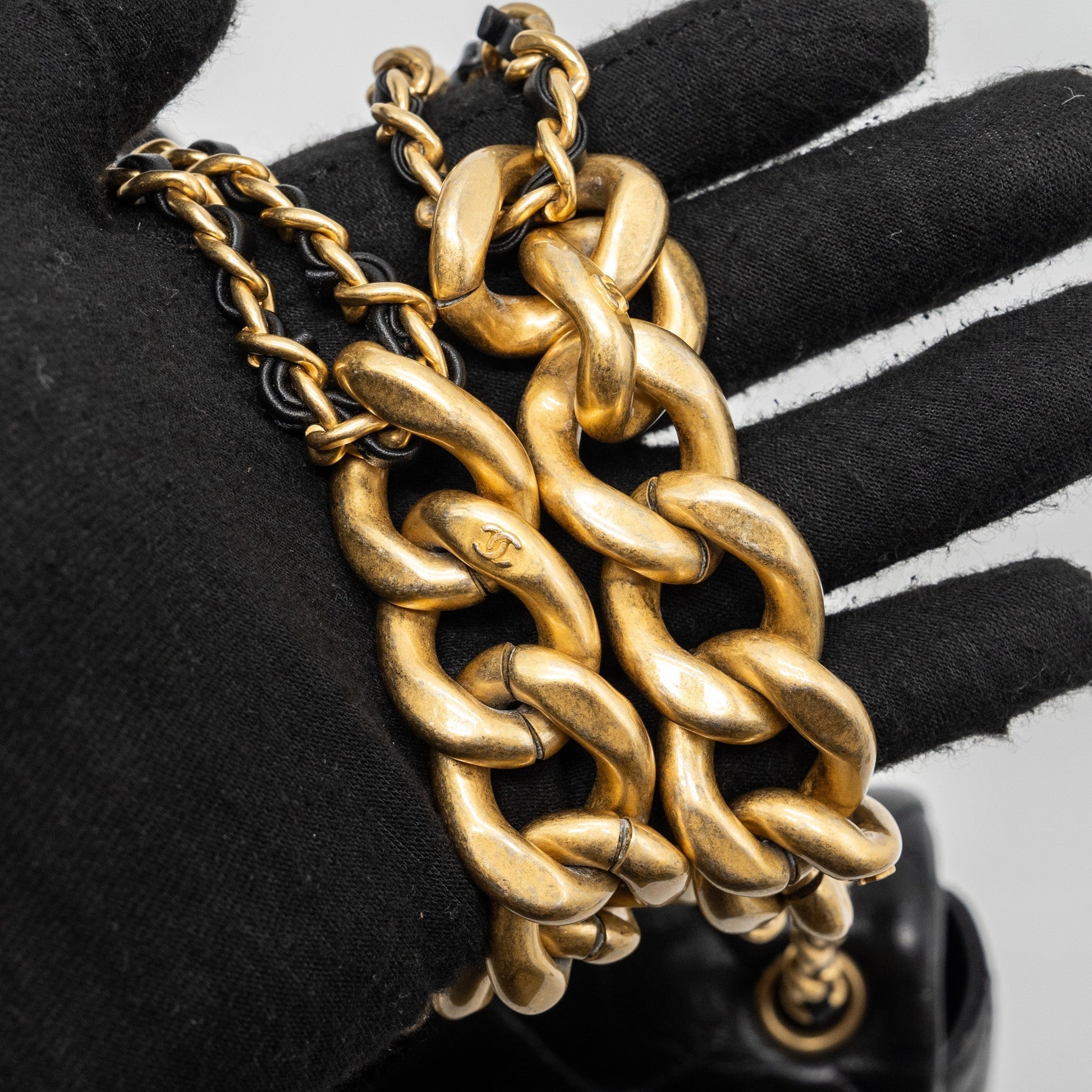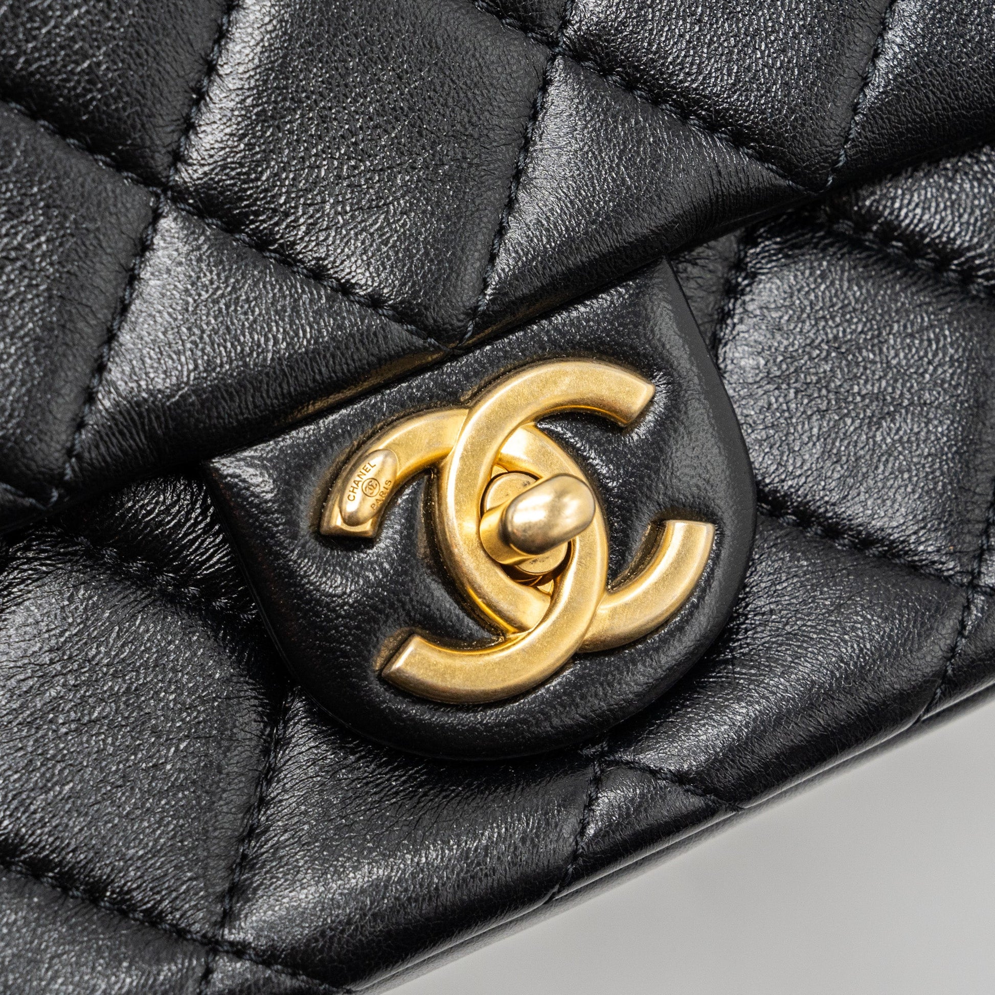 Chanel seasonal mini square flap bag with detailed chain strap calfskin black GHW (Microchip)