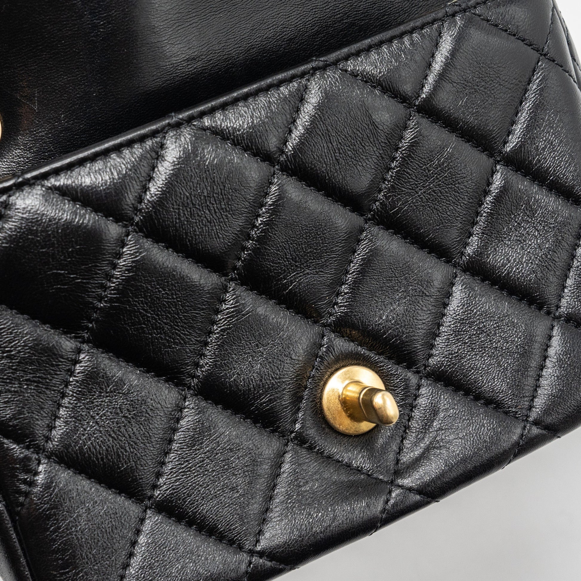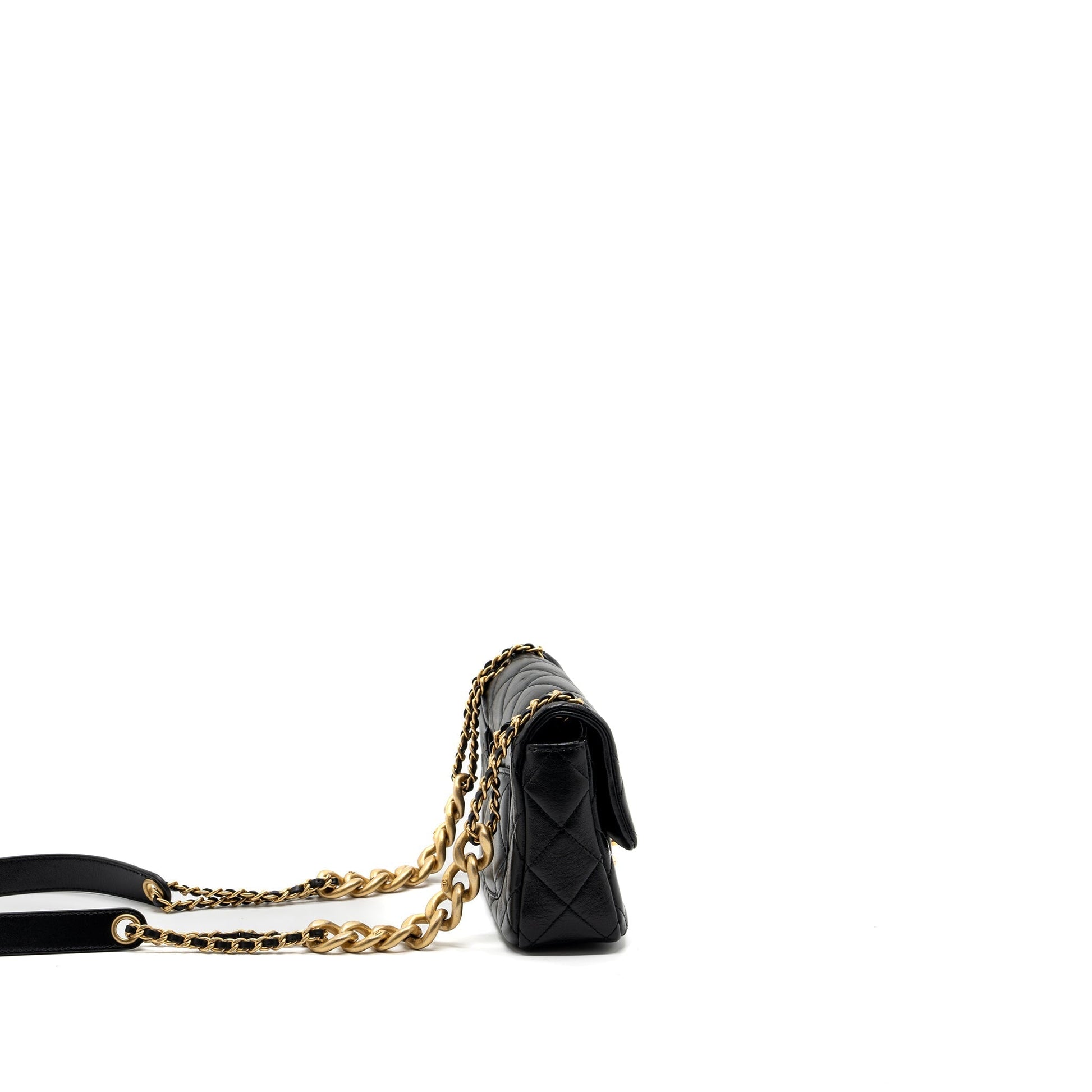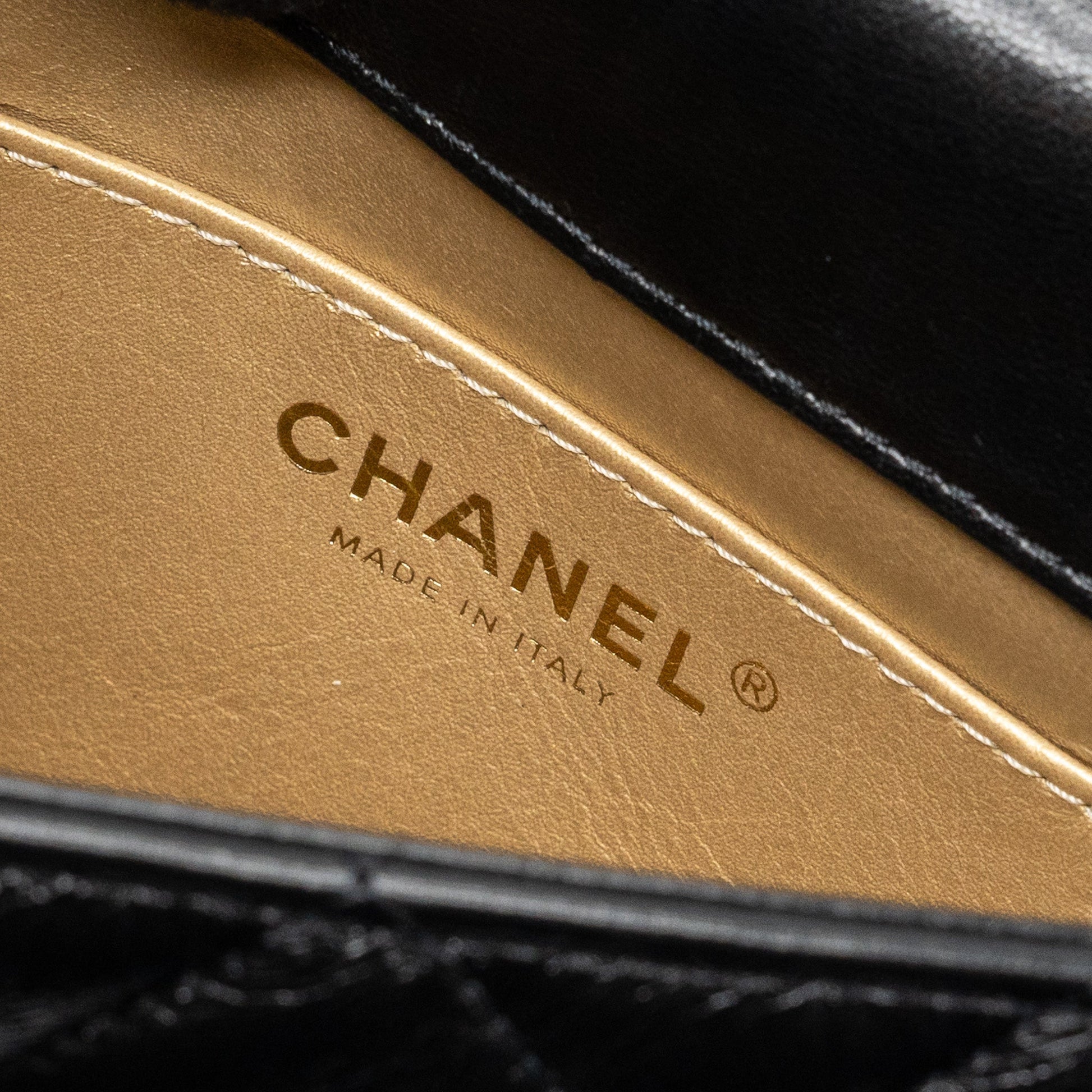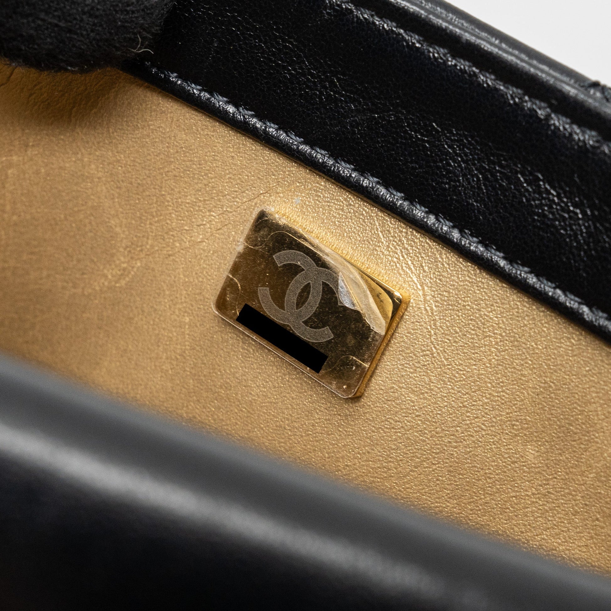 Chanel seasonal mini square flap bag with detailed chain strap calfskin black GHW (Microchip)