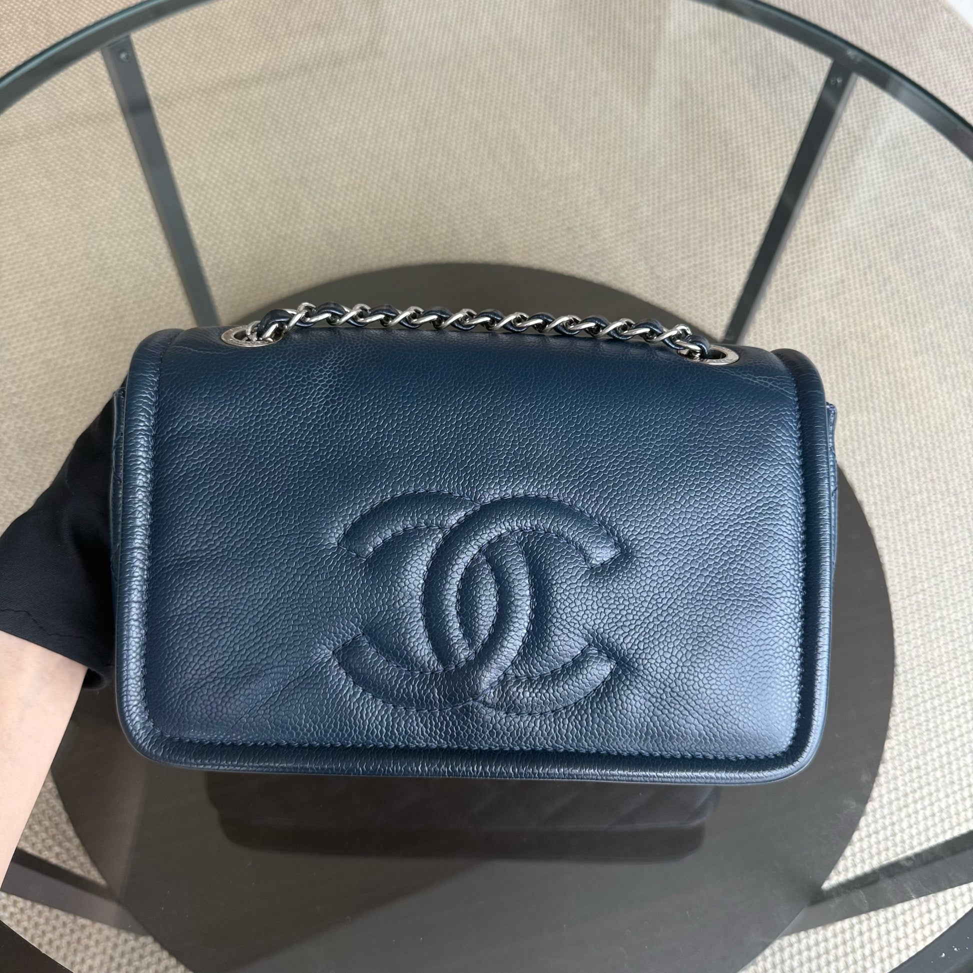 Chanel Seasonal Timeless CC Flap - Caviar 24CM Dark Blue Silver Hardware Series 15