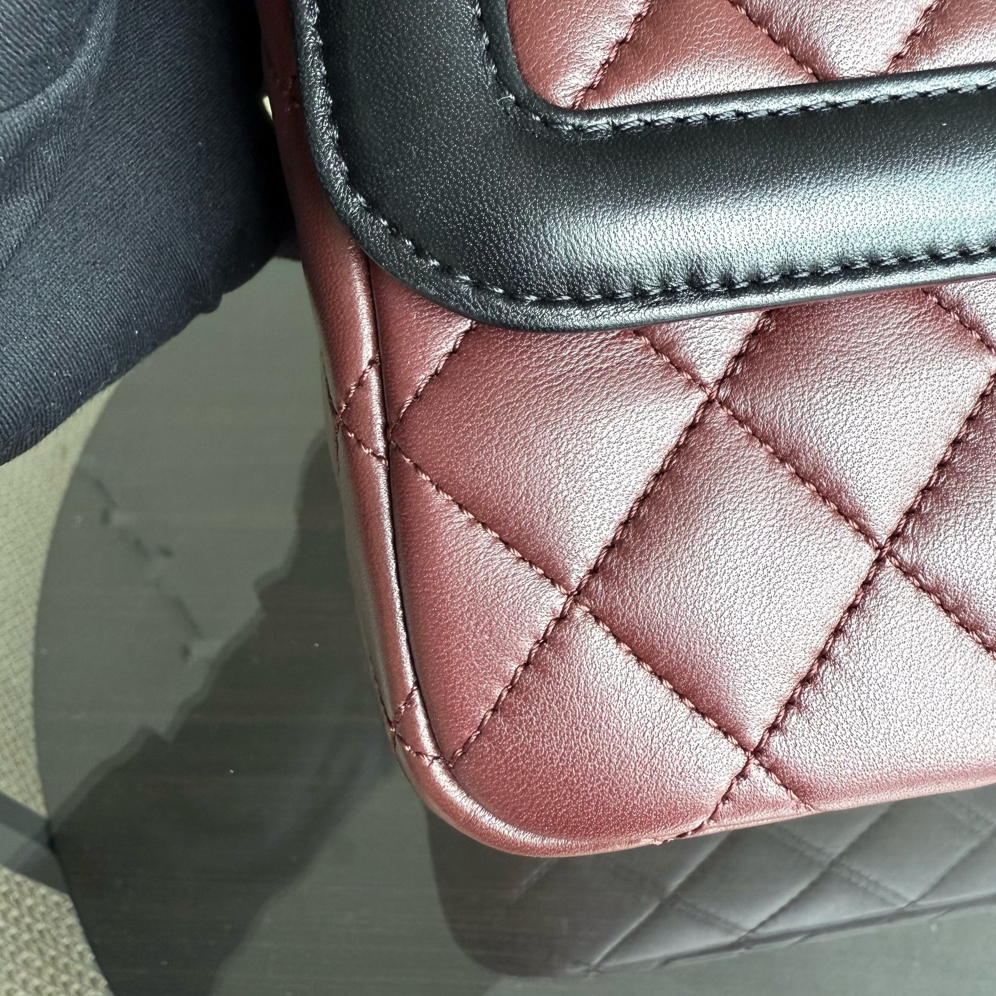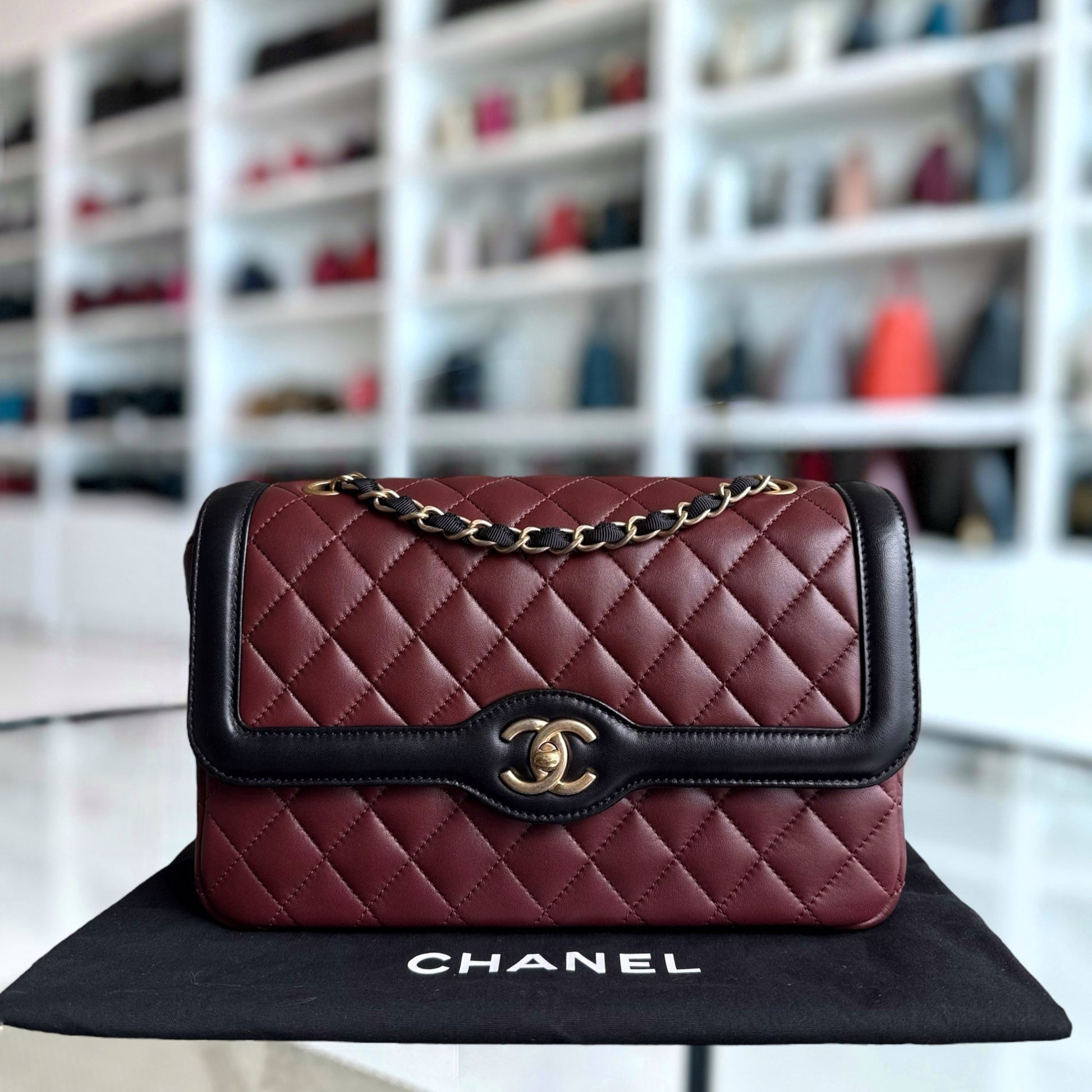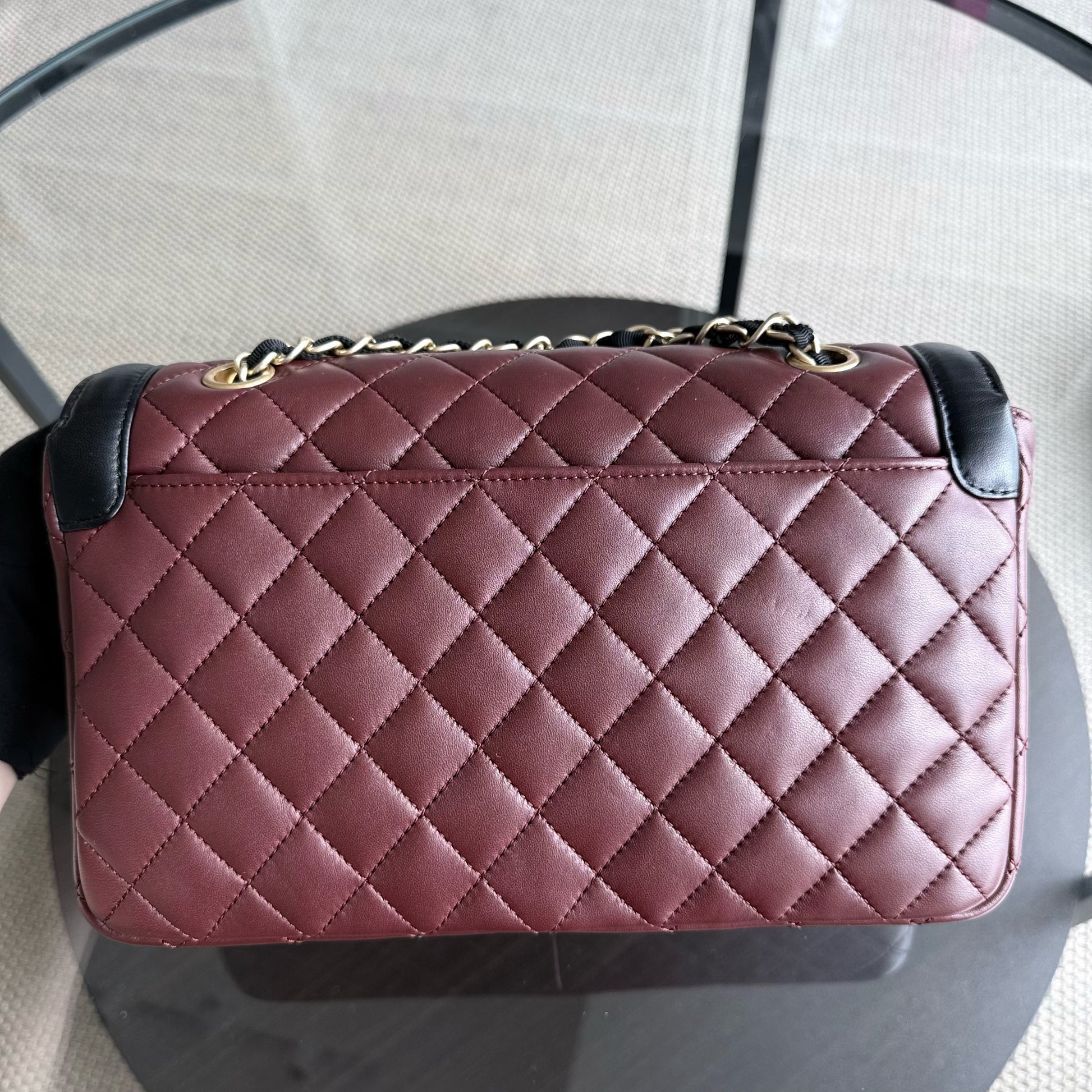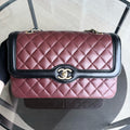 Chanel Seasonal Two-tone Flap Medium - Quilted Lambskin Dark Burgundy Red Black Gold Hardware Series 21
