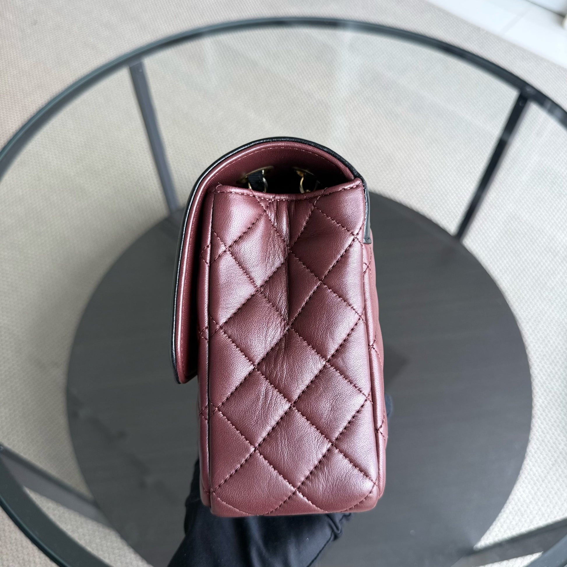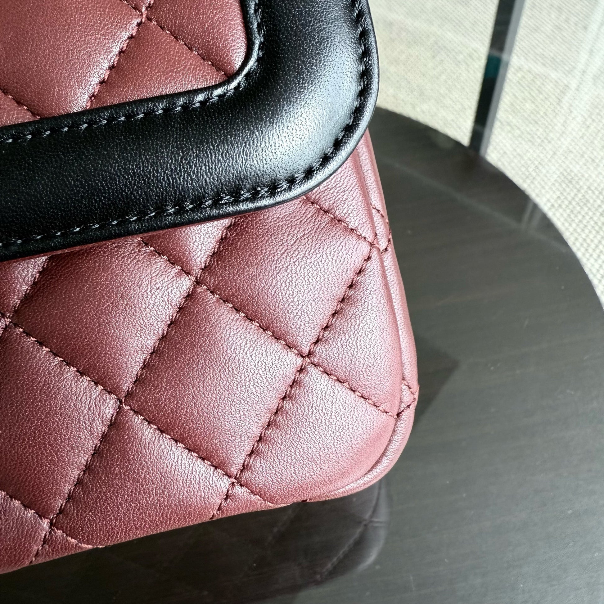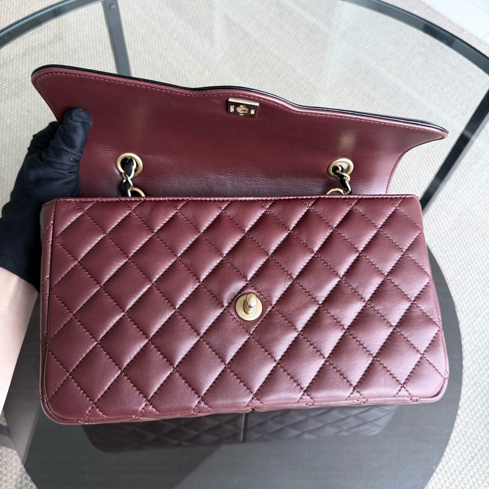 Chanel Seasonal Two-tone Flap Medium - Quilted Lambskin Dark Burgundy Red Black Gold Hardware Series 21