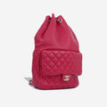 From the 2016 Cruise collection this ‘Chanel Backpack in Seoul’ is spacious enough to hold all your every day necessities comfortably inside. Crafted from buttery red lambskin and featuring a quilted leather front pocket for additional storage with a drawstring closure.
