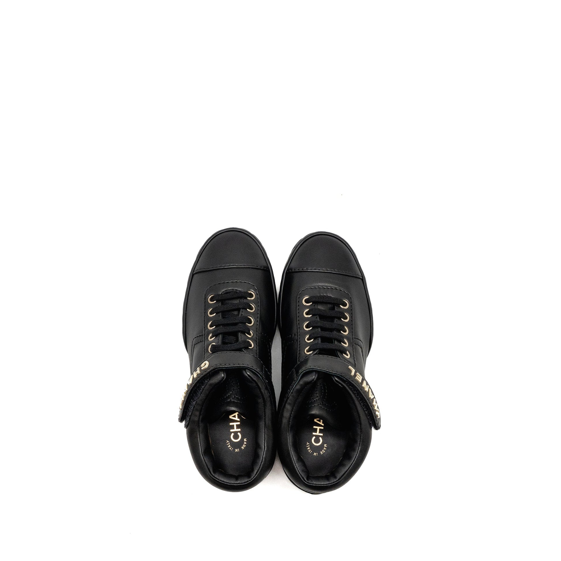 Chanel Size 37.5 23A Letter Logo Sneakers Lambskin Black LGHW