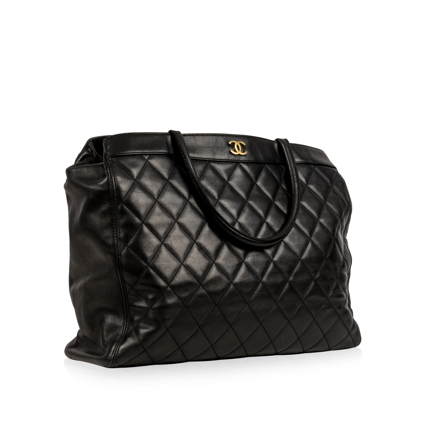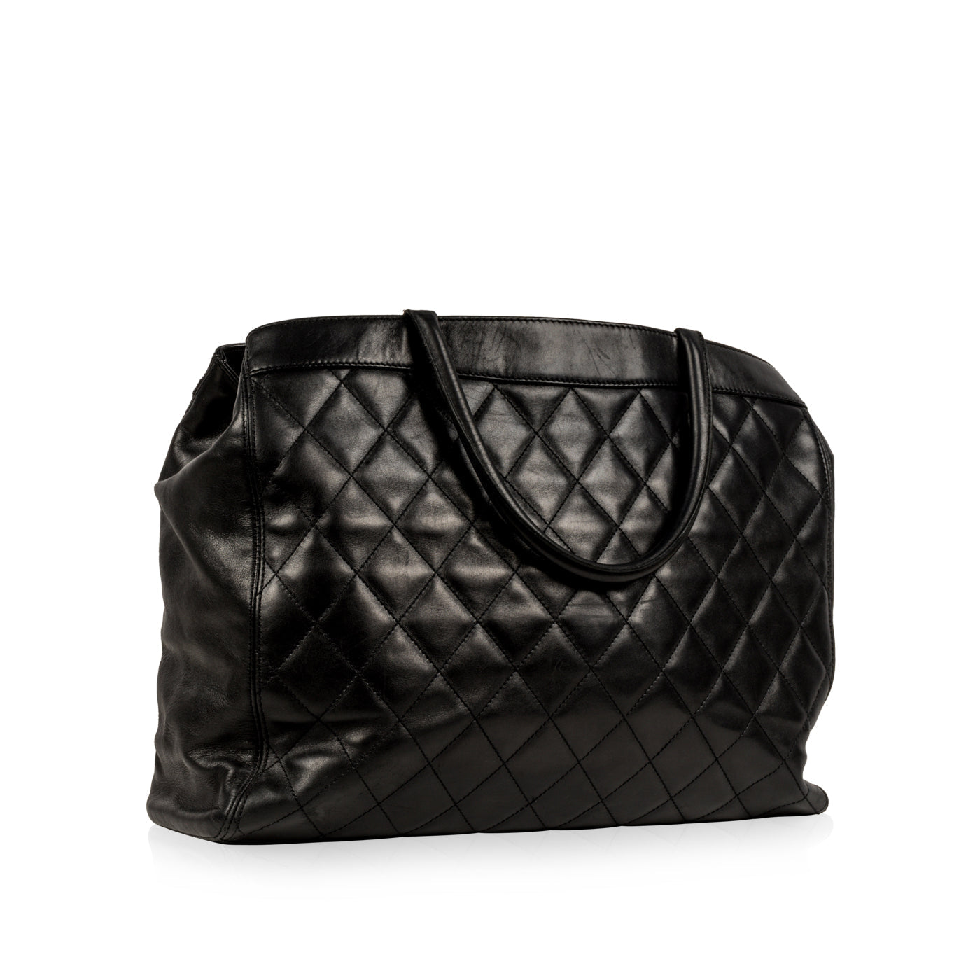 Carefully crafted from smooth lambskin leather, this vintage Chanel travel tote is an absolute must-have. The ideal bag for a woman with a love for luxury and a soft spot for Chanel, this large vintage tote is also the perfect companion if you like to carry your whole world with you wherever you go. Combining the best of both worlds, not only does this bag offer style as well as a practicality, but it also balances tasteful discreetness with high fashion luxury. Elegant, timeless and effortlessly chic, this vintage tote is one you’ll never fall out of love with. A well-worthy addition to any luxury handbag collection, this CC Chanel bag belongs in any woman’s wardrobe – but she won’t be around for much longer! Whether you’re travelling, going to work, running errands, or wherever your day might take you – this vintage tote is the best companion to have by your side at all times.