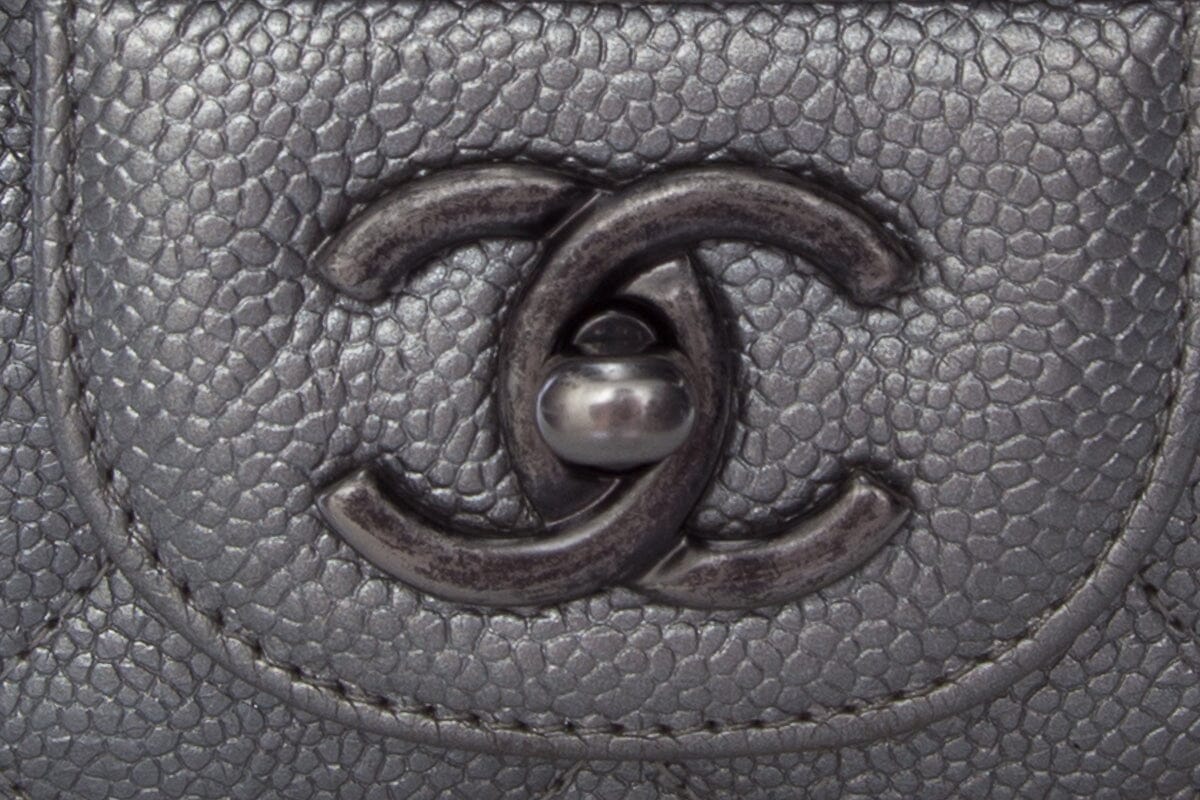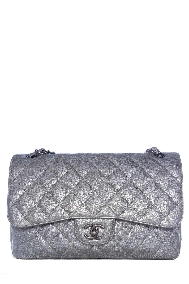 Chanel Silver Caviar Jumbo RHW Handbag comes with authenticity card and dust bag. This item is in excellent condition.