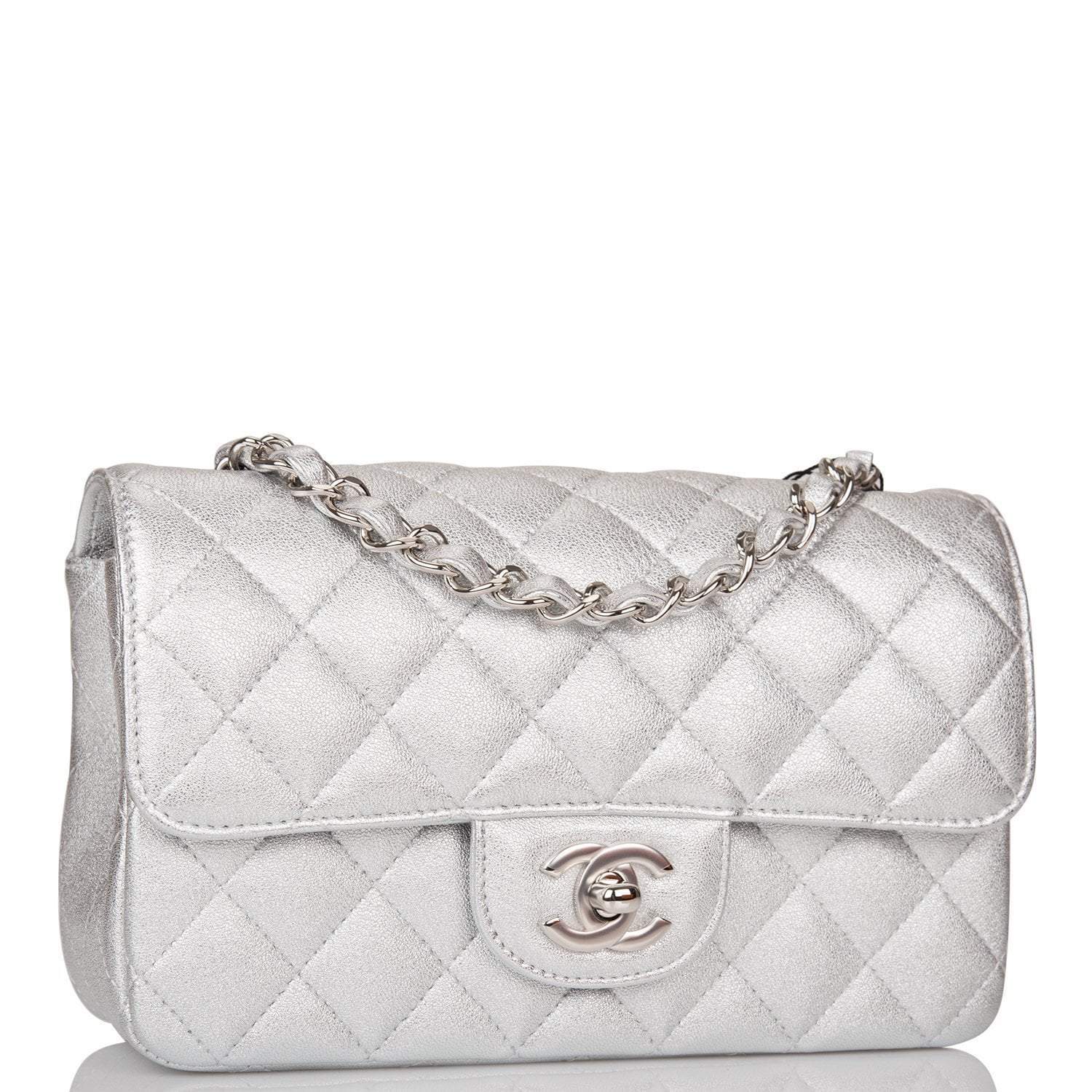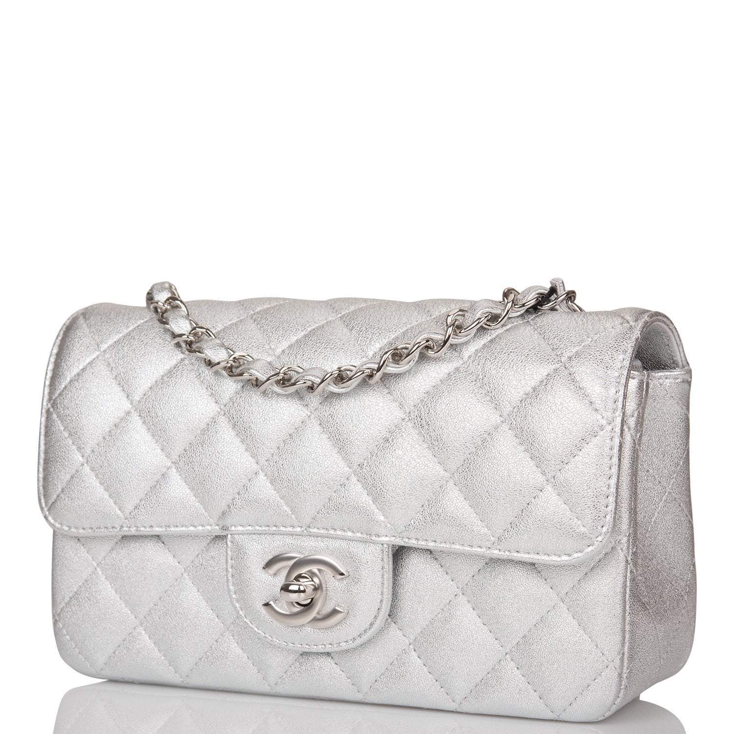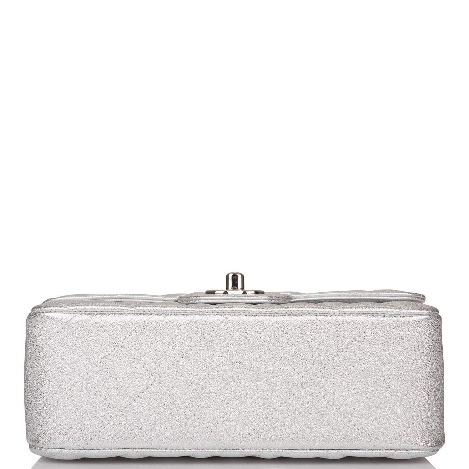 Chanel Silver Metallic Quilted Lambskin Rectangular Mini Classic Flap Bag Silver Hardware