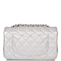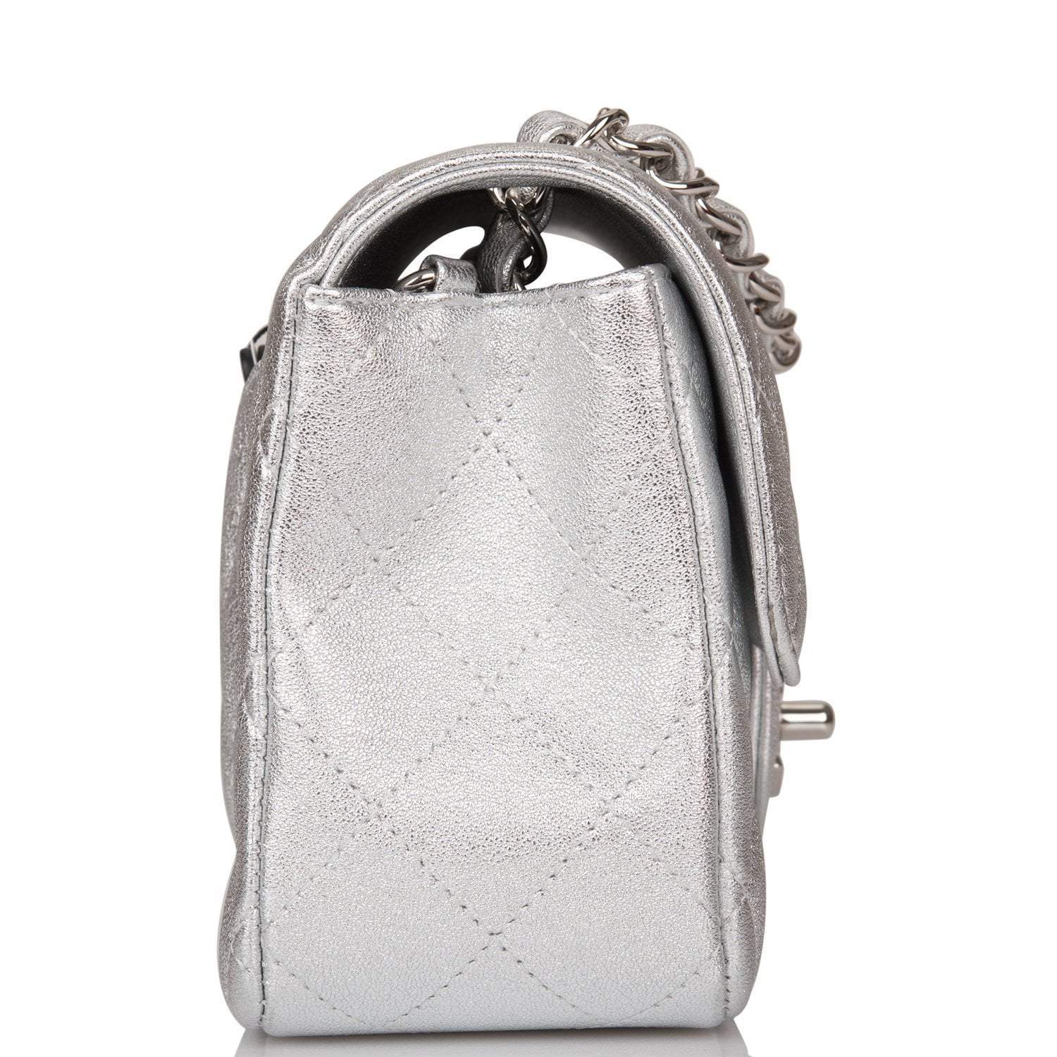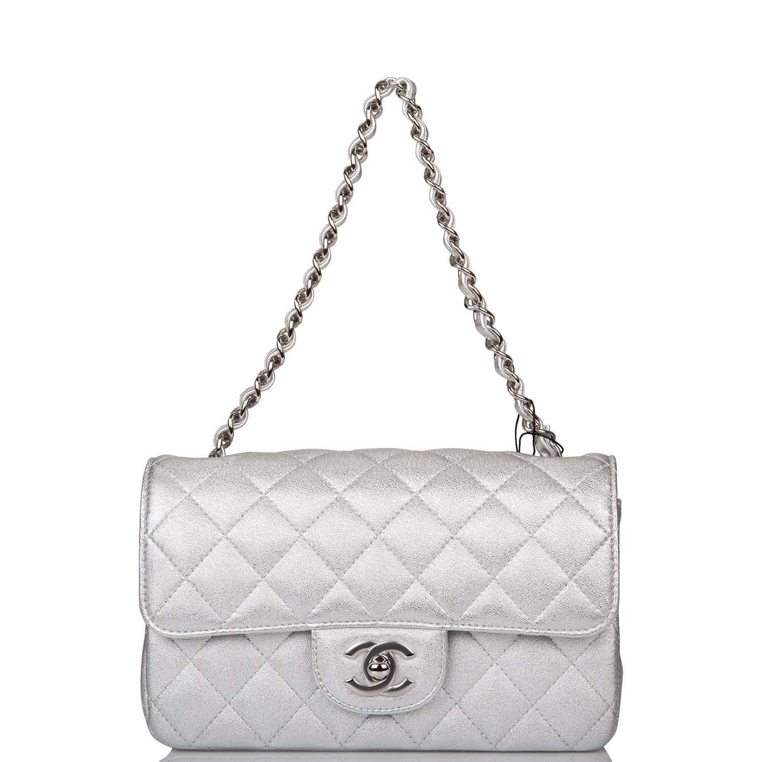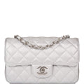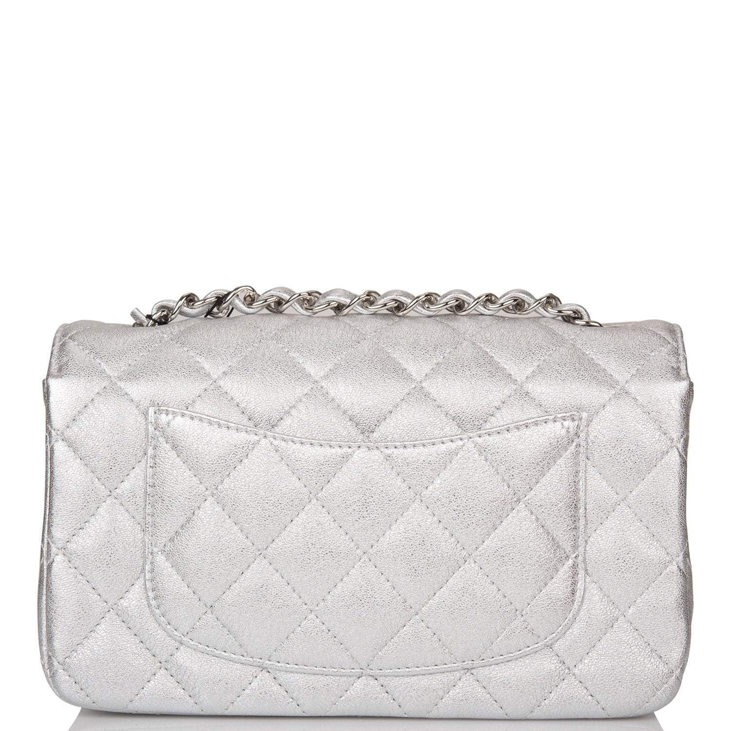 Chanel Silver Metallic Quilted Lambskin Rectangular Mini Classic Flap Bag Silver Hardware