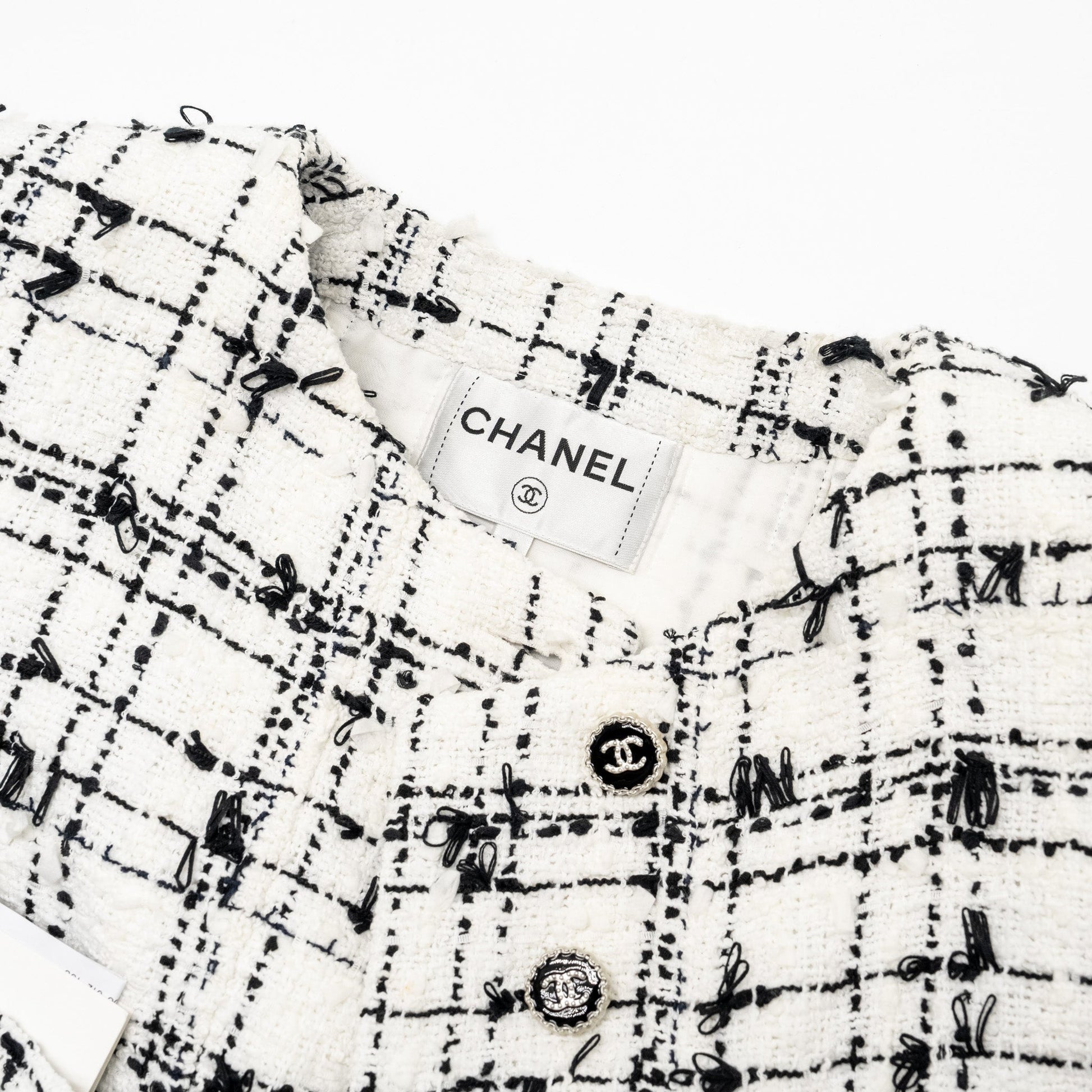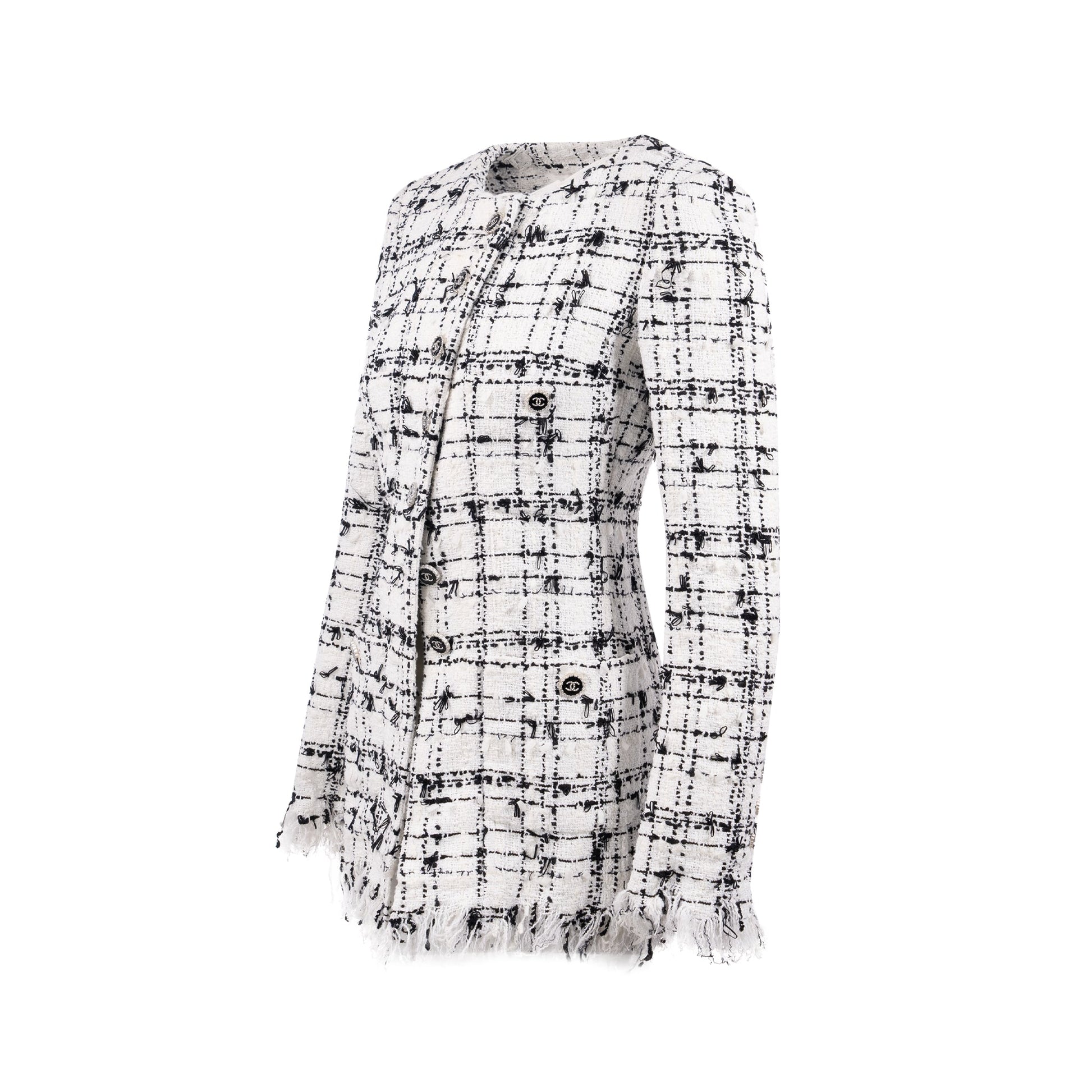 Chanel Size 34 Tassel Tweed Jacket Cotton White/Black