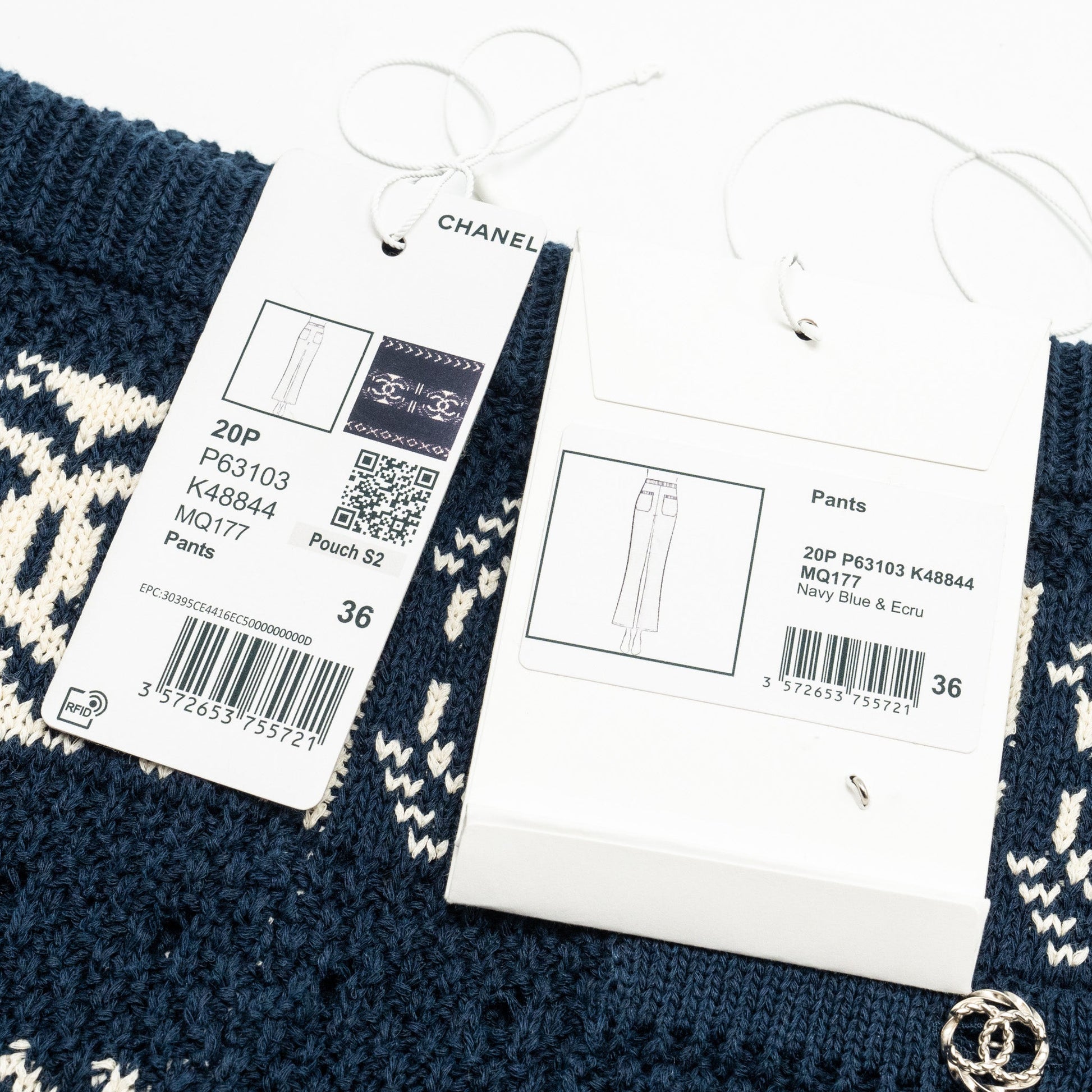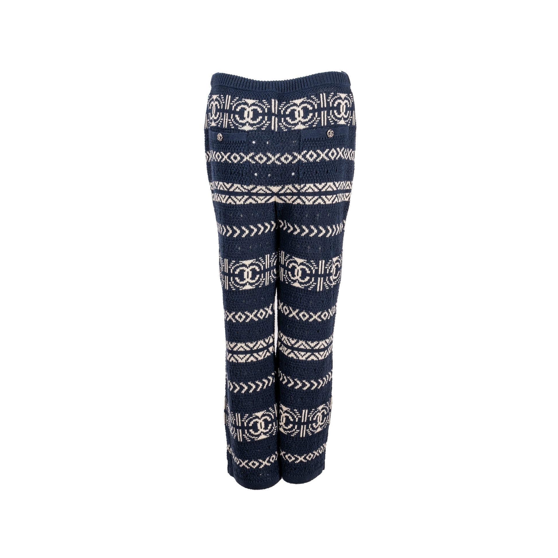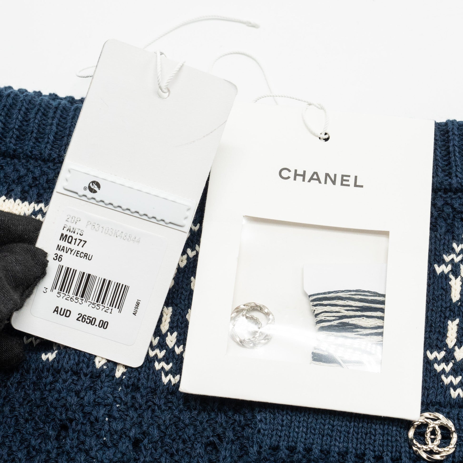 Chanel Size 36 20P CC Logo Pants Paper/Cotton Navy/Ecru