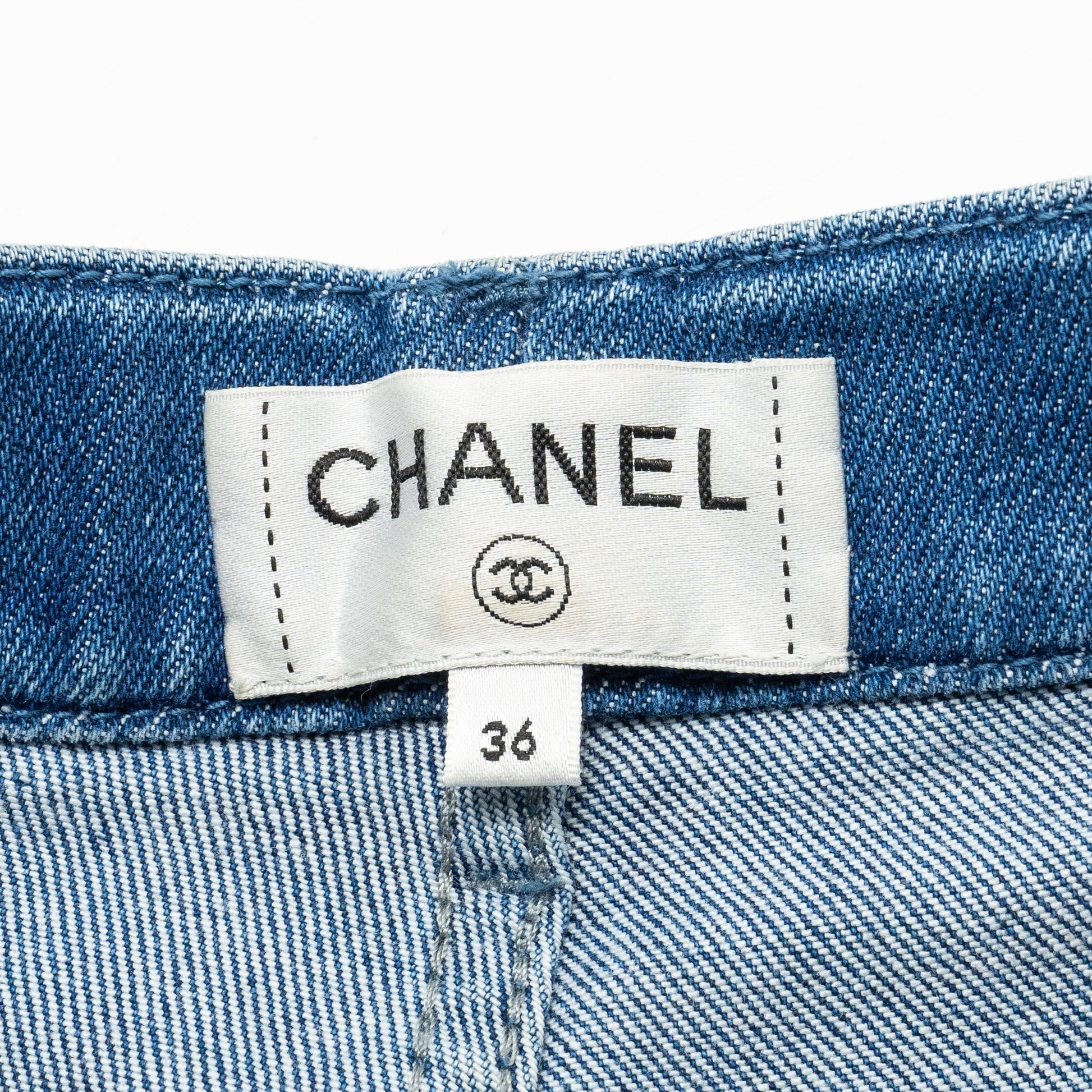 Chanel Size 36 21P Logo Embossed Jeans Cotton Blue