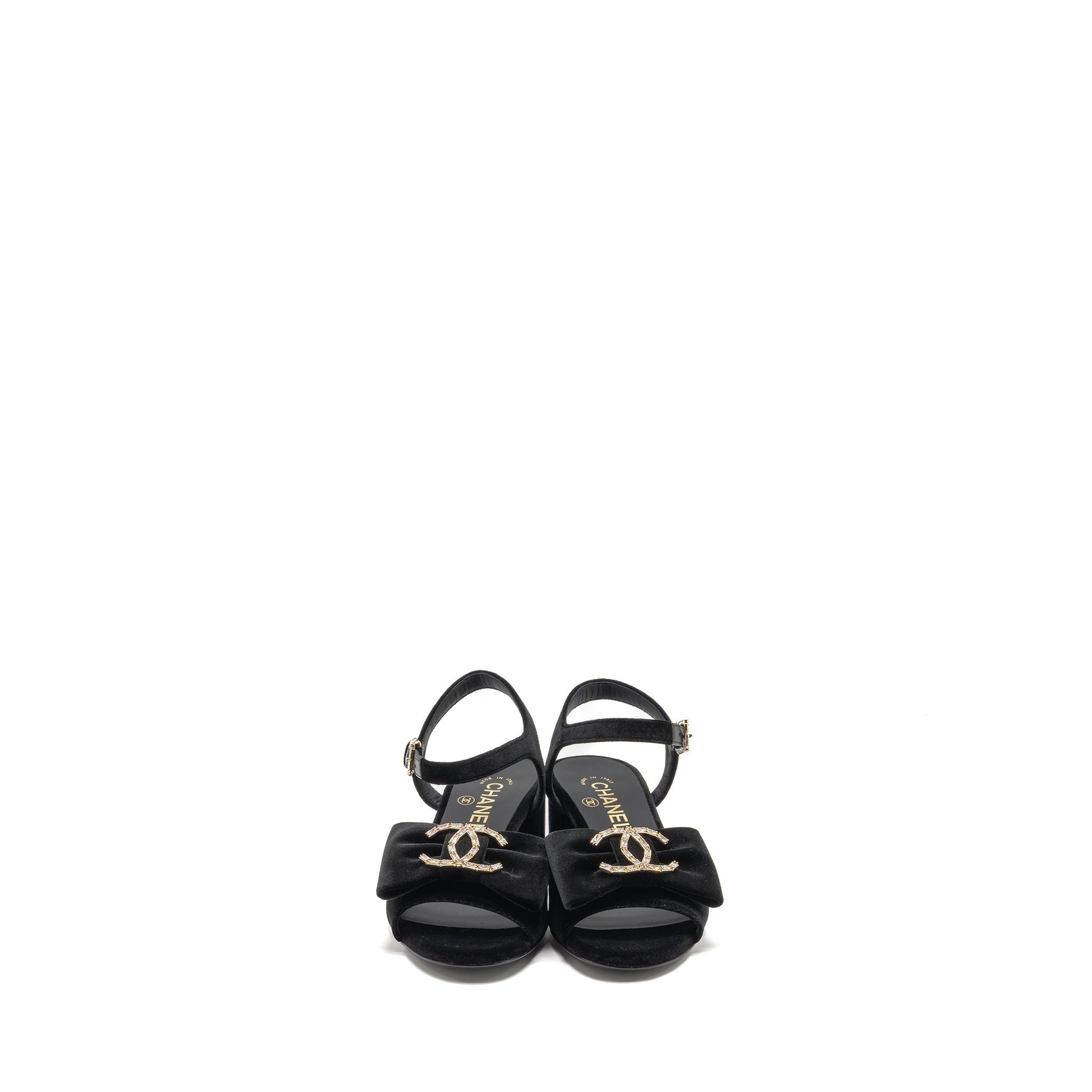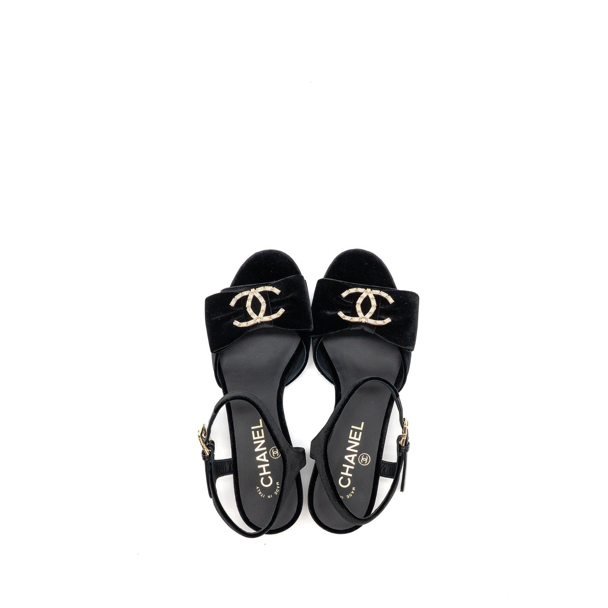 Chanel Size 36 24K Crystal CC Logo Sandals Velvet Black LGHW