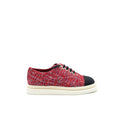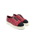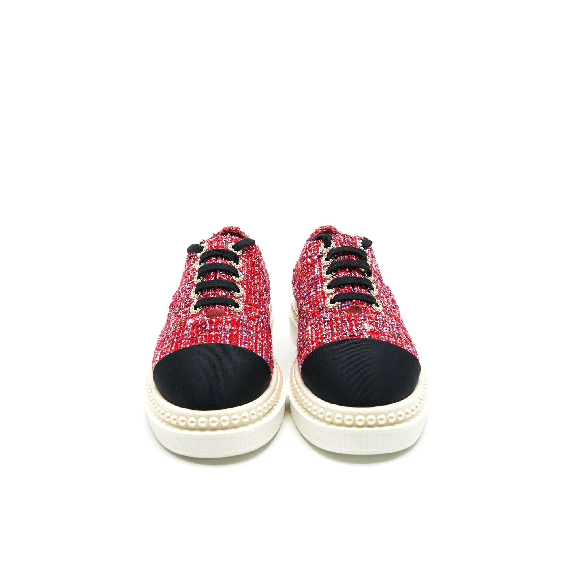 CHANEL Size 36.5 Tweed Lace-Up Pearls Flats Shoes