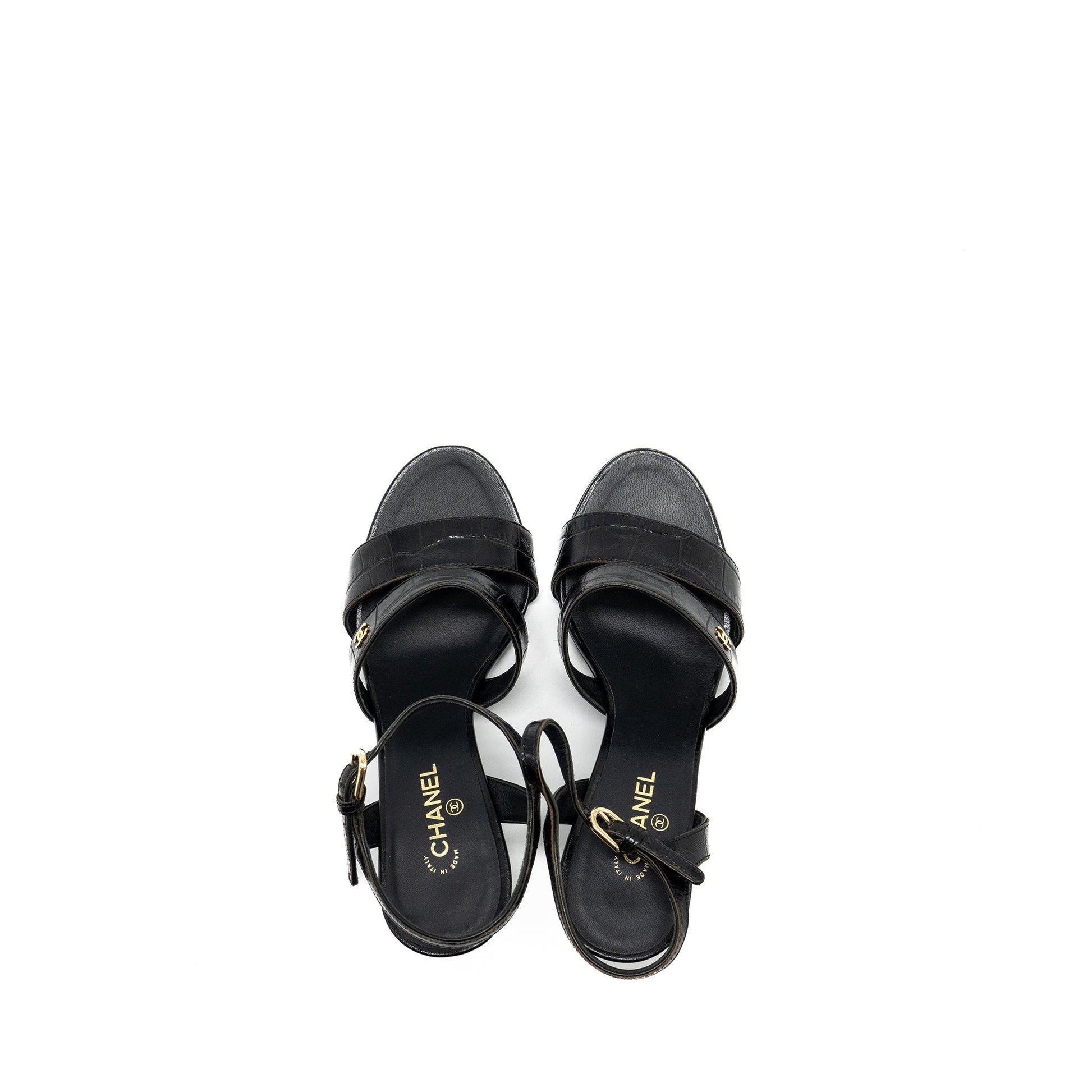 Chanel Size 36 CC Sandals Matte Crocodile-Embossed Calfskin Black GHW