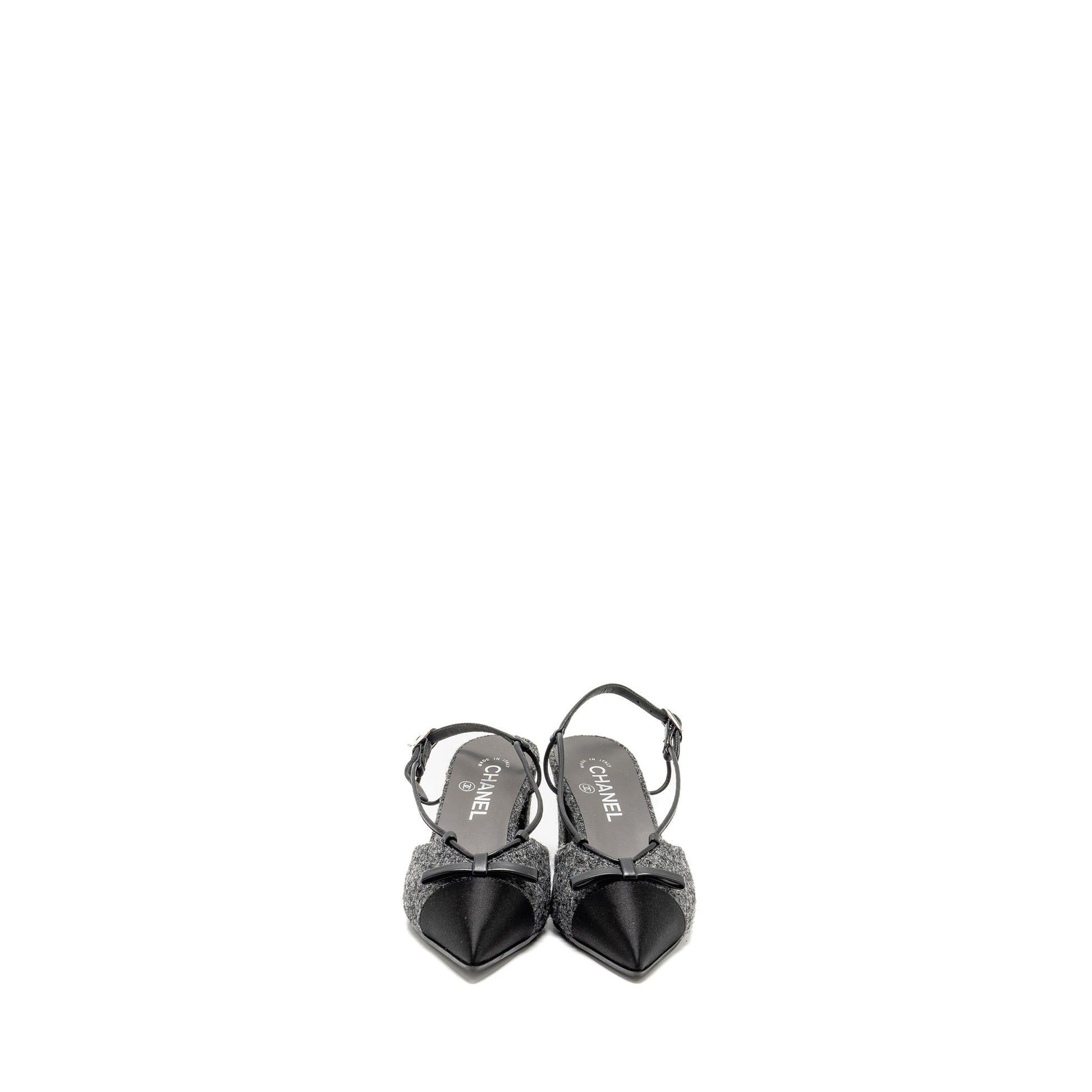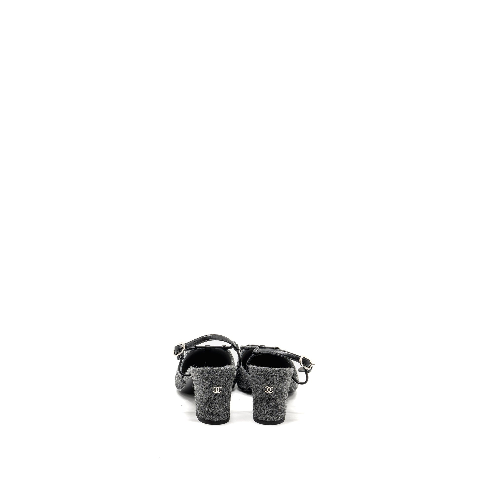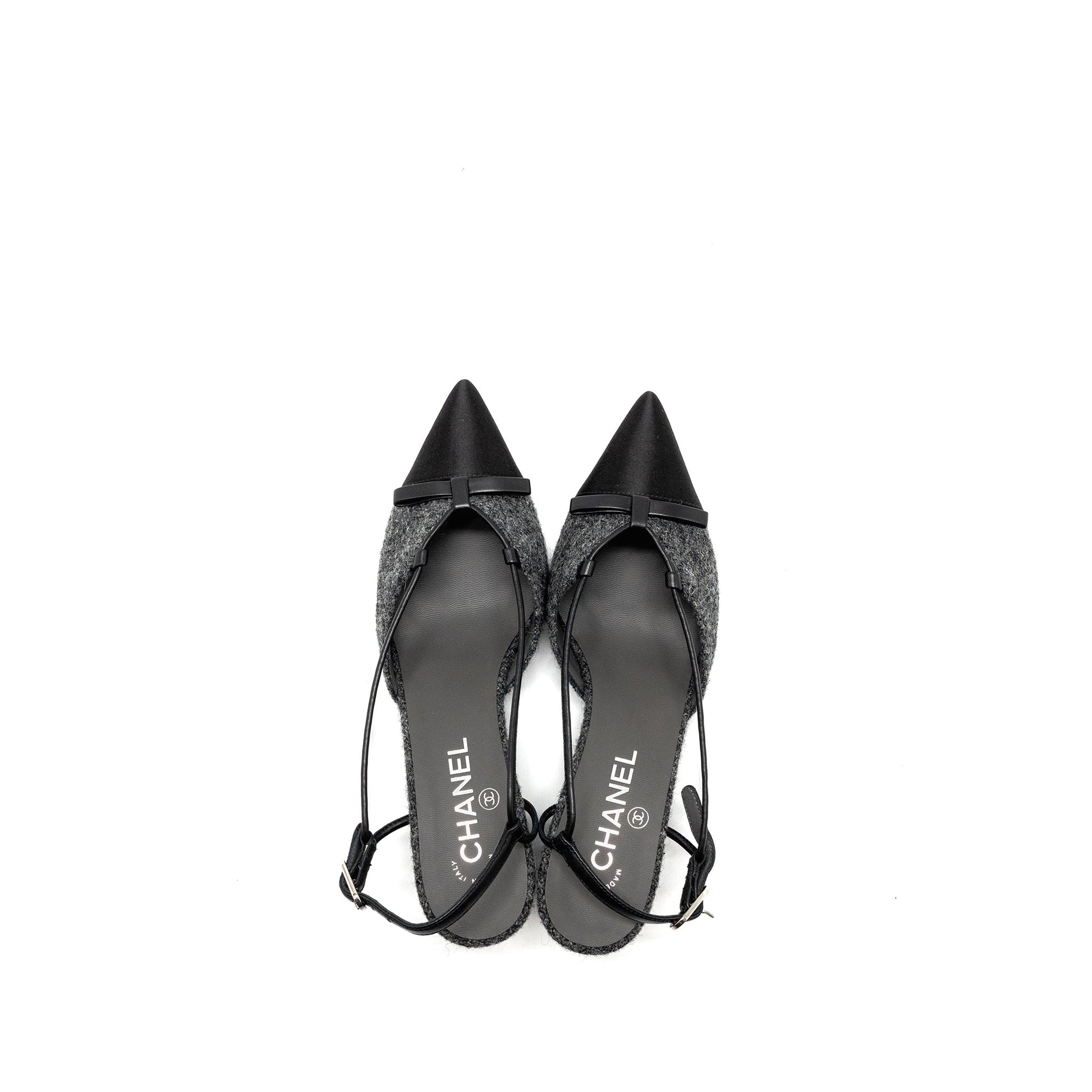 Chanel Size 37.5 Cap Toe CC Slingback Pumps Tweed Grey/Black