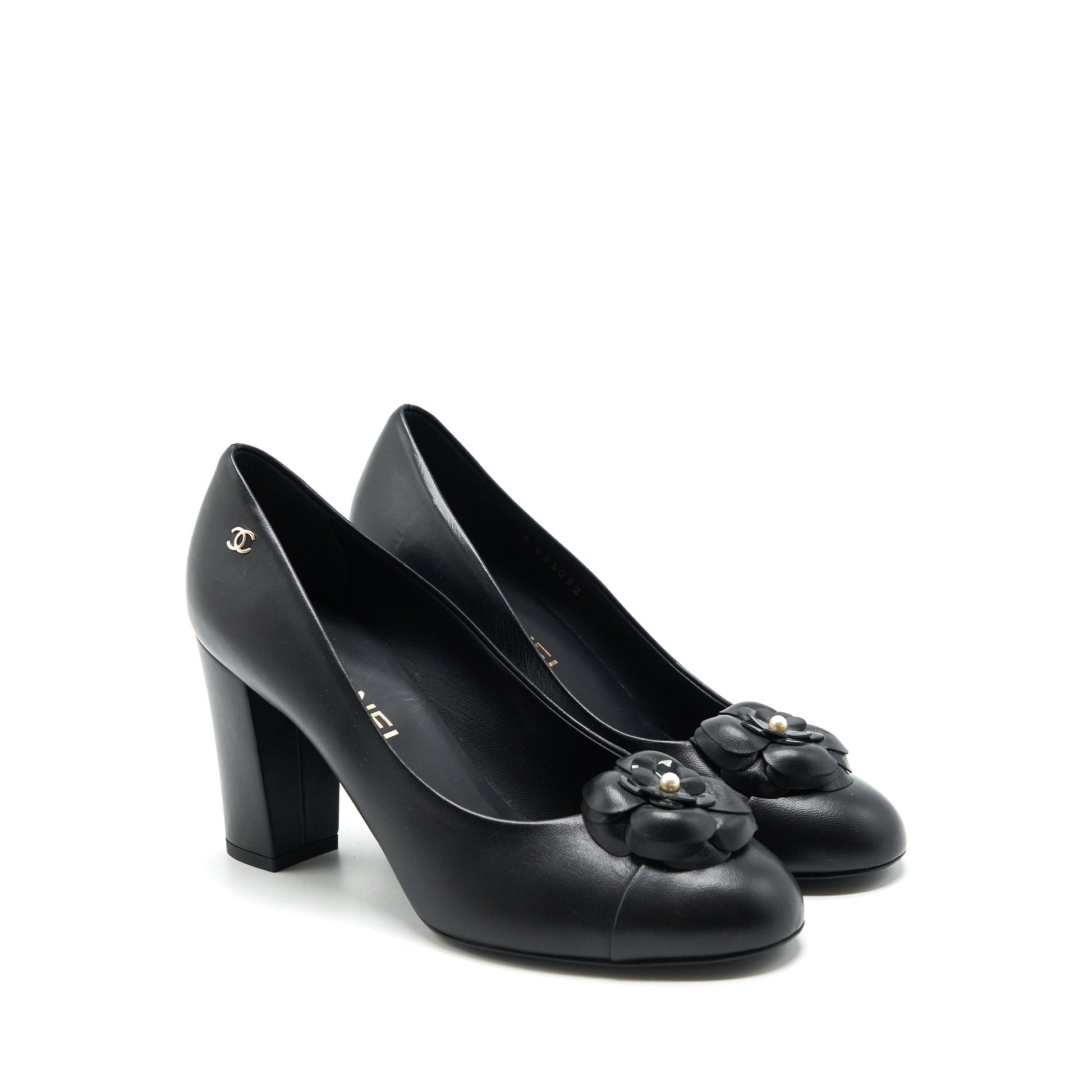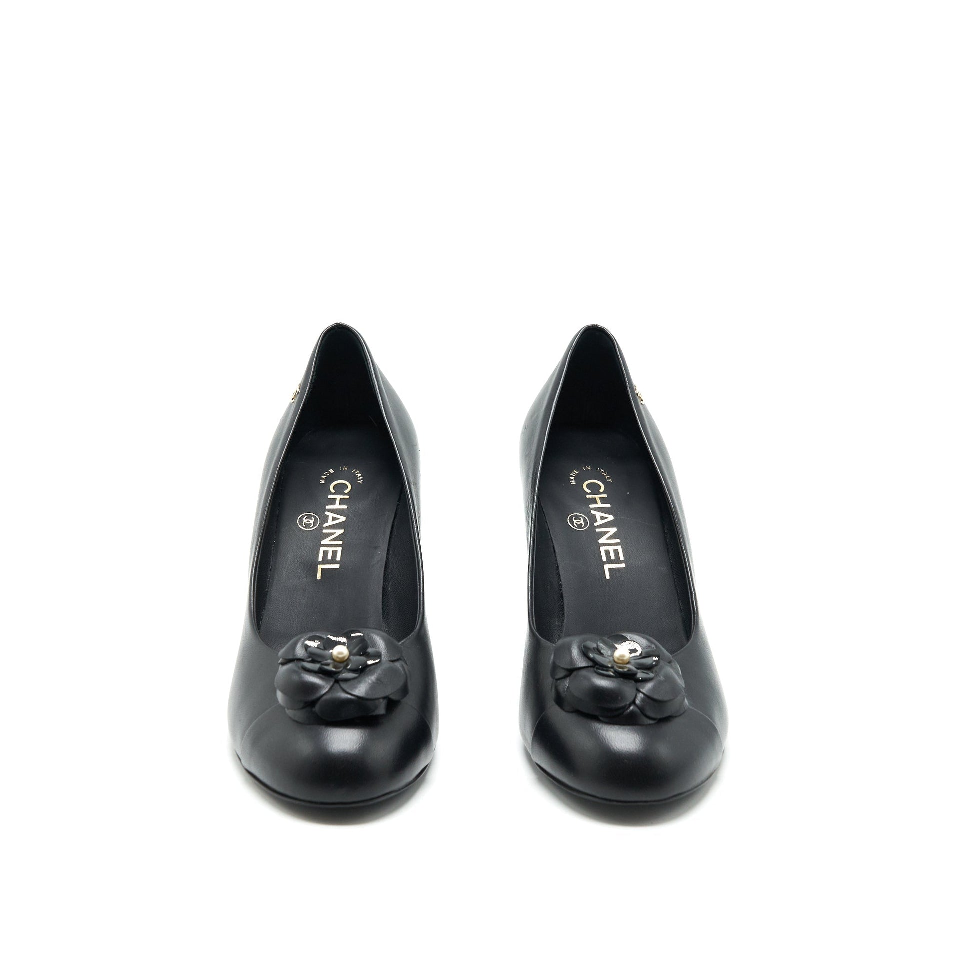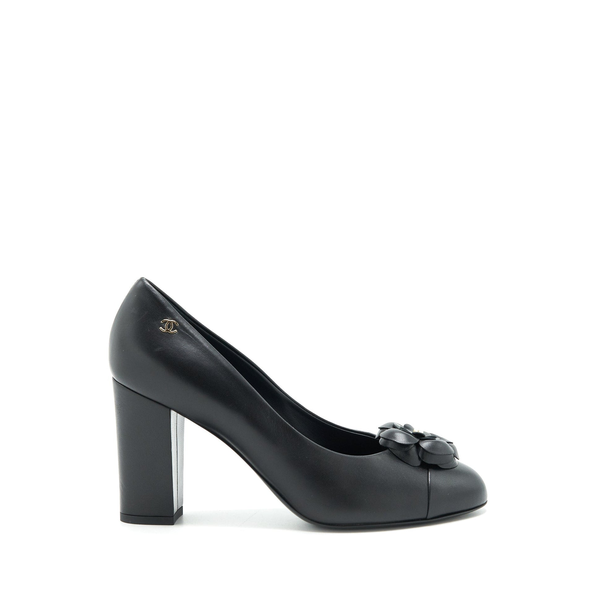 Chanel size 38.5C Camellia Heels Black