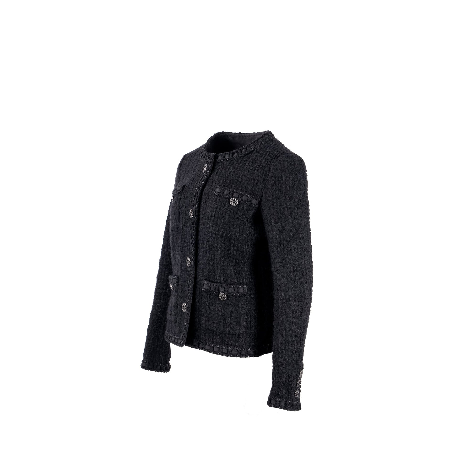 Chanel Size 38 La Petite Veste Noire Wool Jacket Black