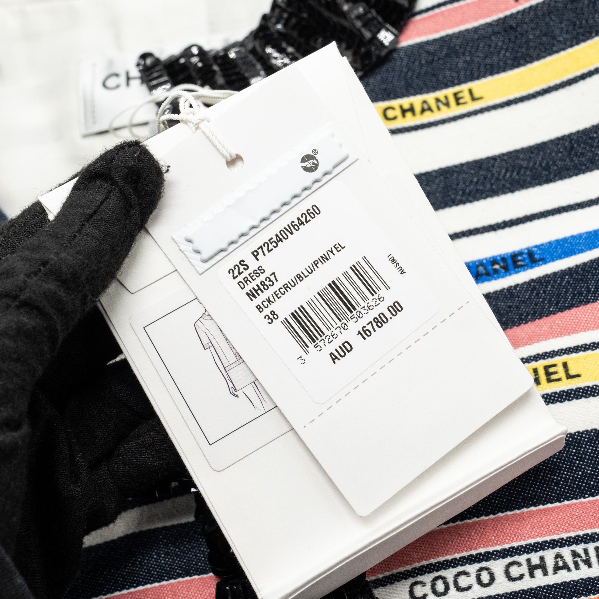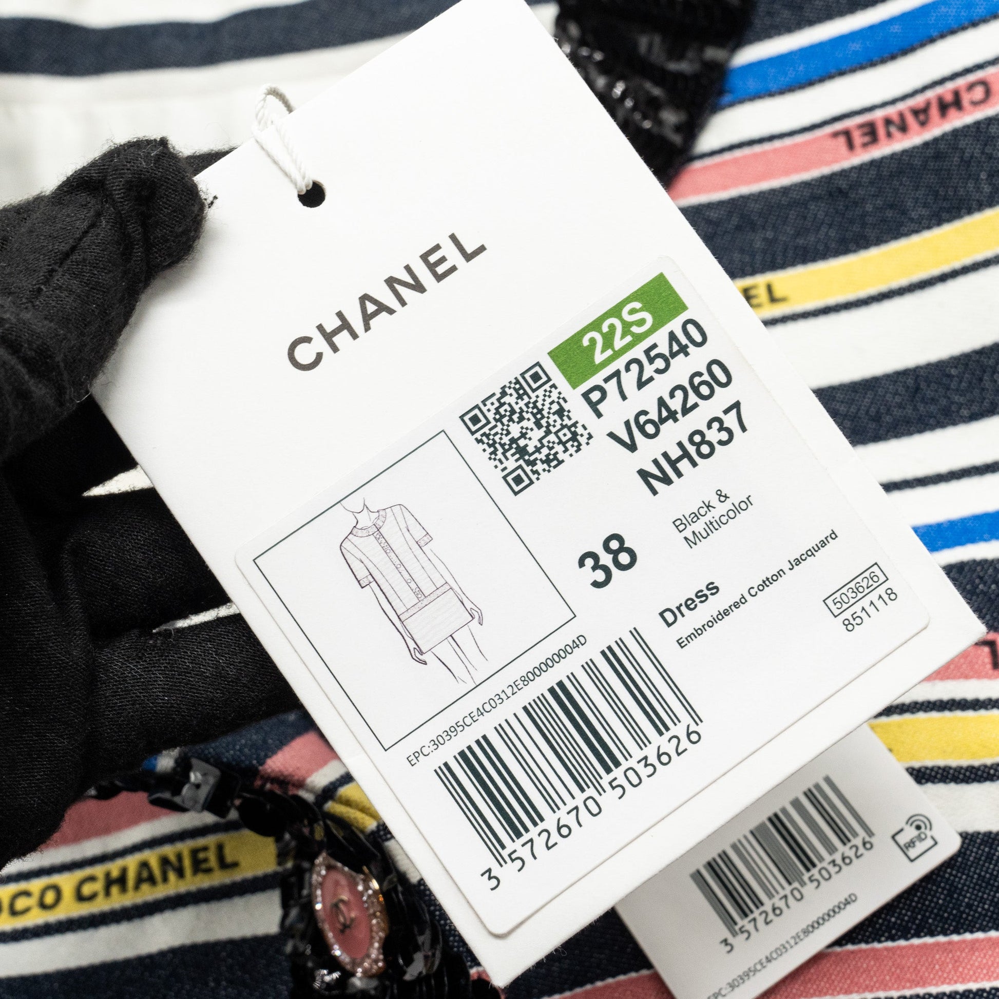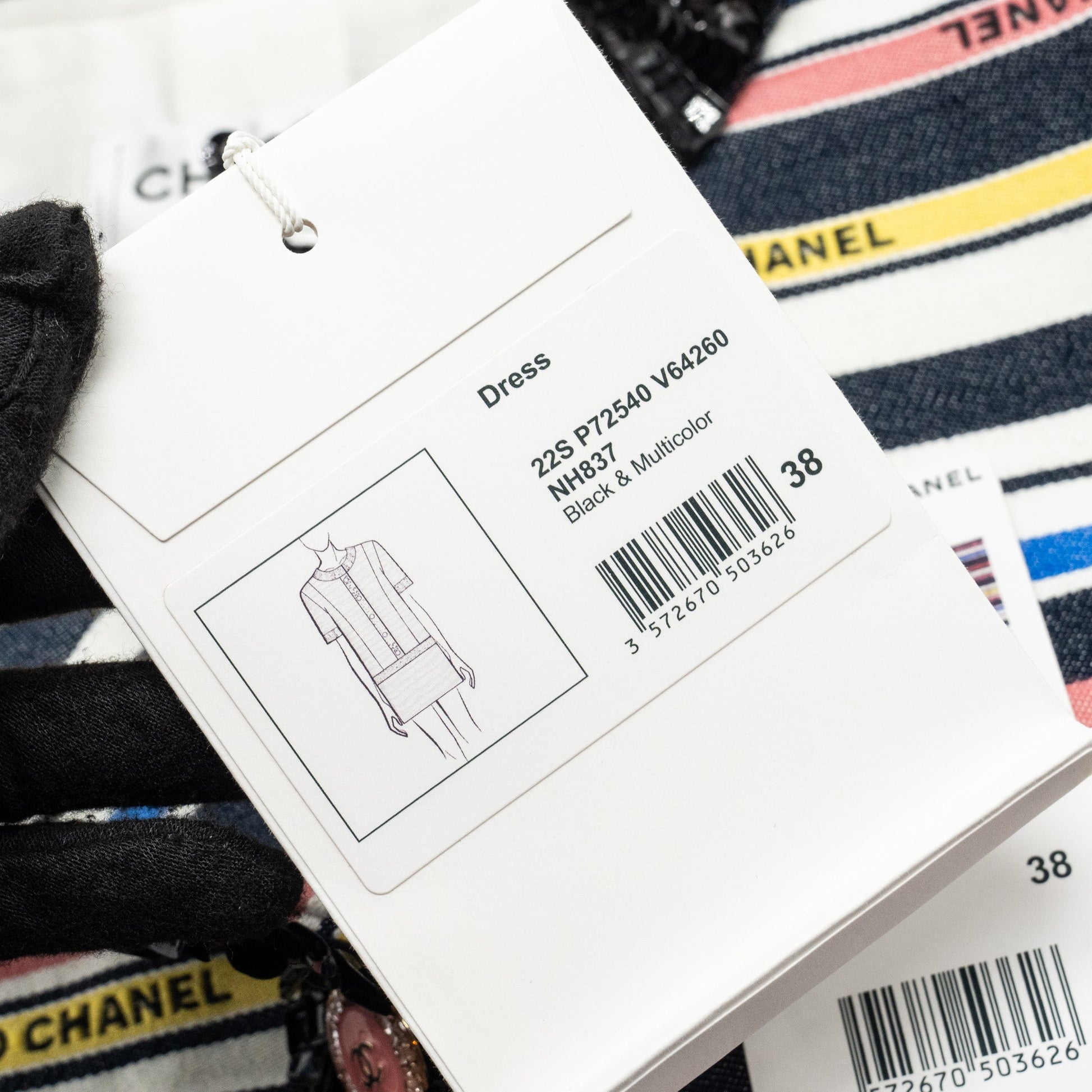 Chanel Size 38 Sequin Rainbow Dress Cotton Black/Multicolour