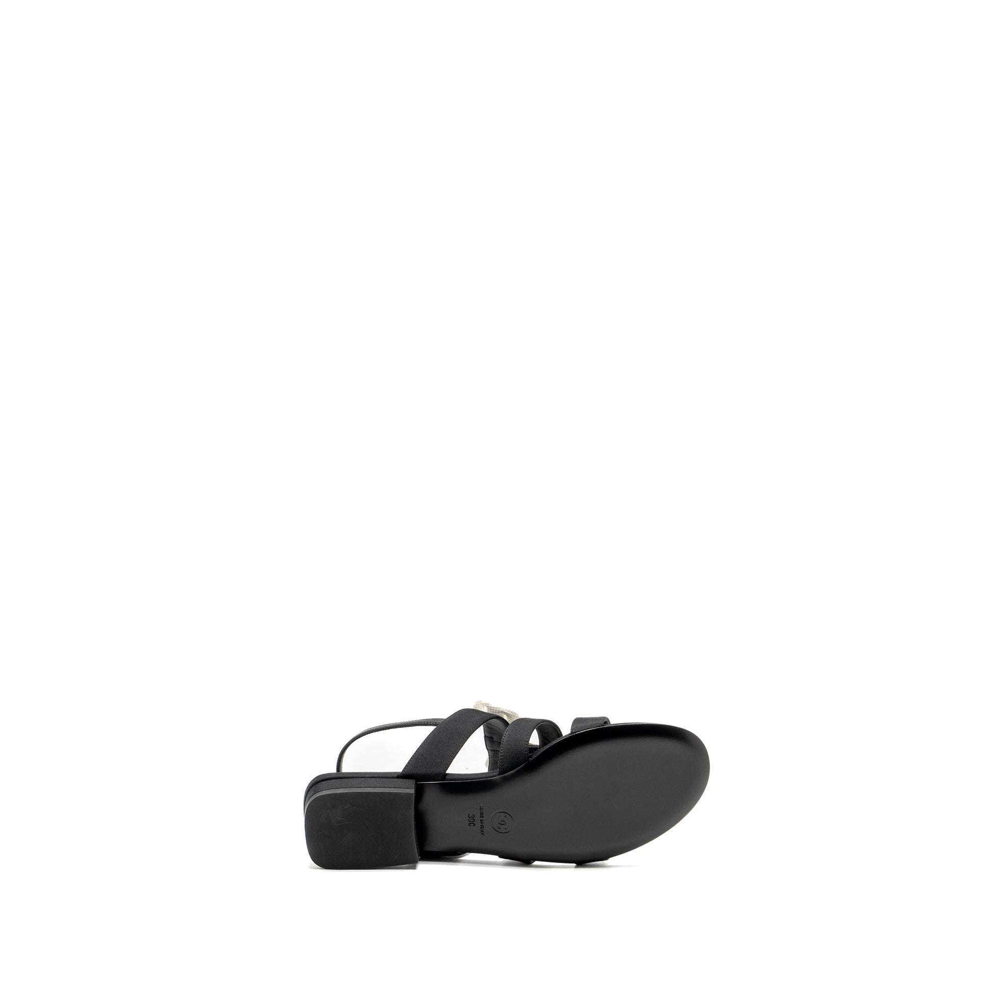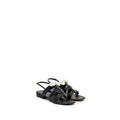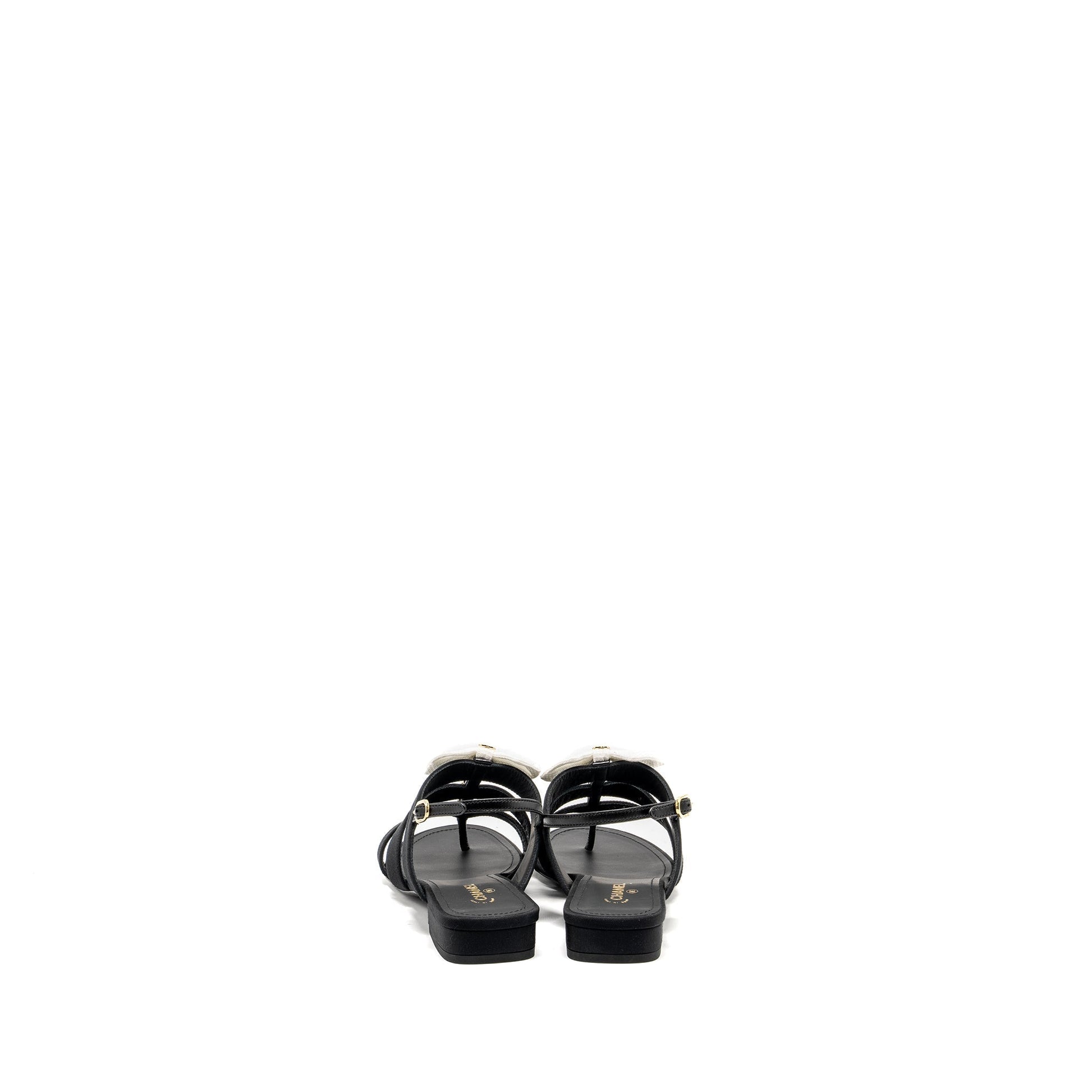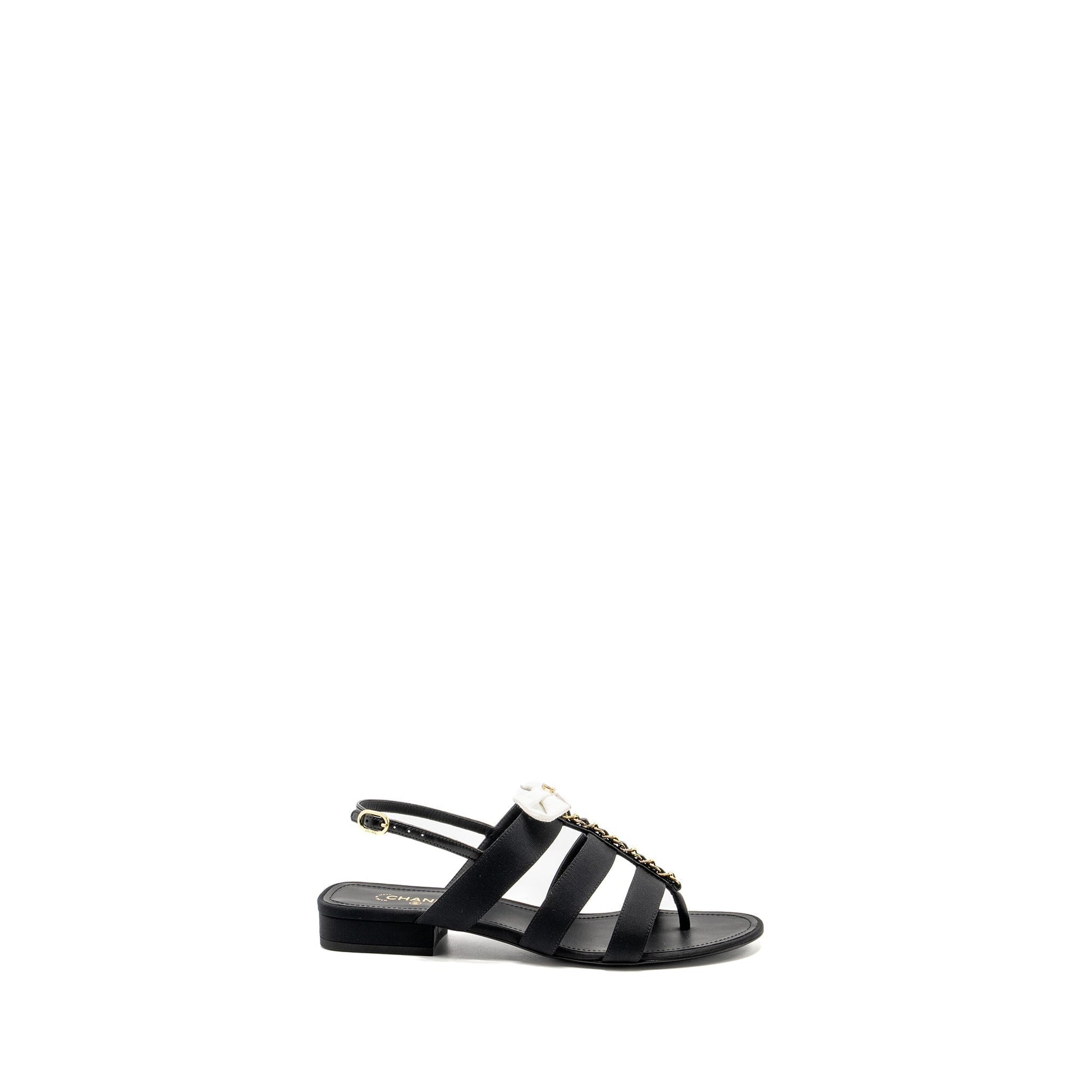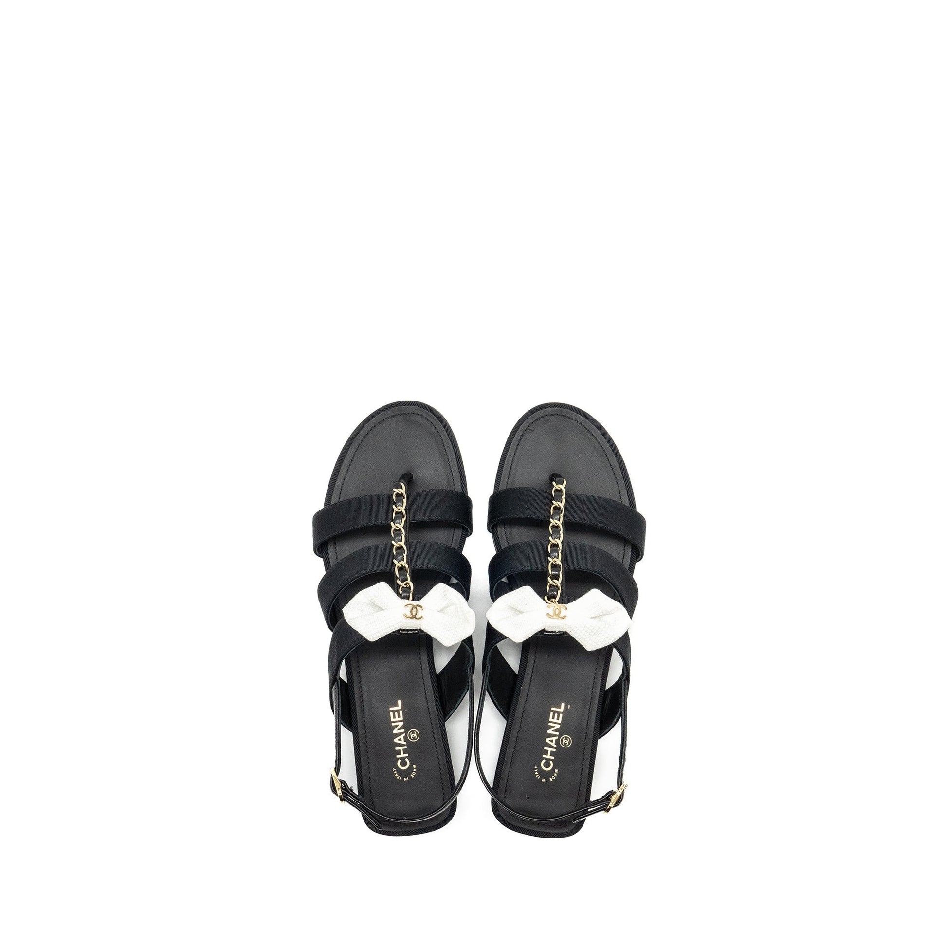 Chanel Size 39 21K Grosgrain Chain CC Logo With White Bow Sandals Black LGHW