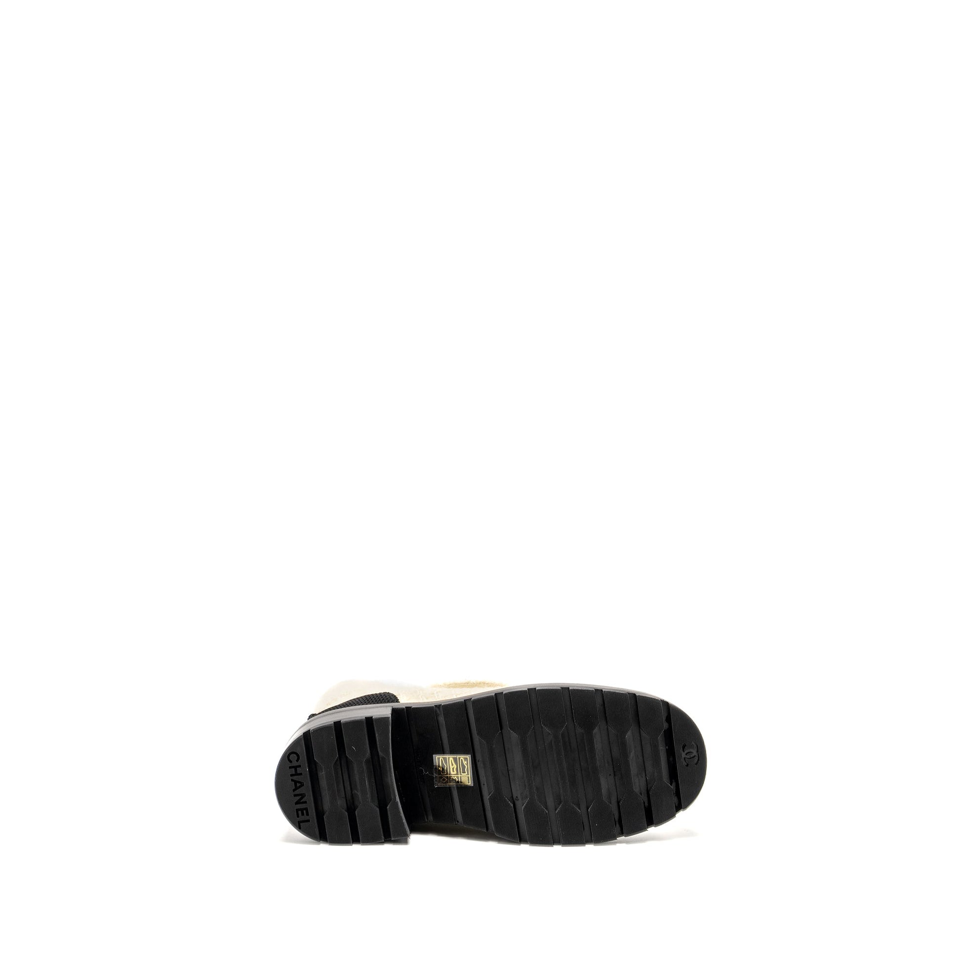 Chanel Size 39 22K Lace Up Boots Wool Tweed/Fabric Ivory/Black