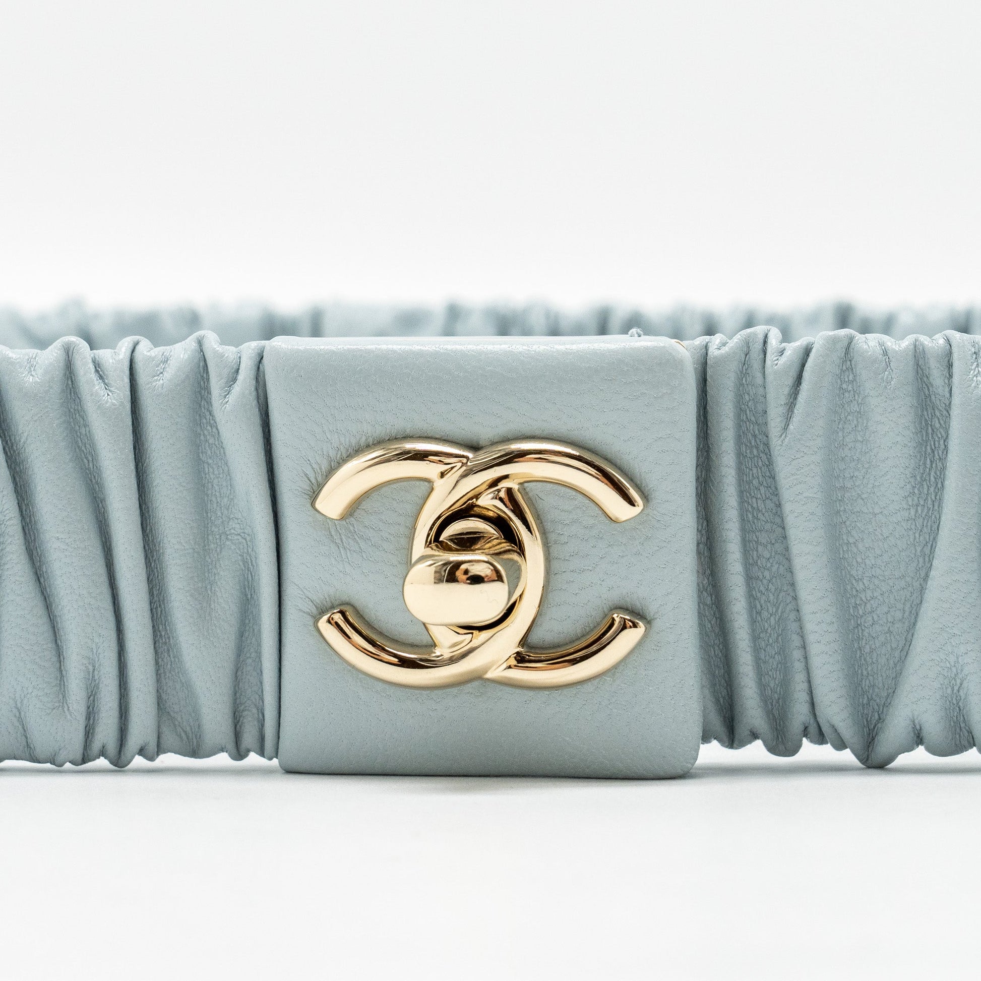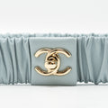 Chanel Size 75 CC Logo Belt Calfskin Light Blue Light Gold Tone