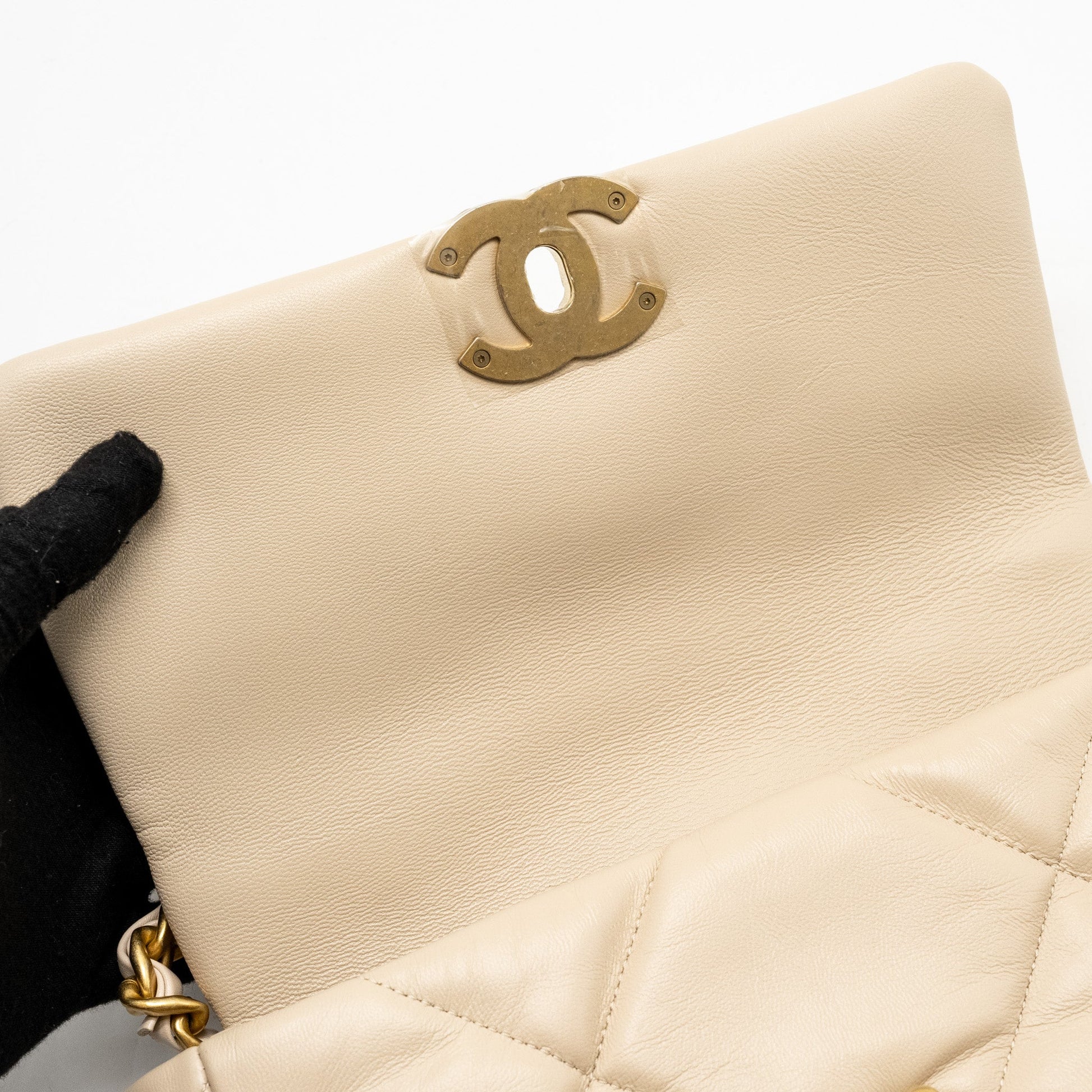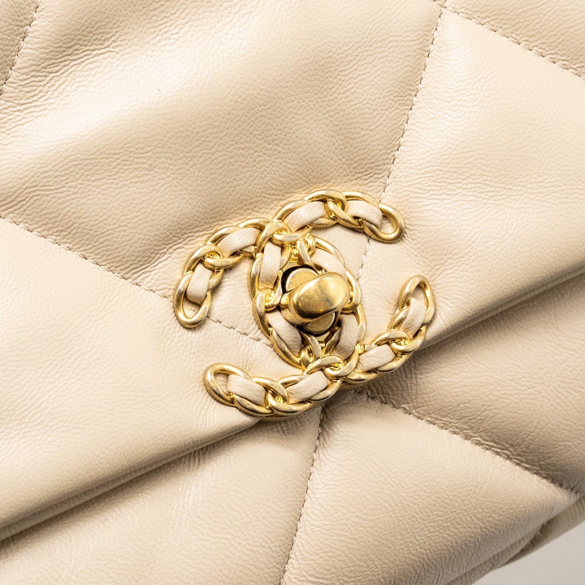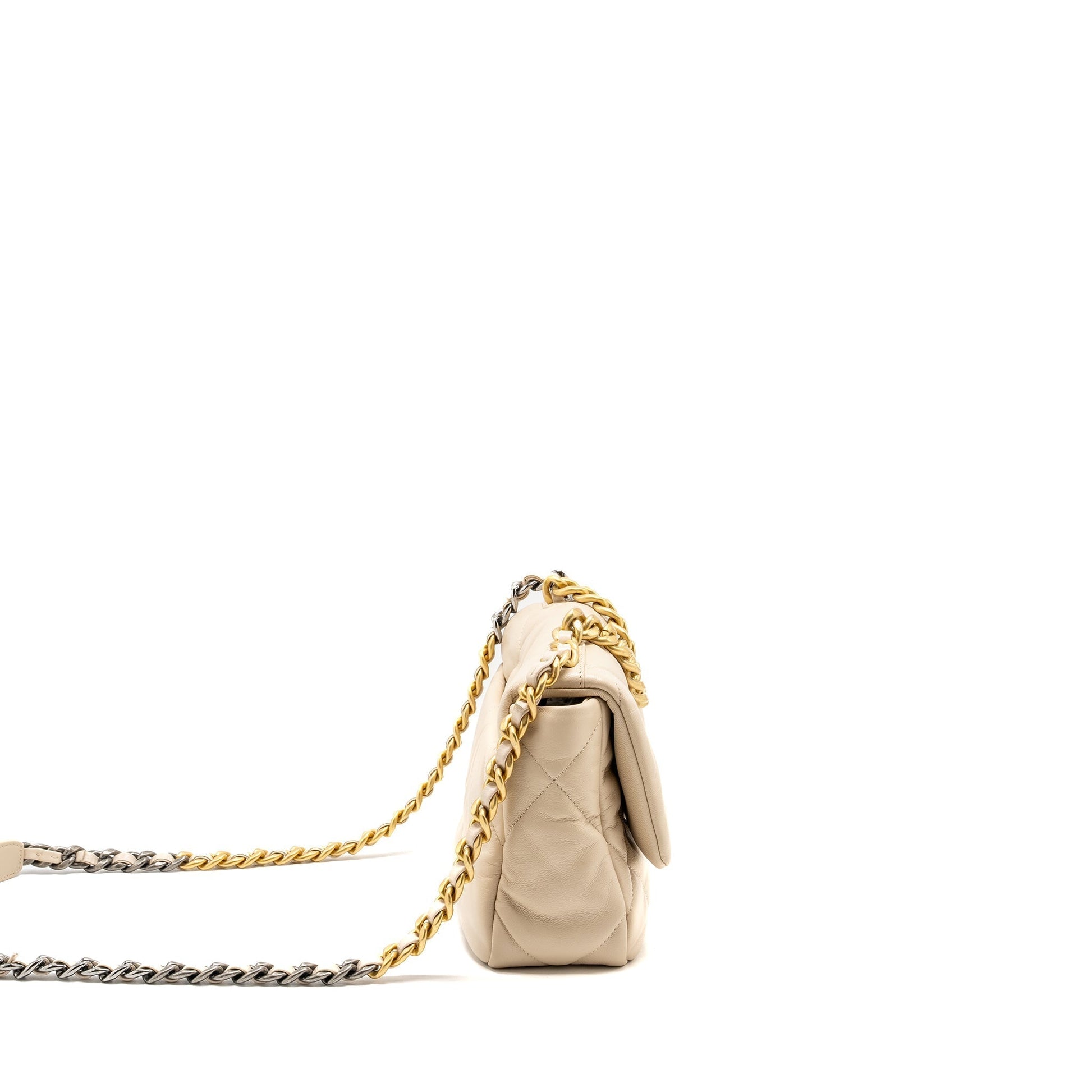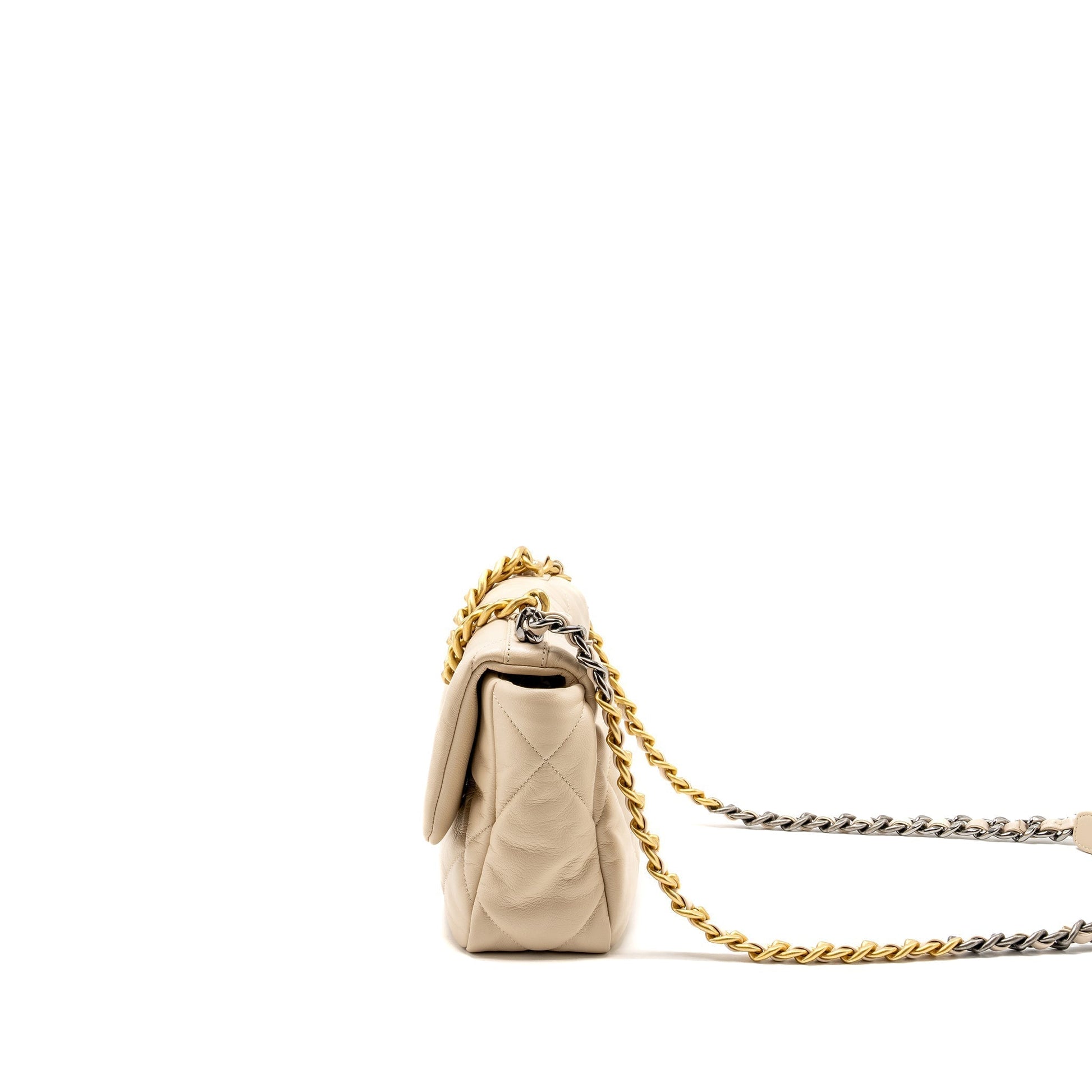 Chanel Small 19 Bag Shiny Goatskin Light Beige Multicolour Hardware