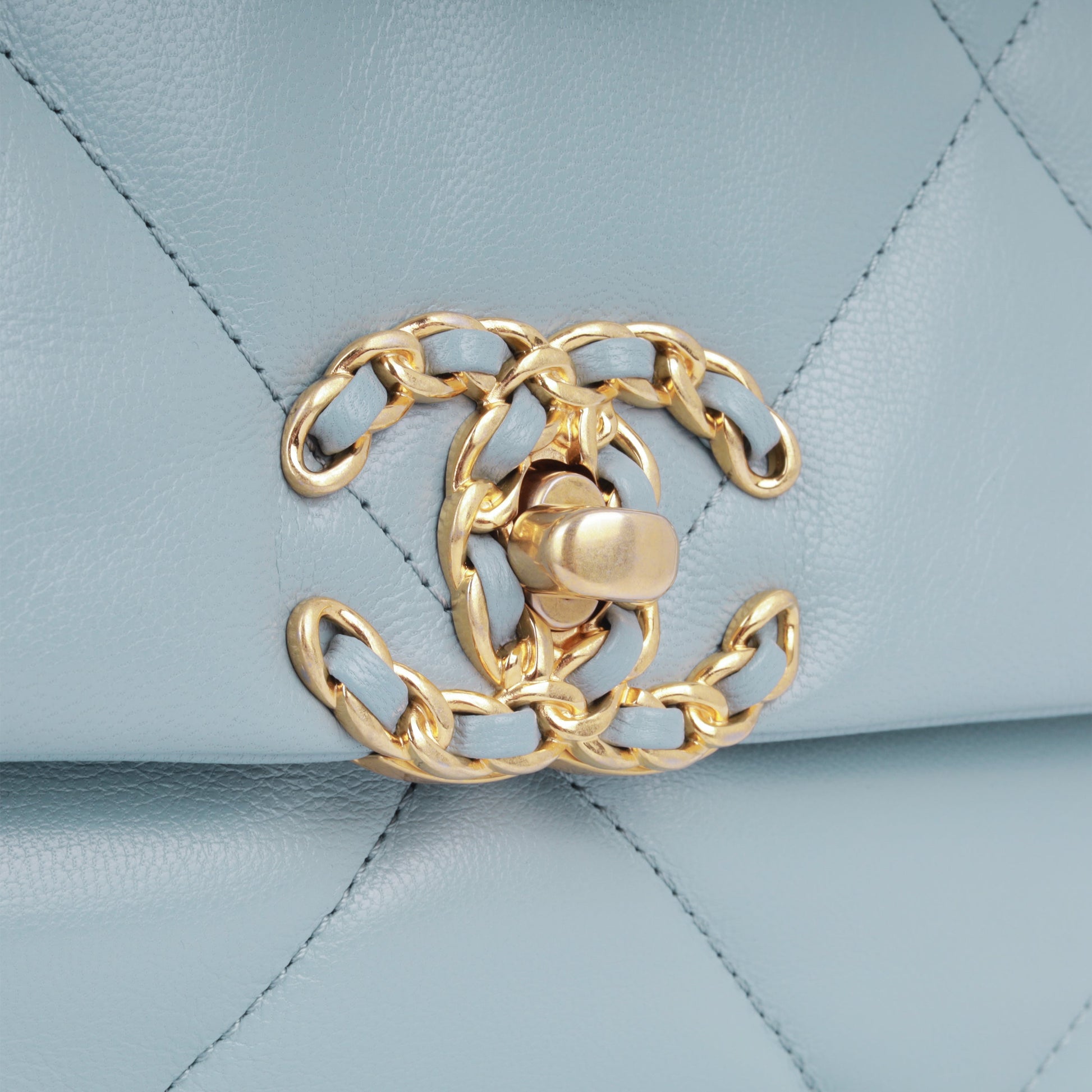 For timeless Parisian-chic there is no better investment than a Chanel flap bag. This particular Chanel 19 is crafted in their durable goatskin leather in a beautiful duck egg colour. The chain sits elegantly on your shoulder or doubled up on your arm. Under the creative direction of Karl Lagerfeld, Chanel continues with its line of classic quilted bags.