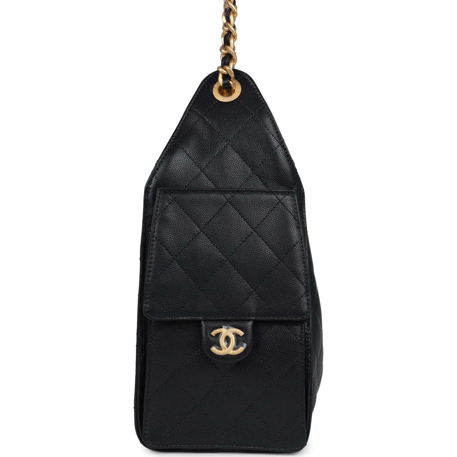 Chanel Small 25 Hobo Bag Black Caviar Antique Gold Hardware