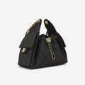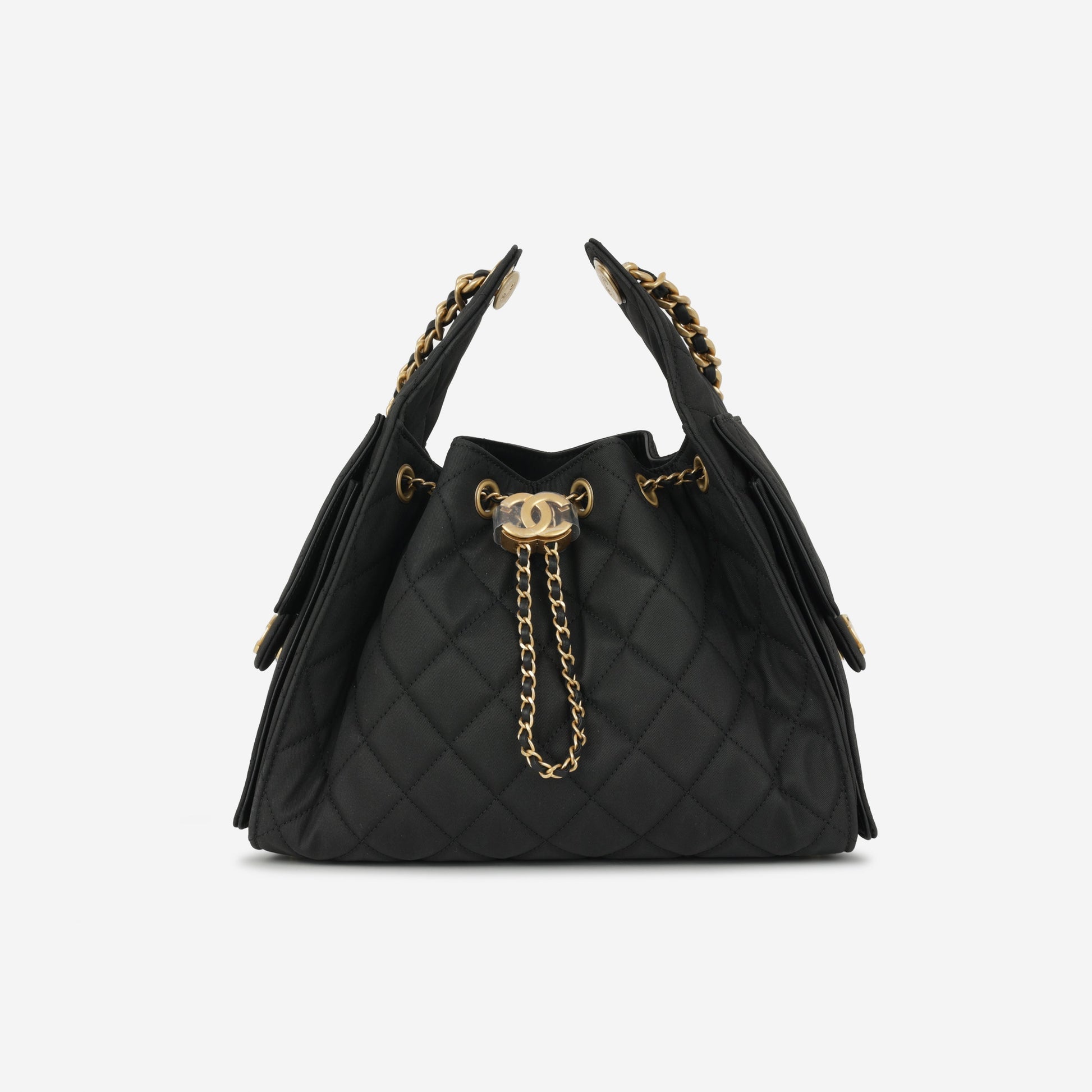 Chanel Small 25 Hobo Black Coated Canvas Antique Gold Hardware