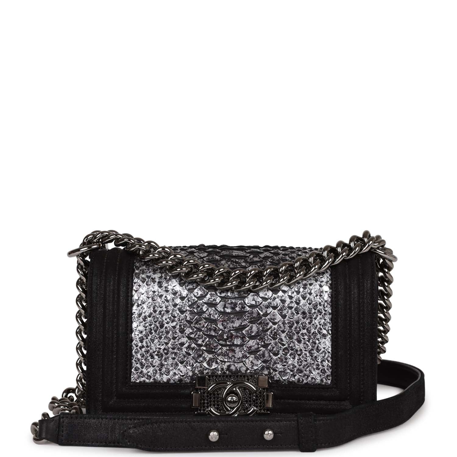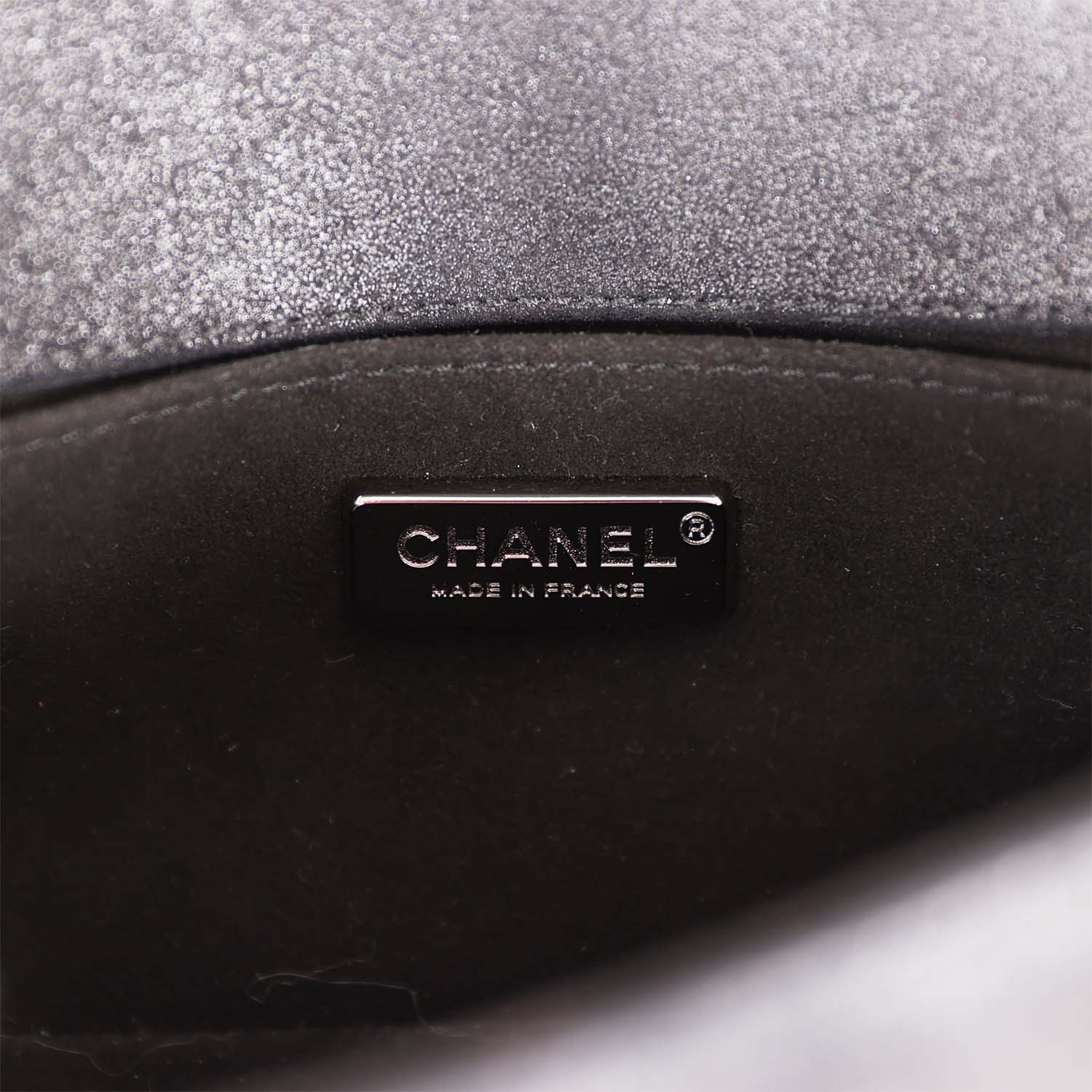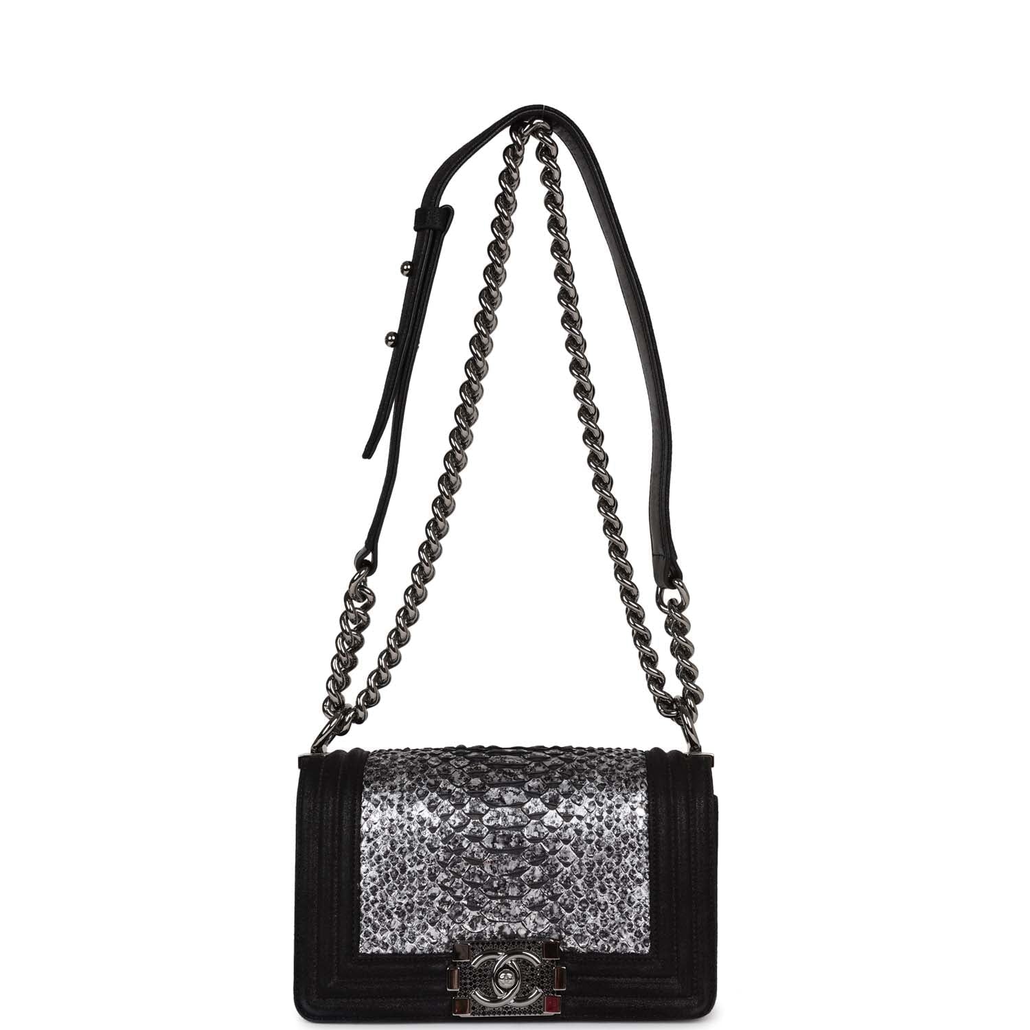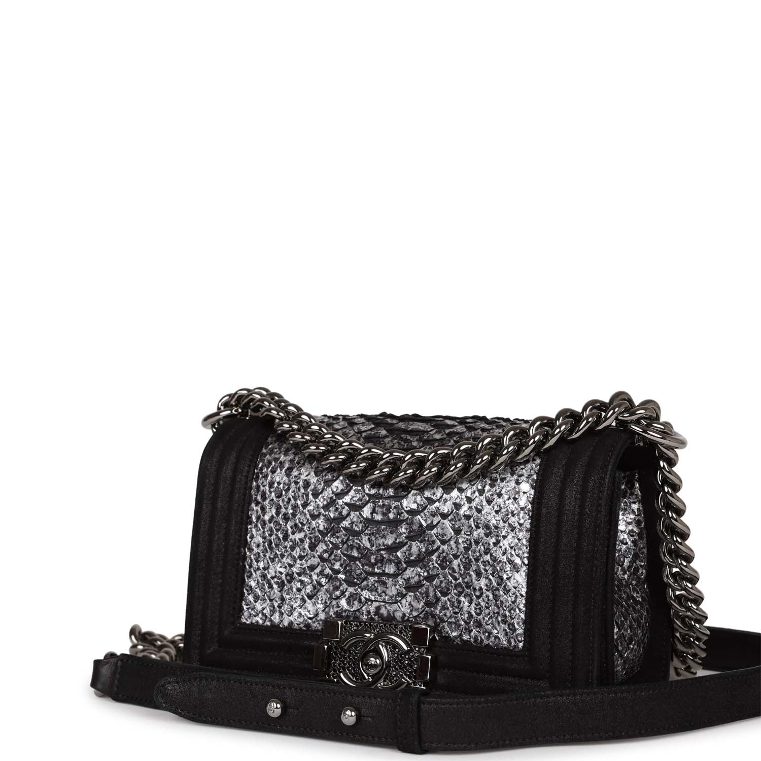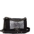 Chanel Small Boy Bag Black Suede and Silver Python Silver Hardware