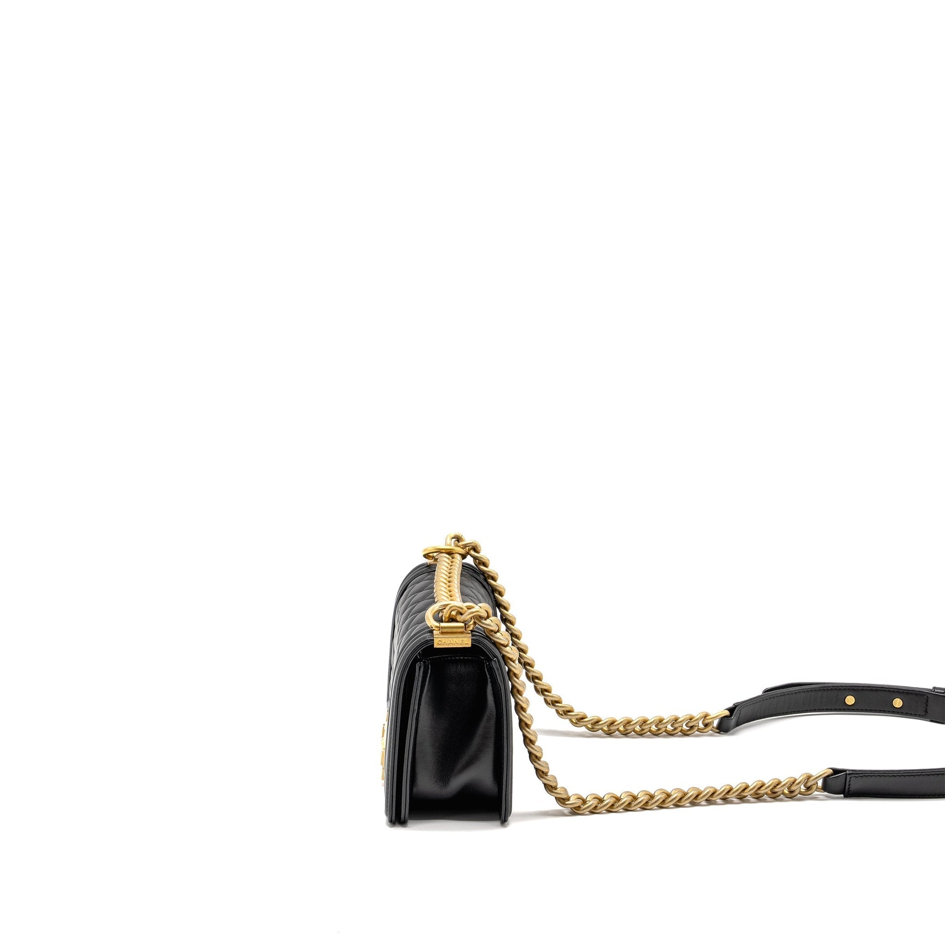 Chanel Small Boy Bag Calfskin Black GHW (Microchip)