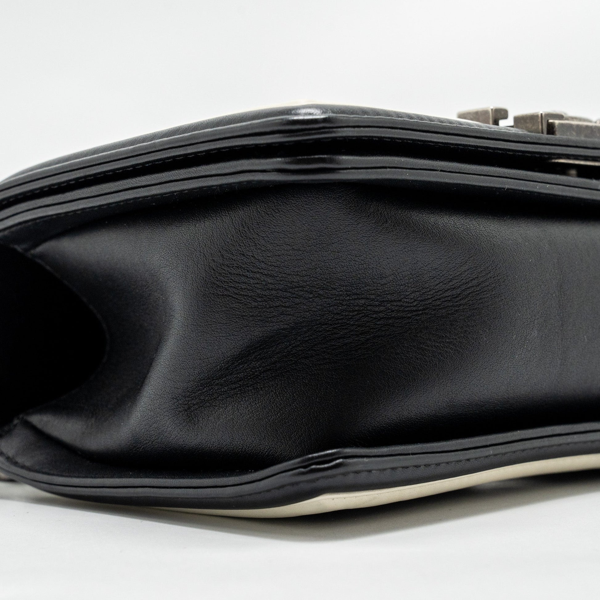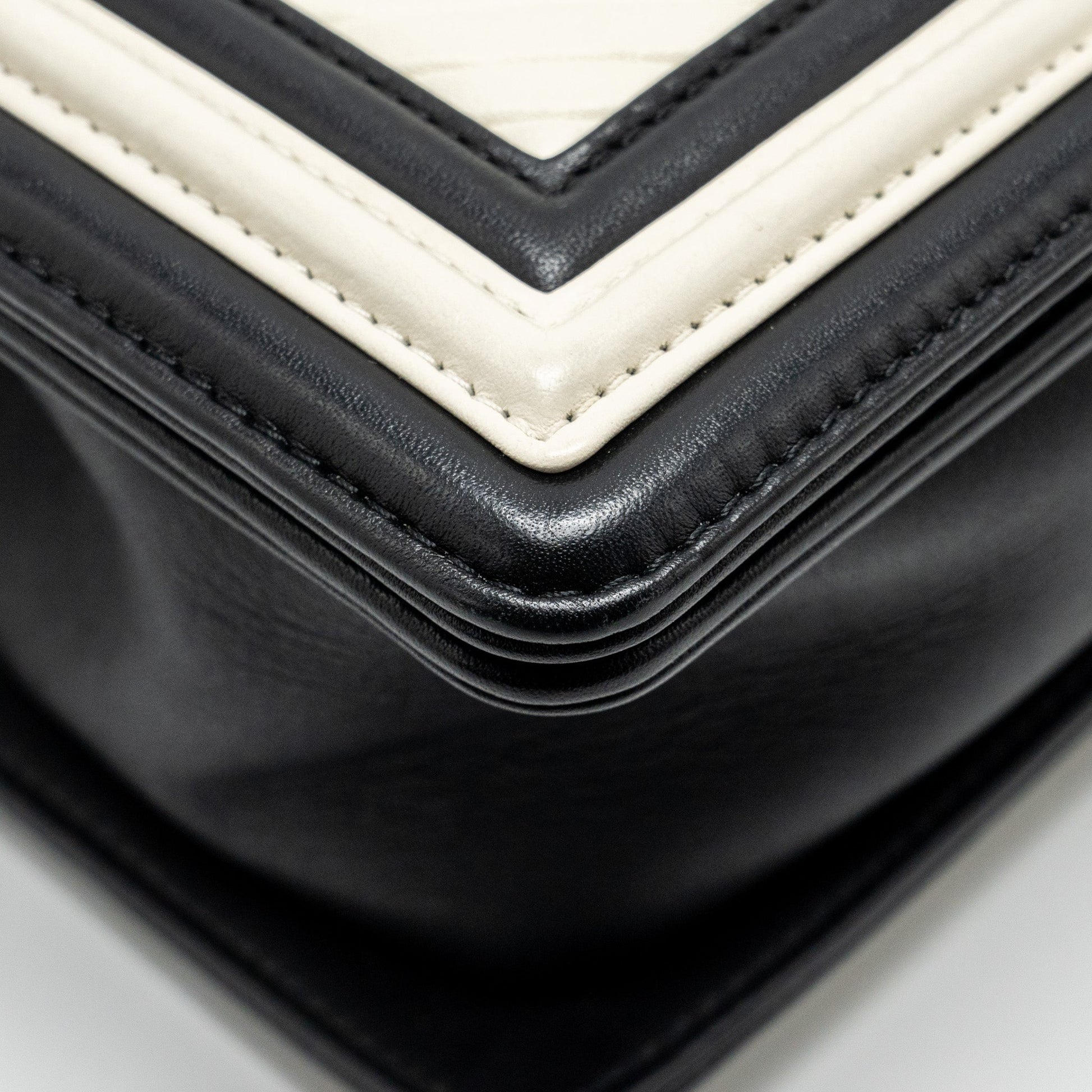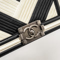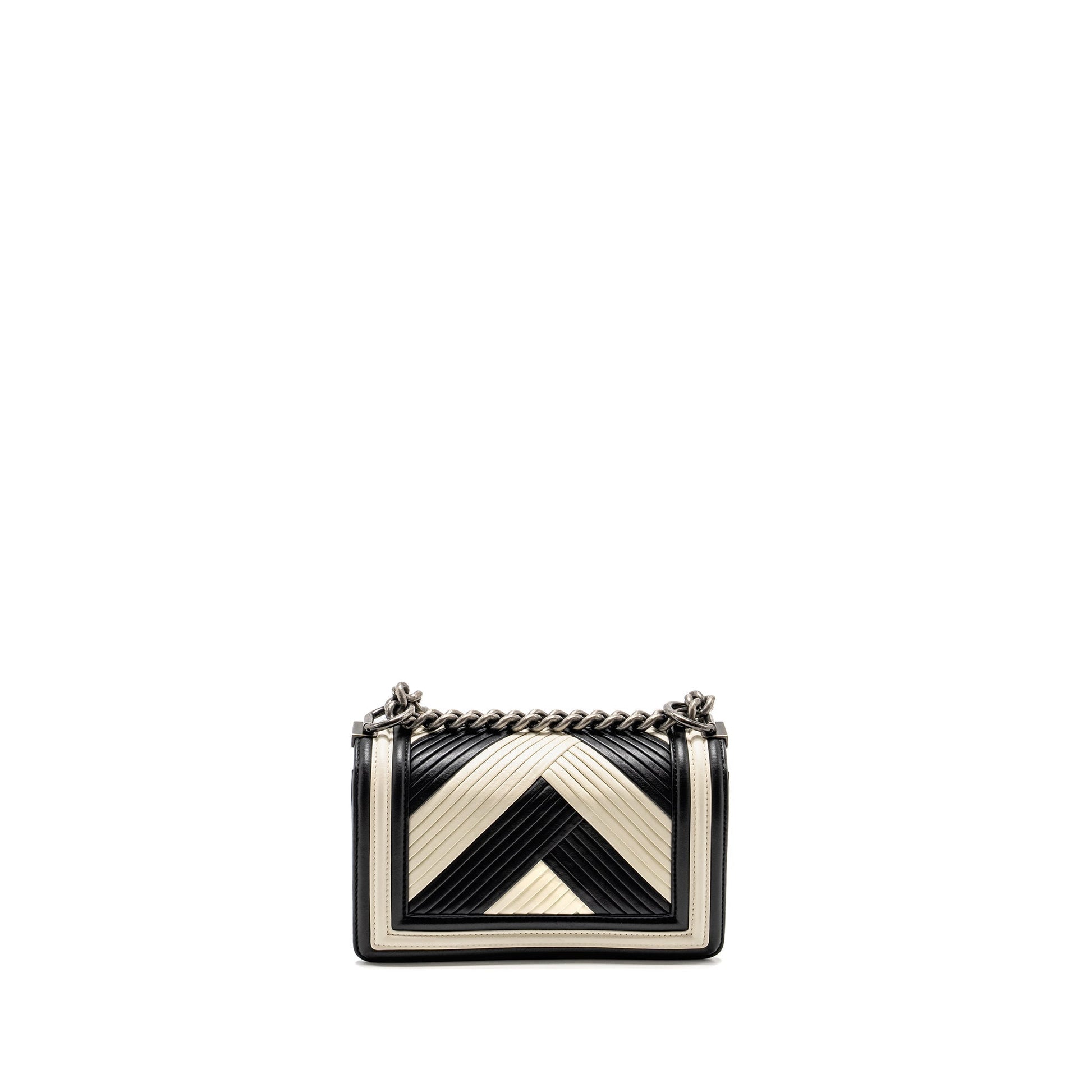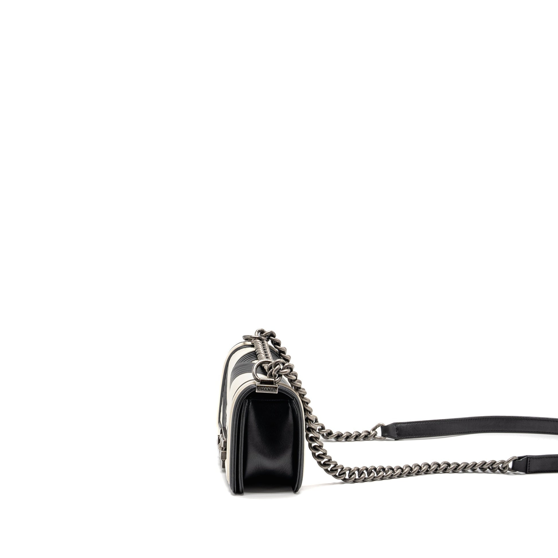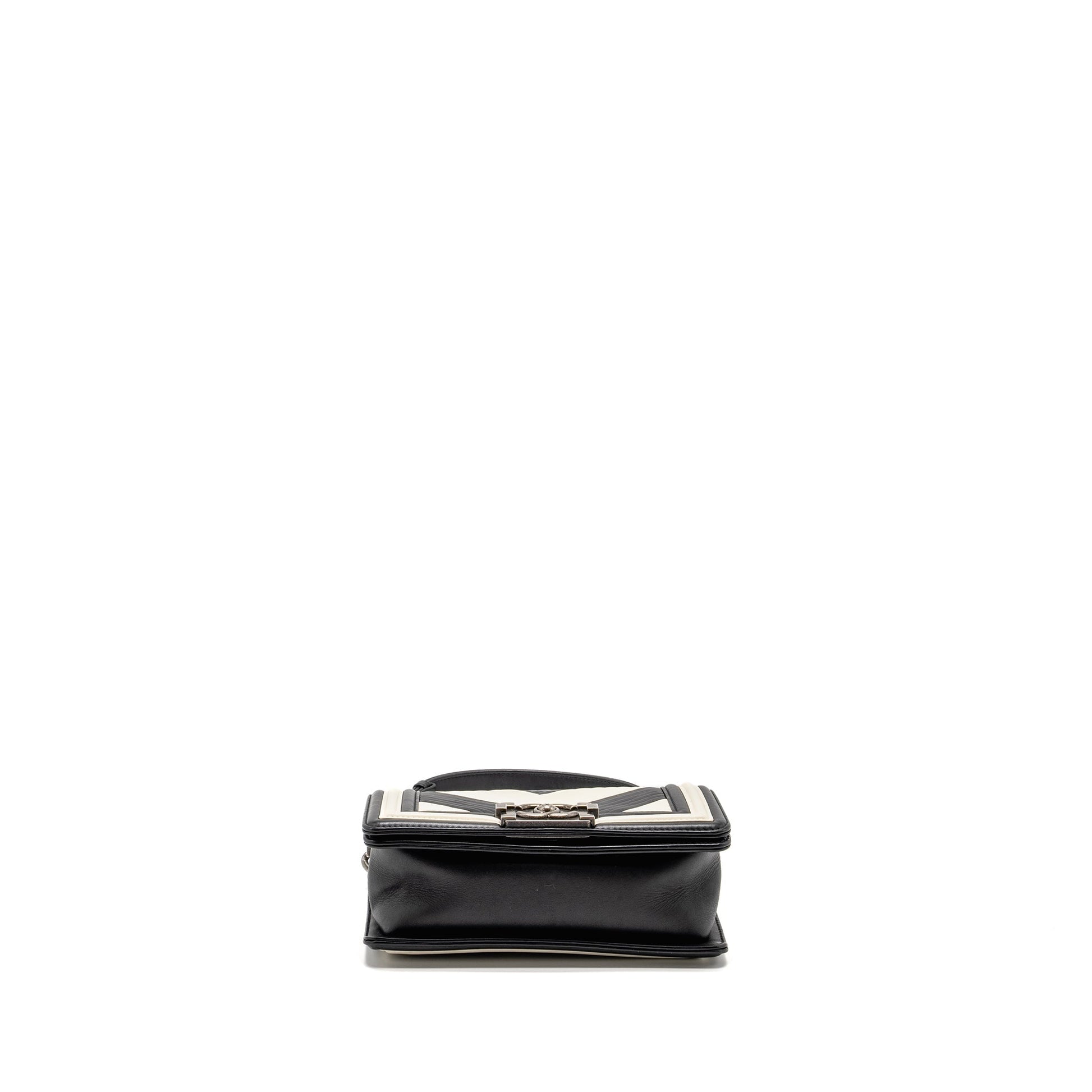 Chanel Small Boy Bag Chevron Calfskin White/Black Ruthenium Silver Hardware