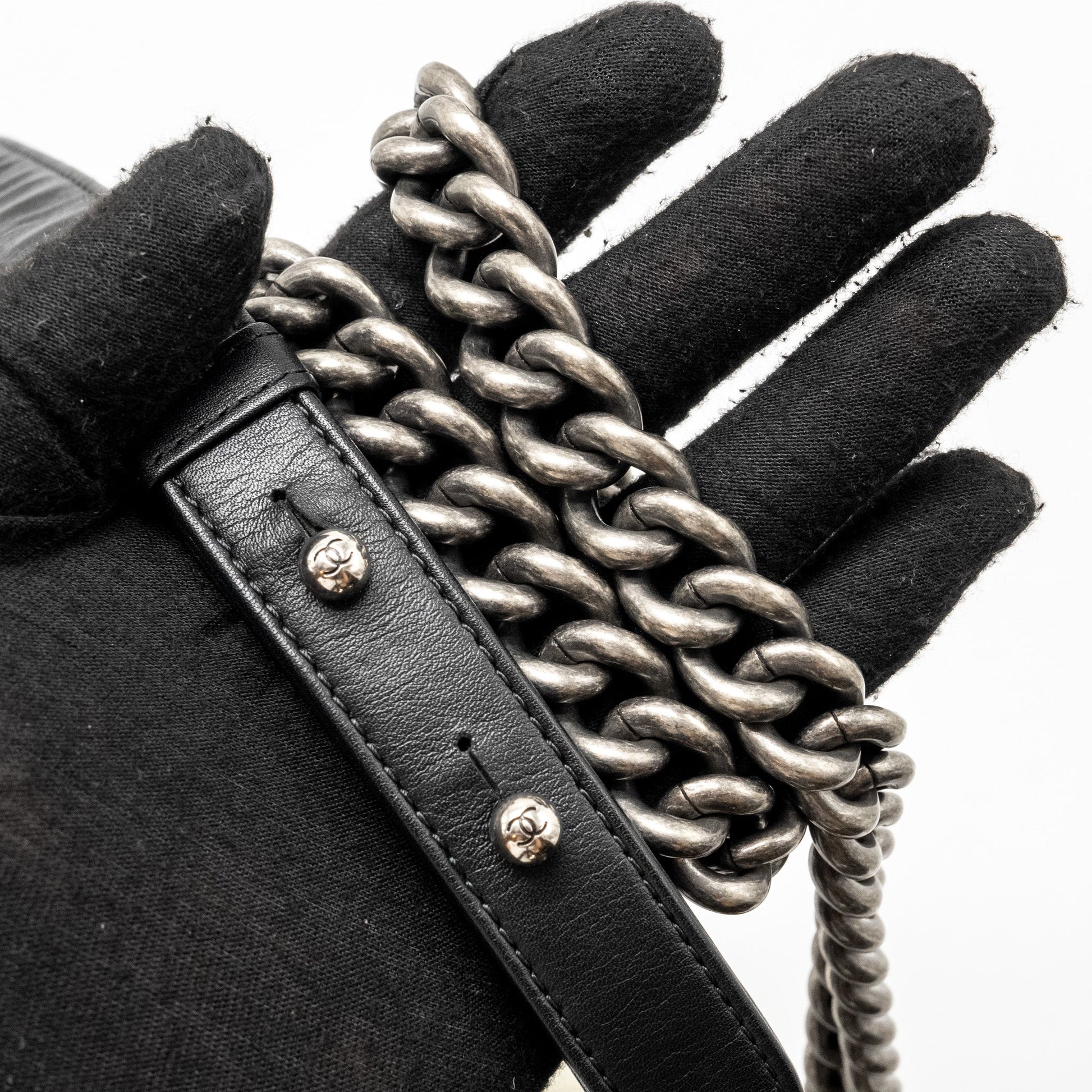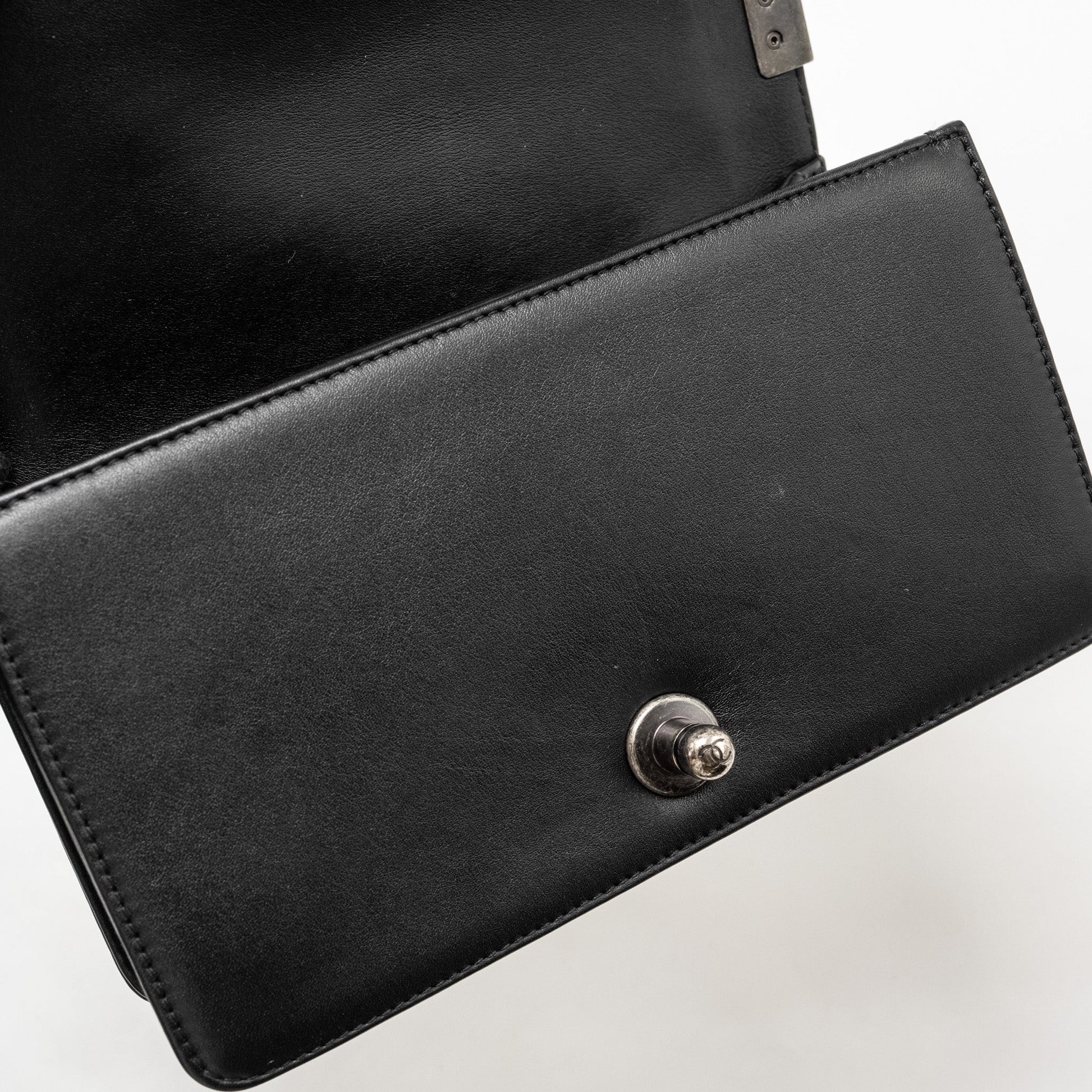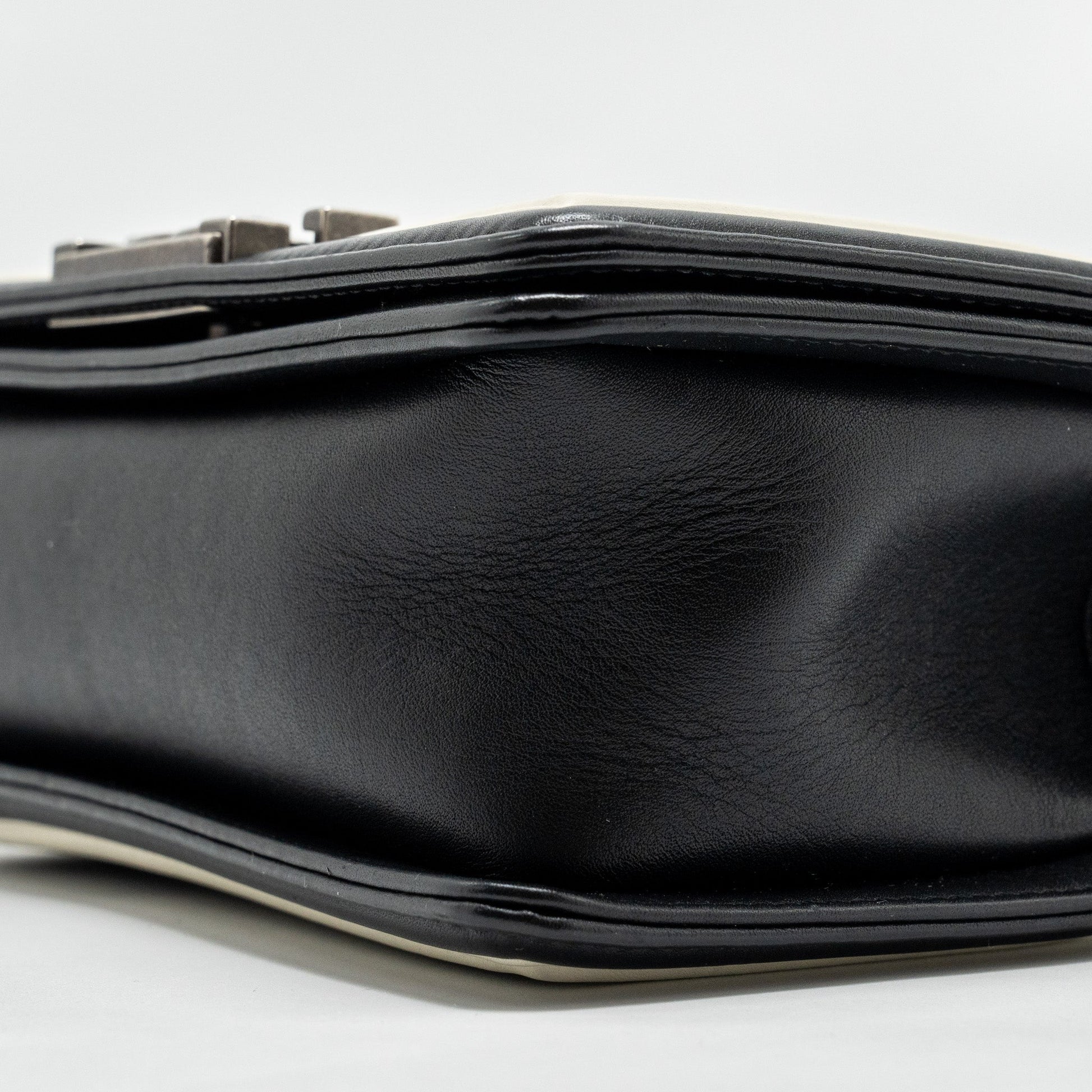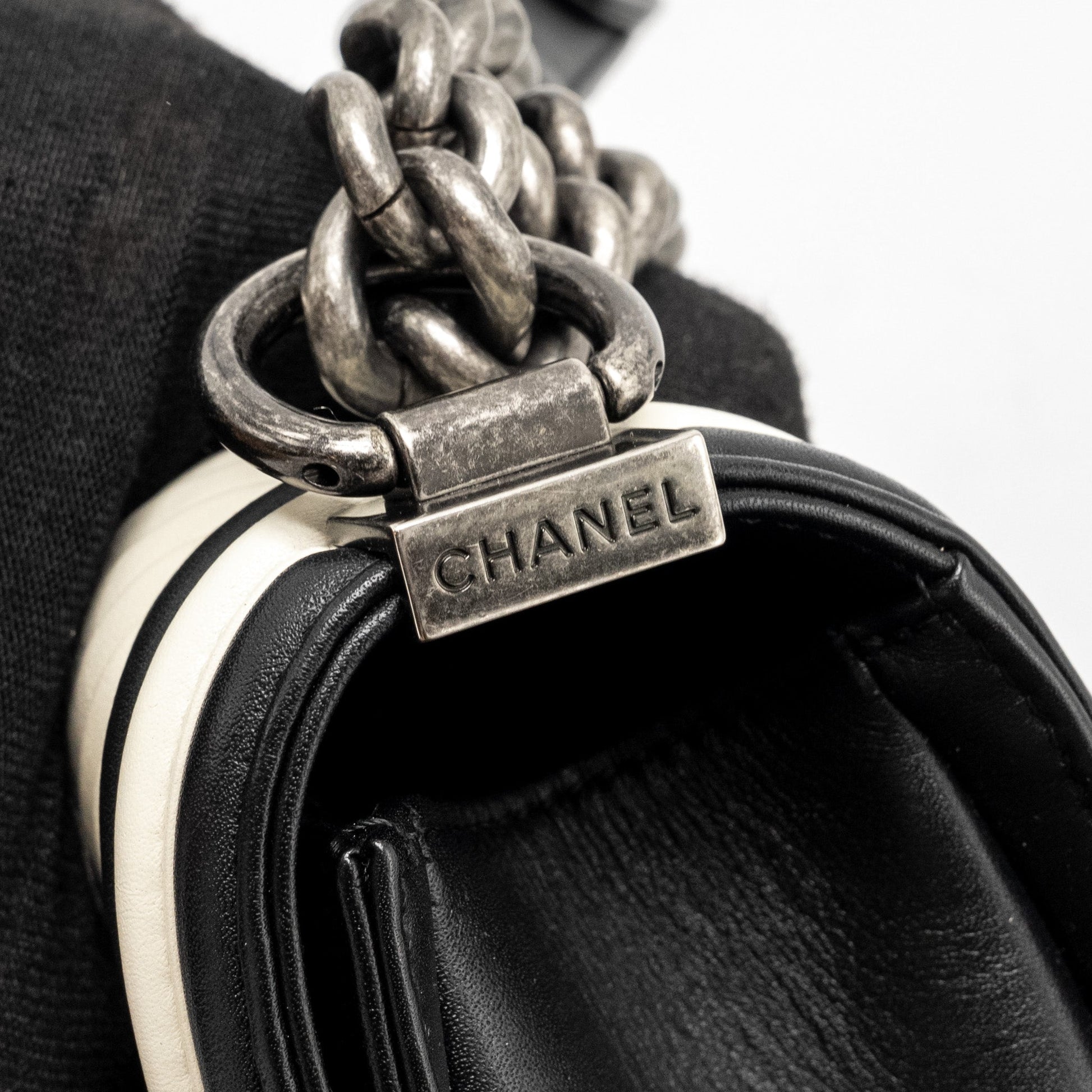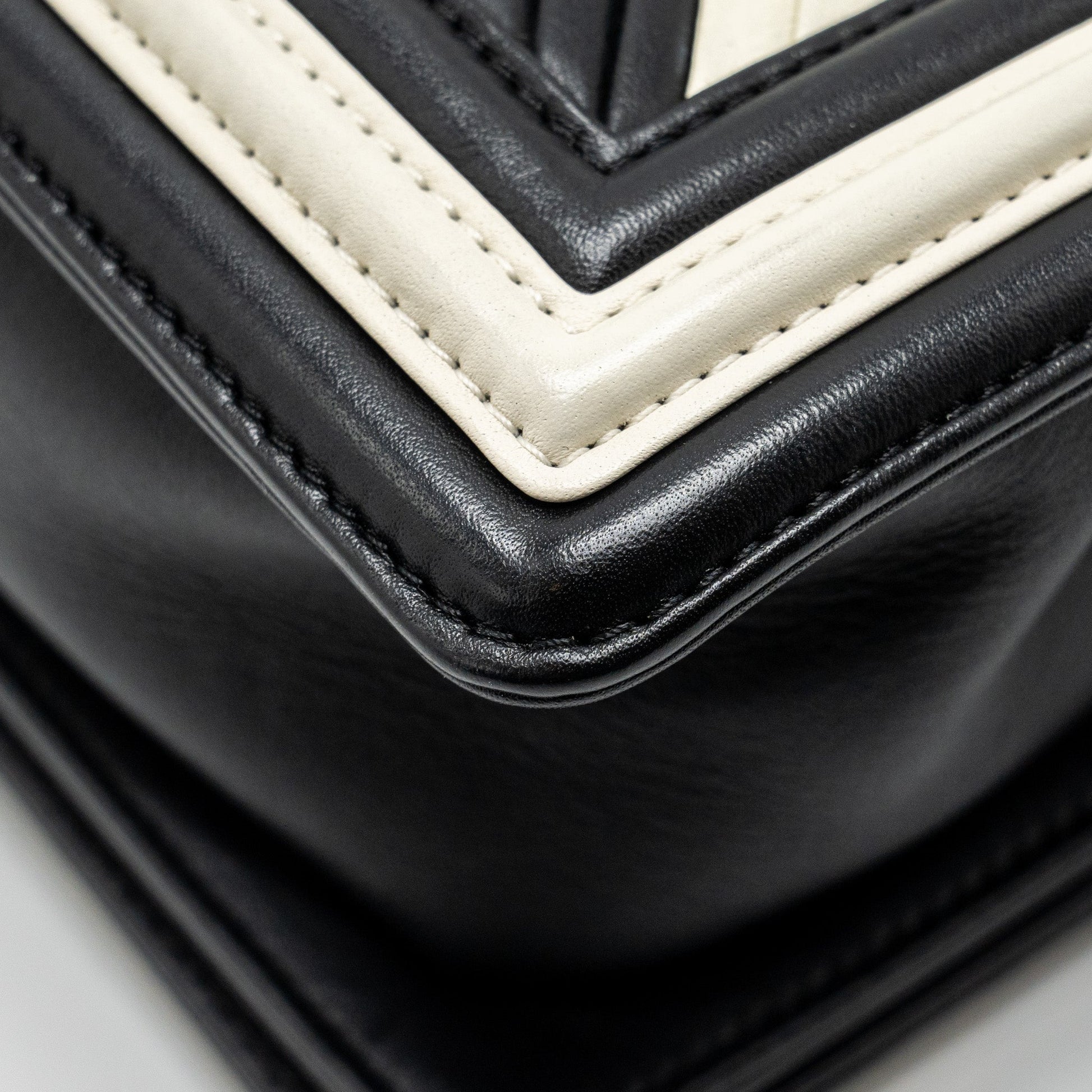 Chanel Small Boy Bag Chevron Calfskin White/Black Ruthenium Silver Hardware