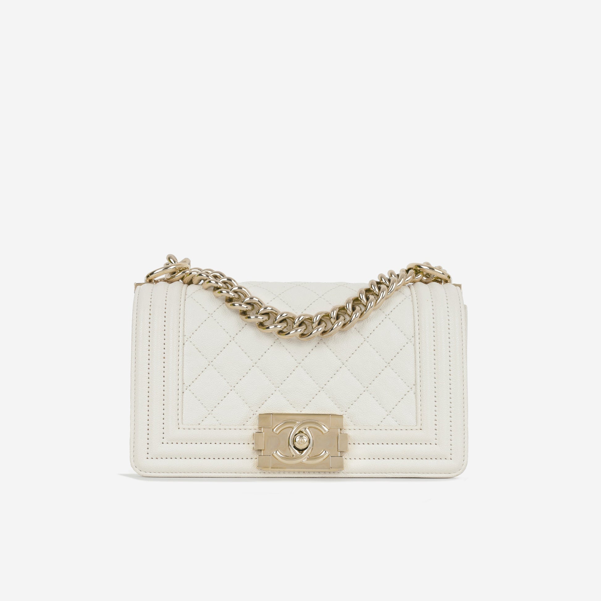 Chanel Small Boy Bag Ivory Caviar Champagne Gold Hardware