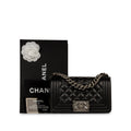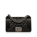 An absolute must-have for any fashion lover with a soft spot for Chanel, it basically goes without saying that this bag is a necessity in any luxury handbag collection. The Boy bag is not only an iconic piece that will remain in style forever, but it's the perfect balance between classic elegance and modern edge. Wear this bag with absolutely anything in your wardrobe, from casual jeans and a basic tee to a dressy skirt and blazer - you'll be sure to compliment any look with the Small Boy by your side. Carefully crafted from black quilted caviar leather and ruthenium hardware, this bag is the ideal investment for any modern young woman with a fashion forward sense of style and a love for classic luxury. A well-worthy investment piece that will never decrease in value, this Boy is one you’ll never want to break up with.