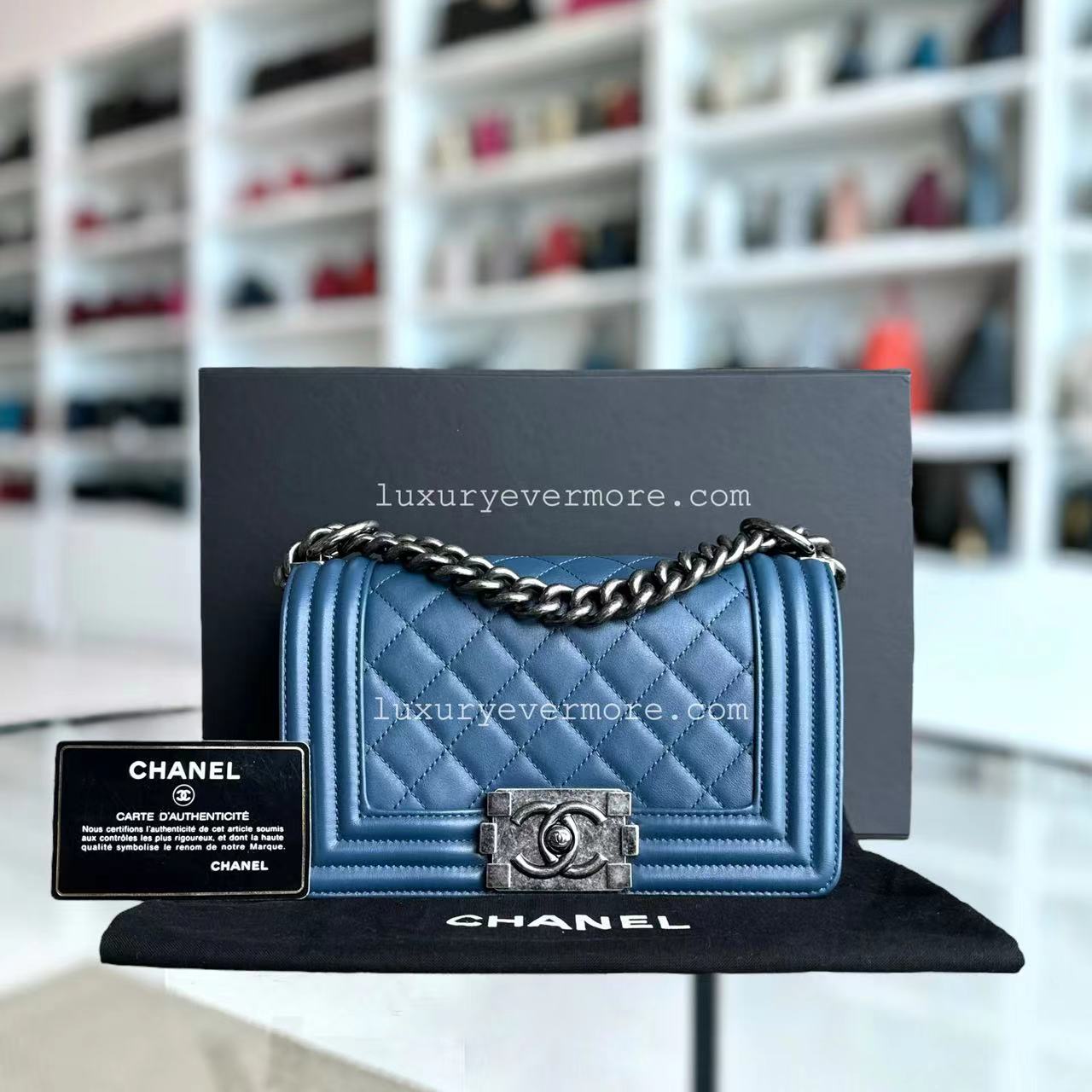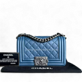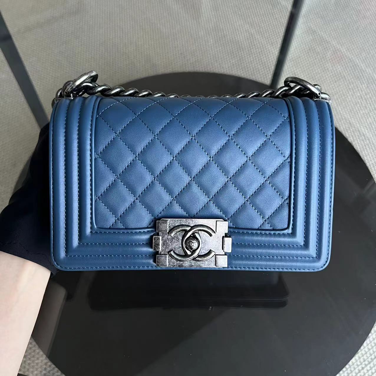 Chanel Boy Small - Quilted Calfskin Blue Ruthenium Silver Hardware Series 23
