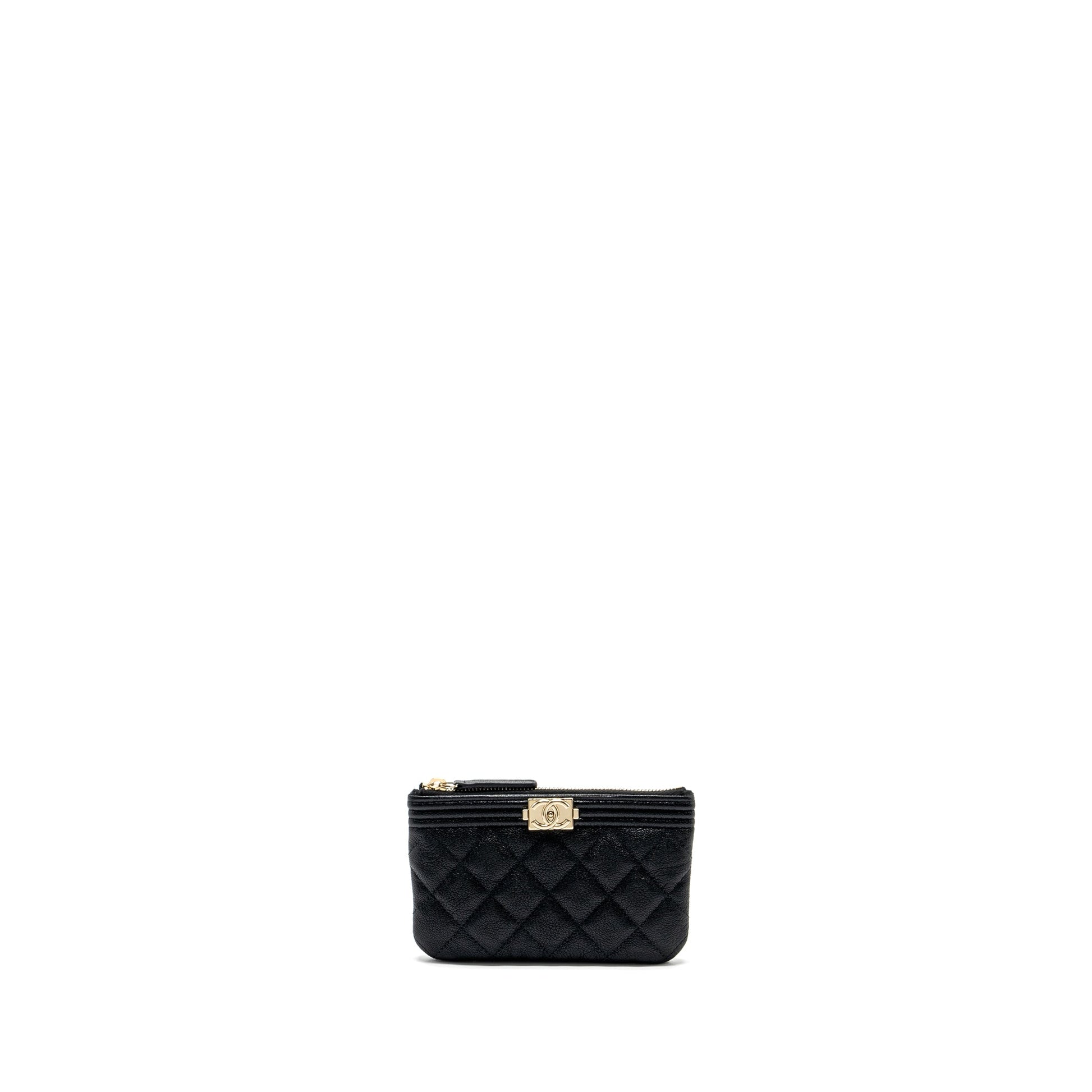 Chanel Small Boy Zip Pouch Shiny Grained Calfskin Black GHW