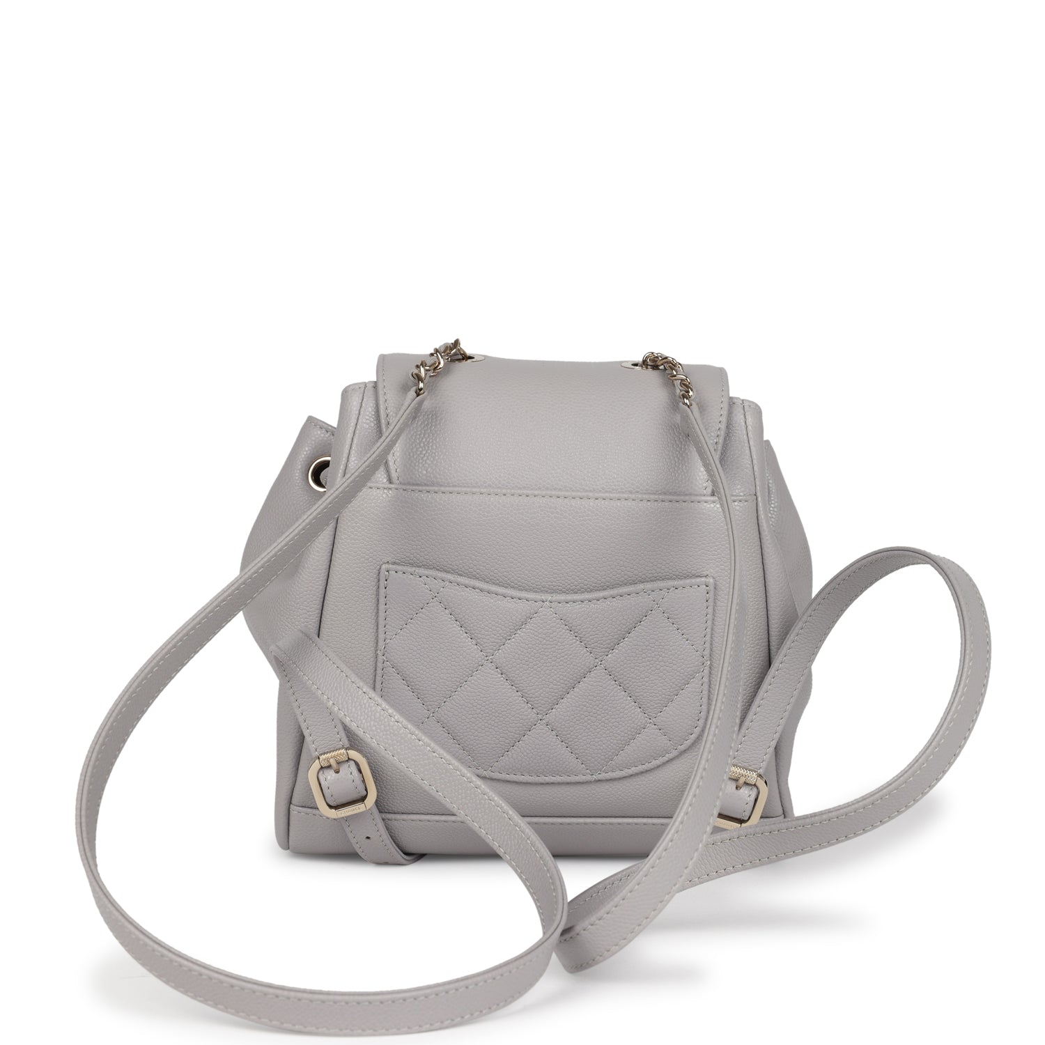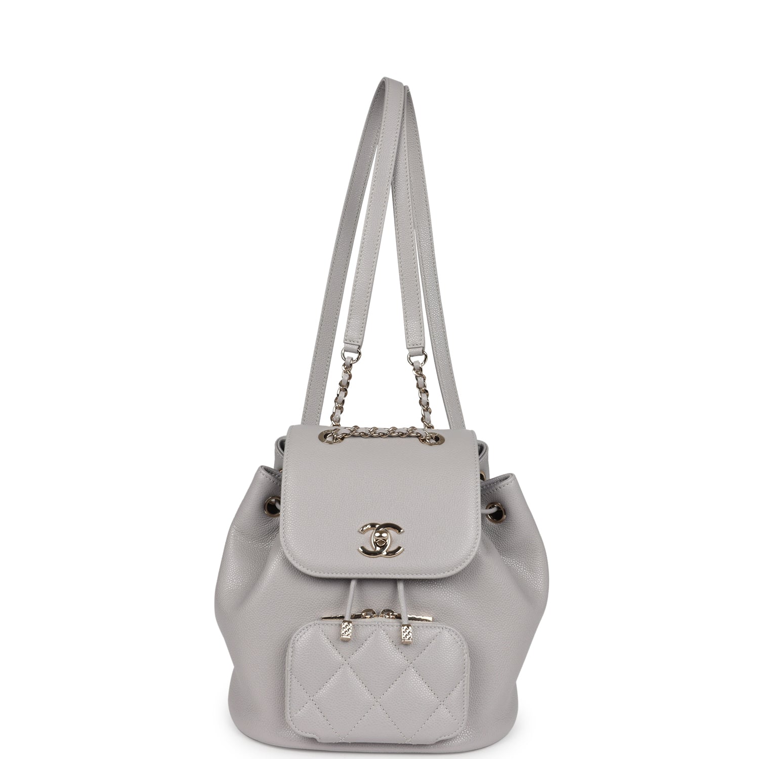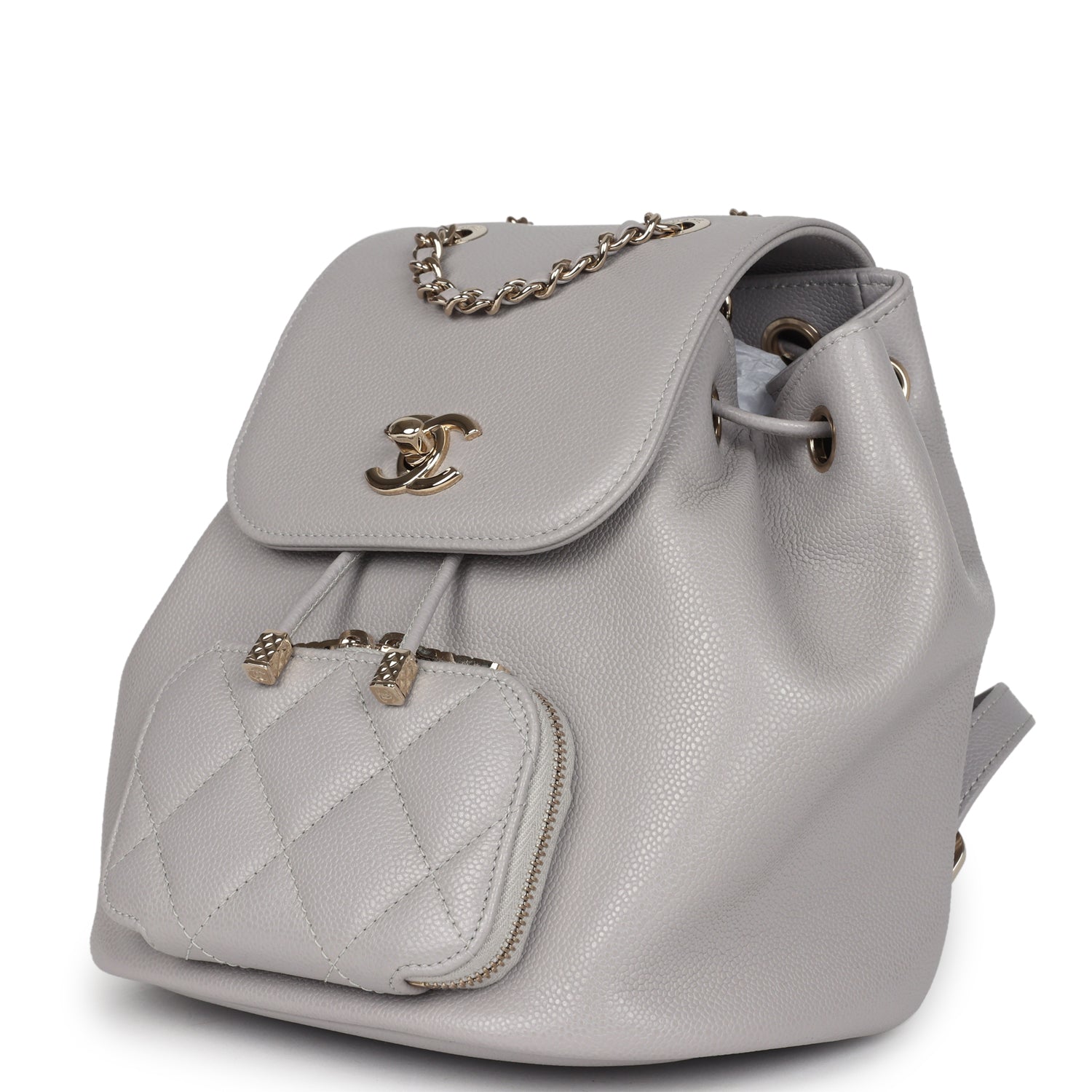 Chanel Small Business Affinity Backpack Light Grey Shiny Caviar Light Gold Hardware