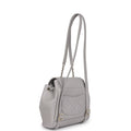 The interior is lined in light grey grossgrain fabric with one interior slip pocket on rear wall.