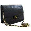 CHANEL Small Chain Shoulder Bag Clutch Black Quilted Flap Lambskin j85