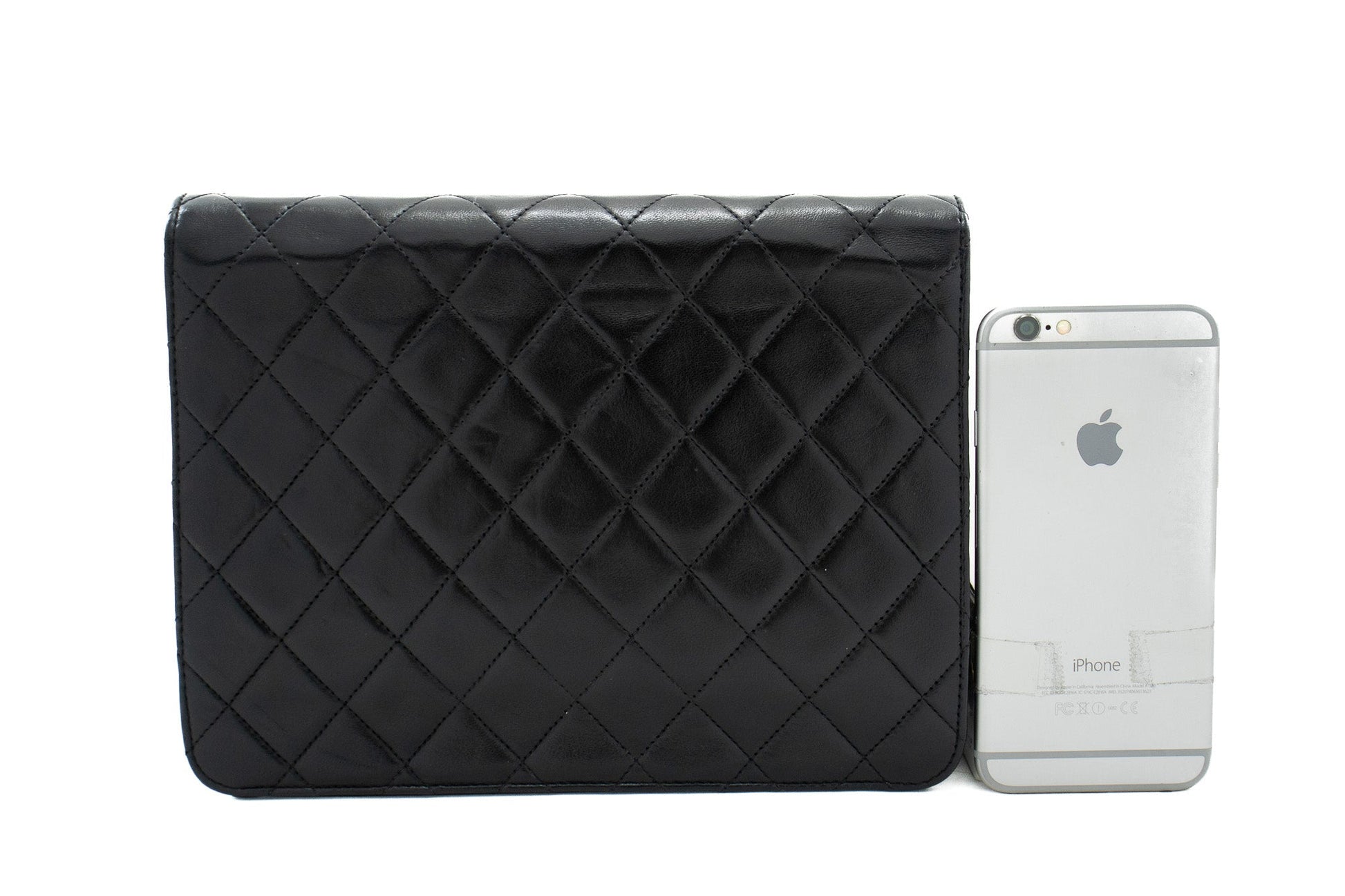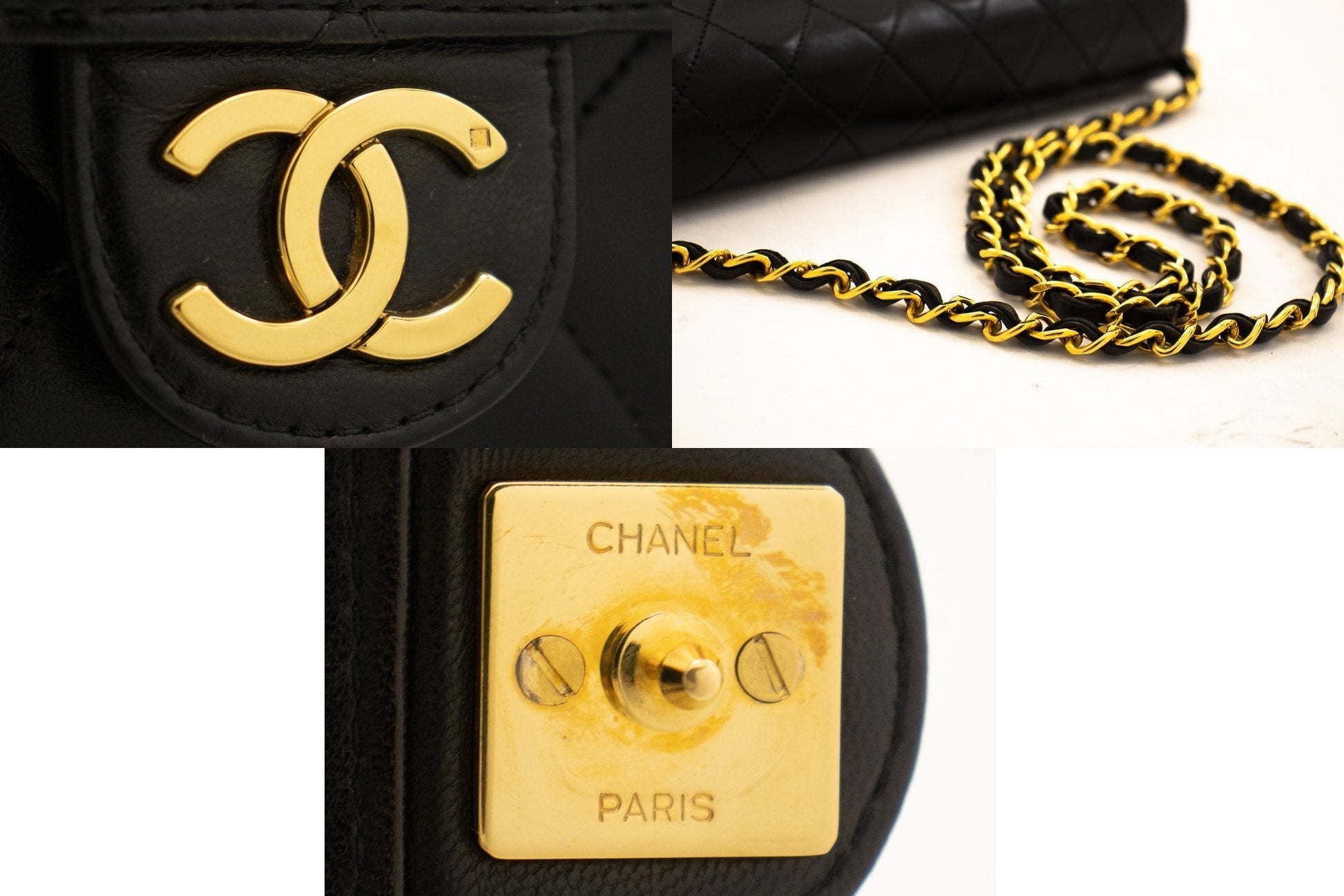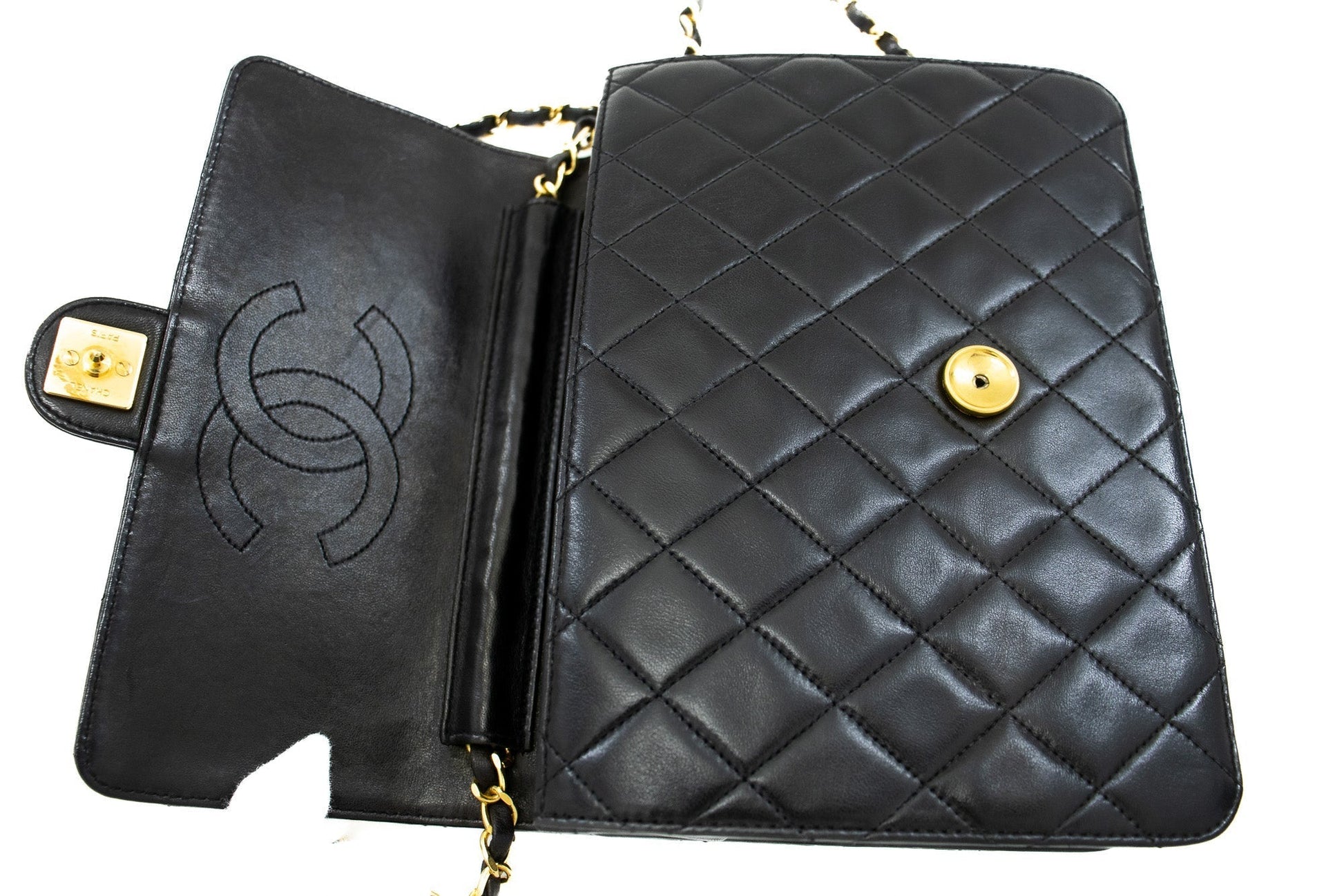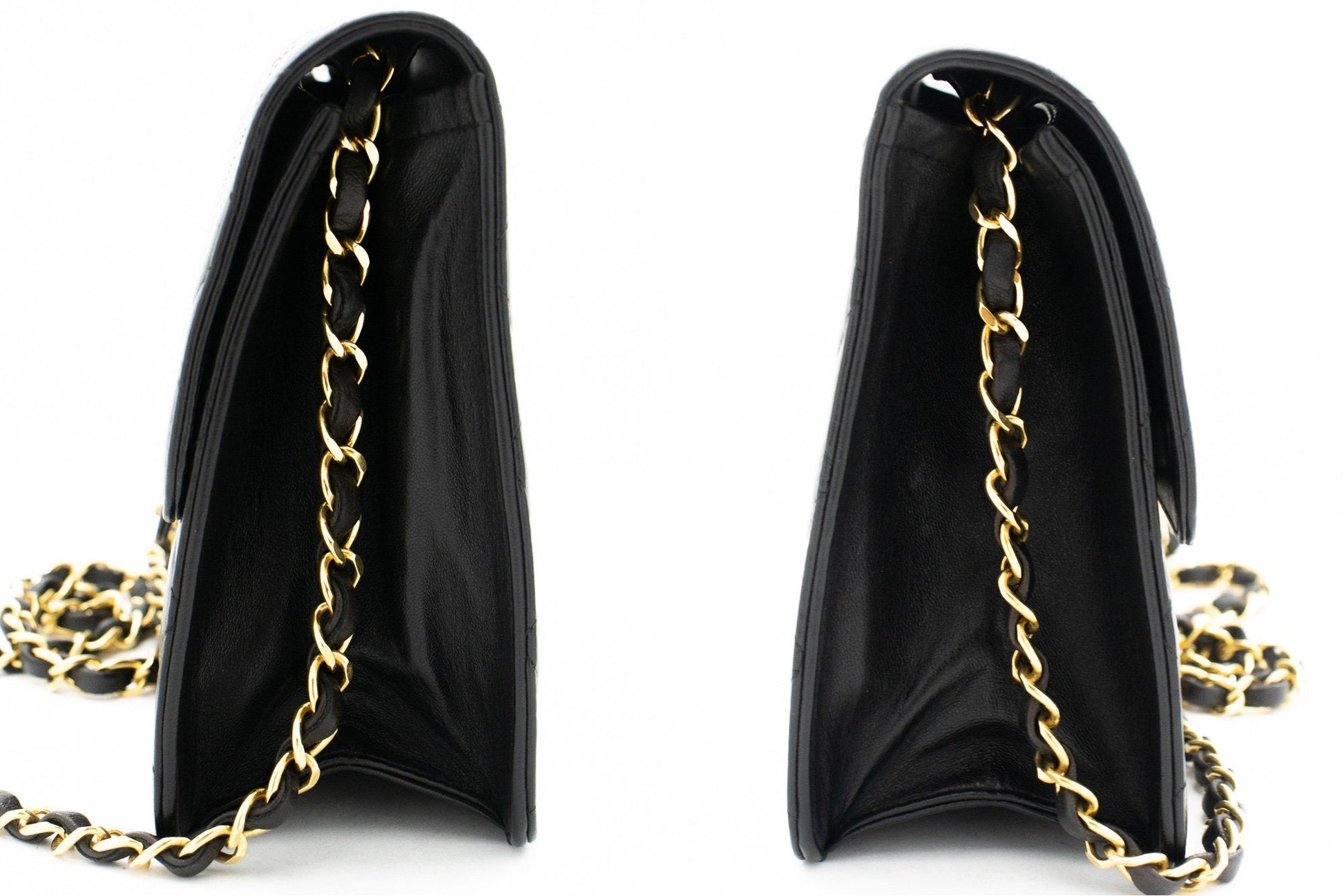 An authentic CHANEL Small Chain Shoulder Bag Clutch Black Quilted Flap made of black Lambskin j85 This item is Vintage / Classic. The year of manufacture would be 1991-1994.