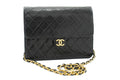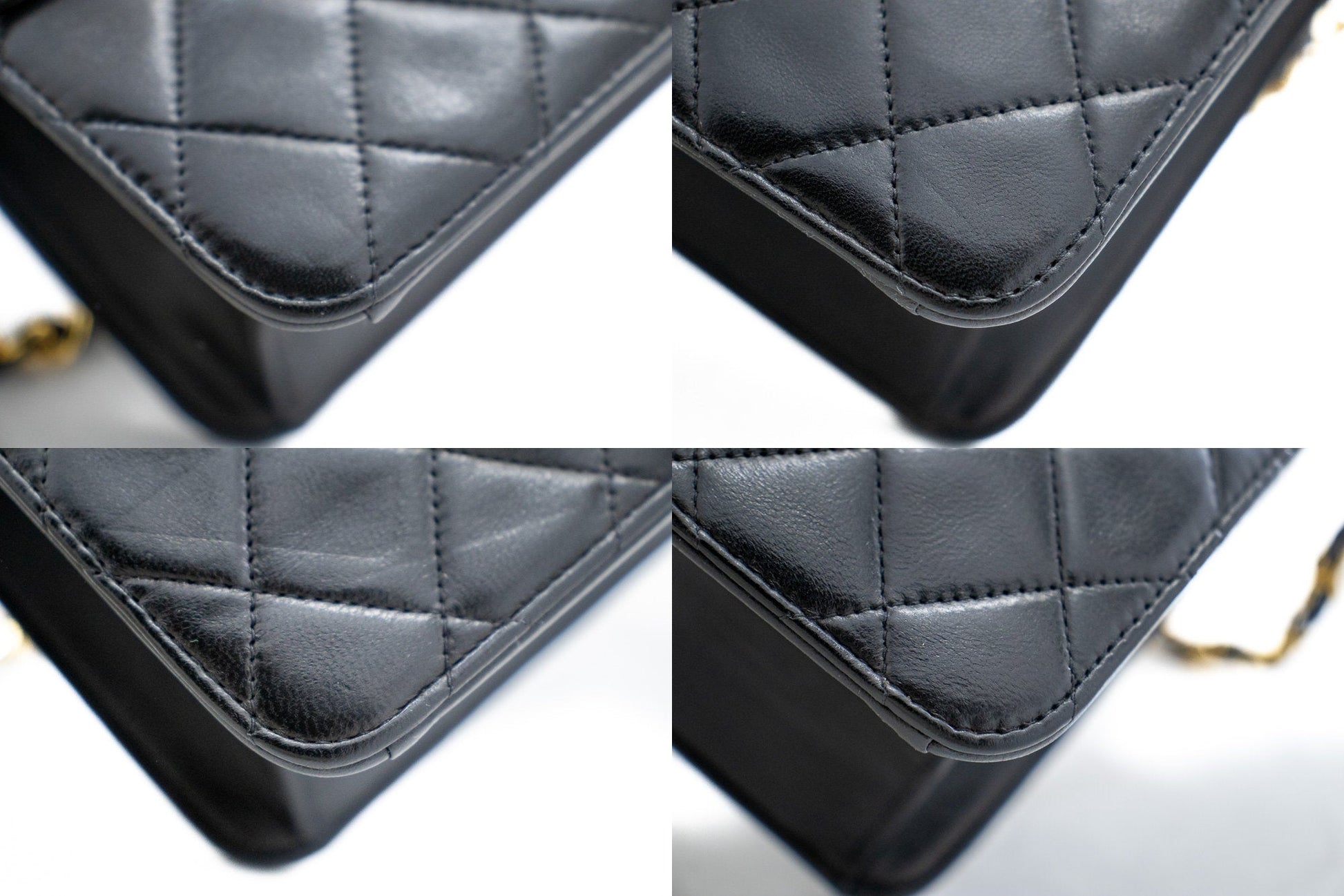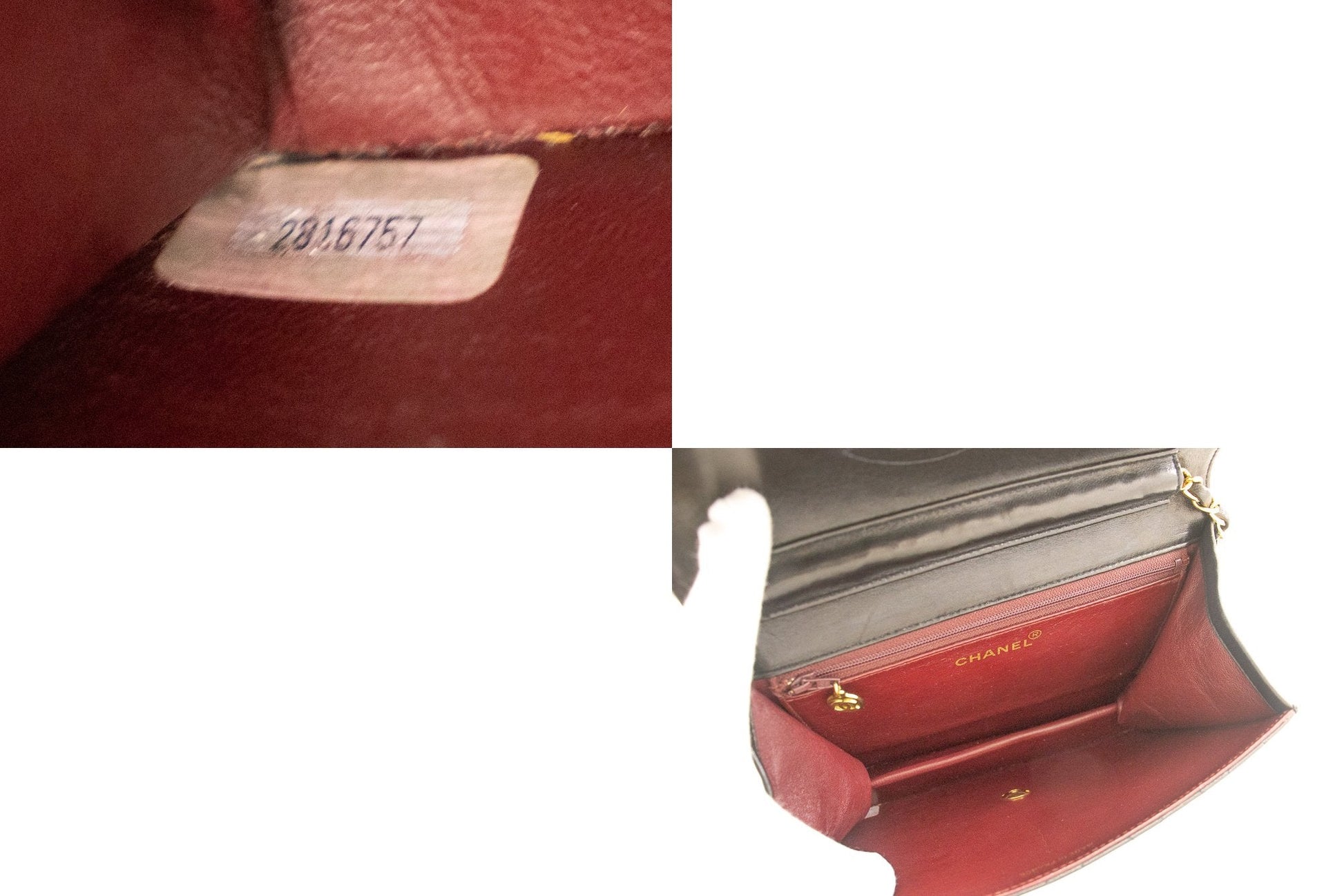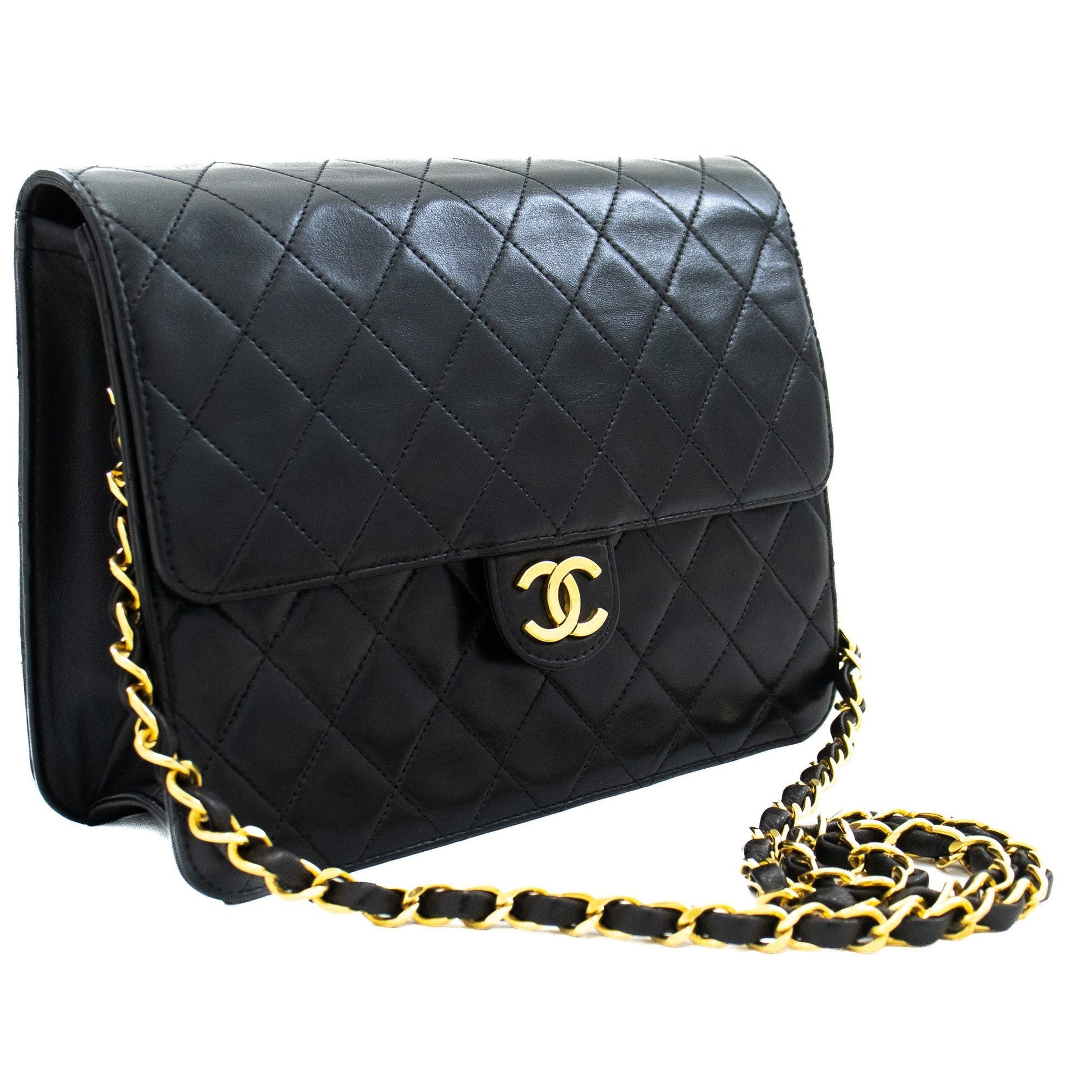 An authentic CHANEL Small Chain Shoulder Bag Clutch Black Quilted Flap made of black Lambskin j85 This item is Vintage / Classic. The year of manufacture would be 1991-1994.