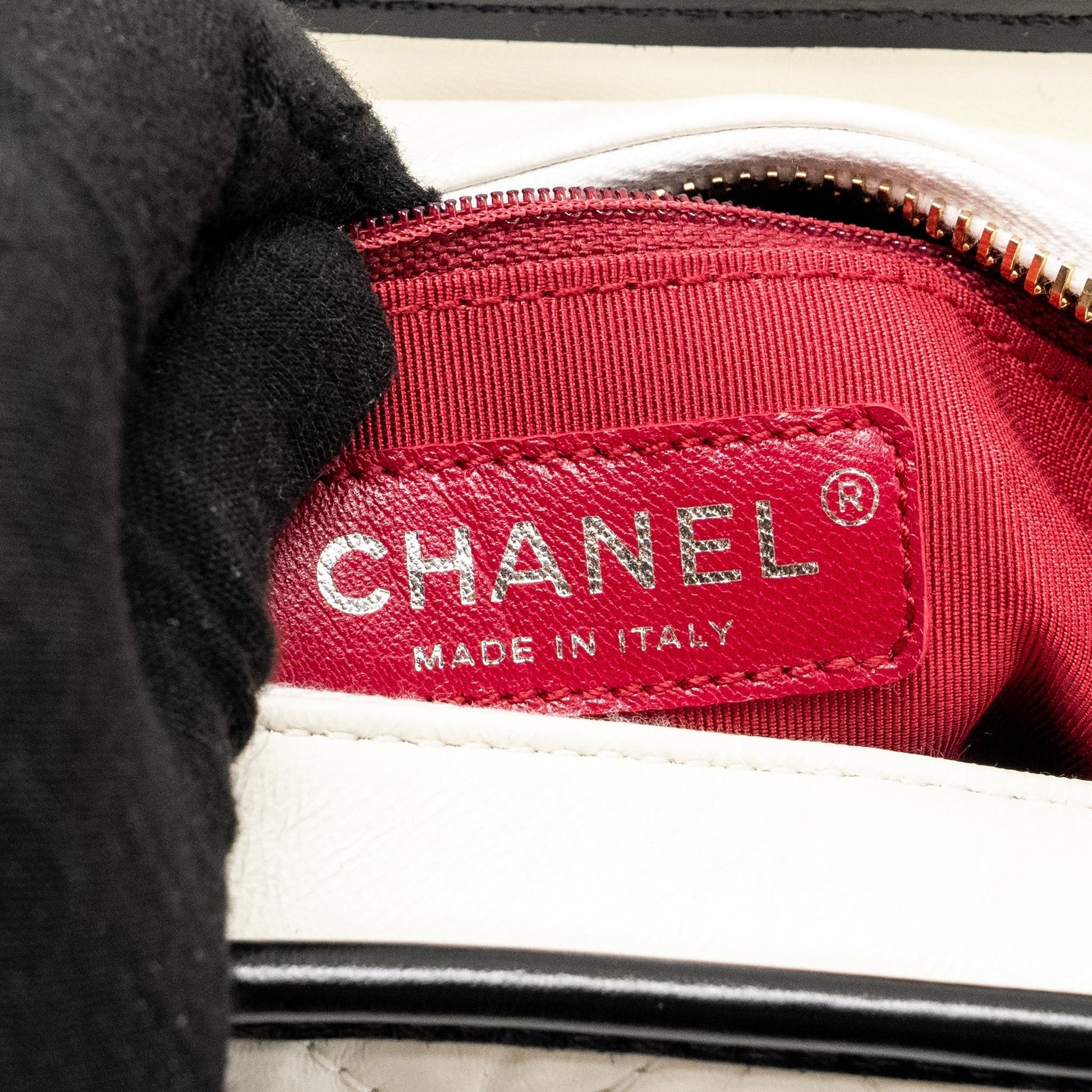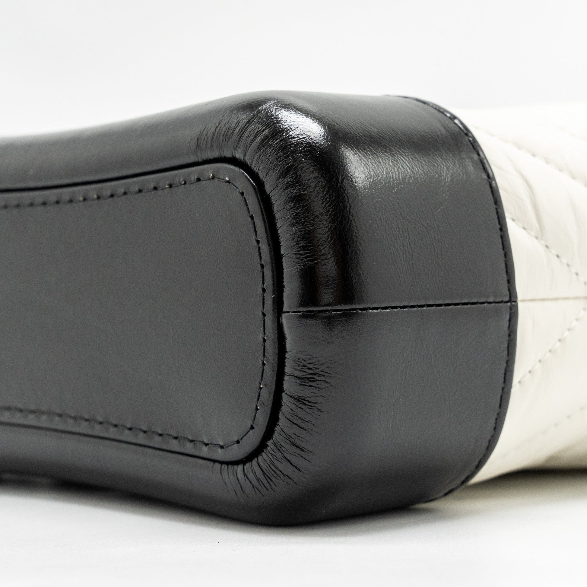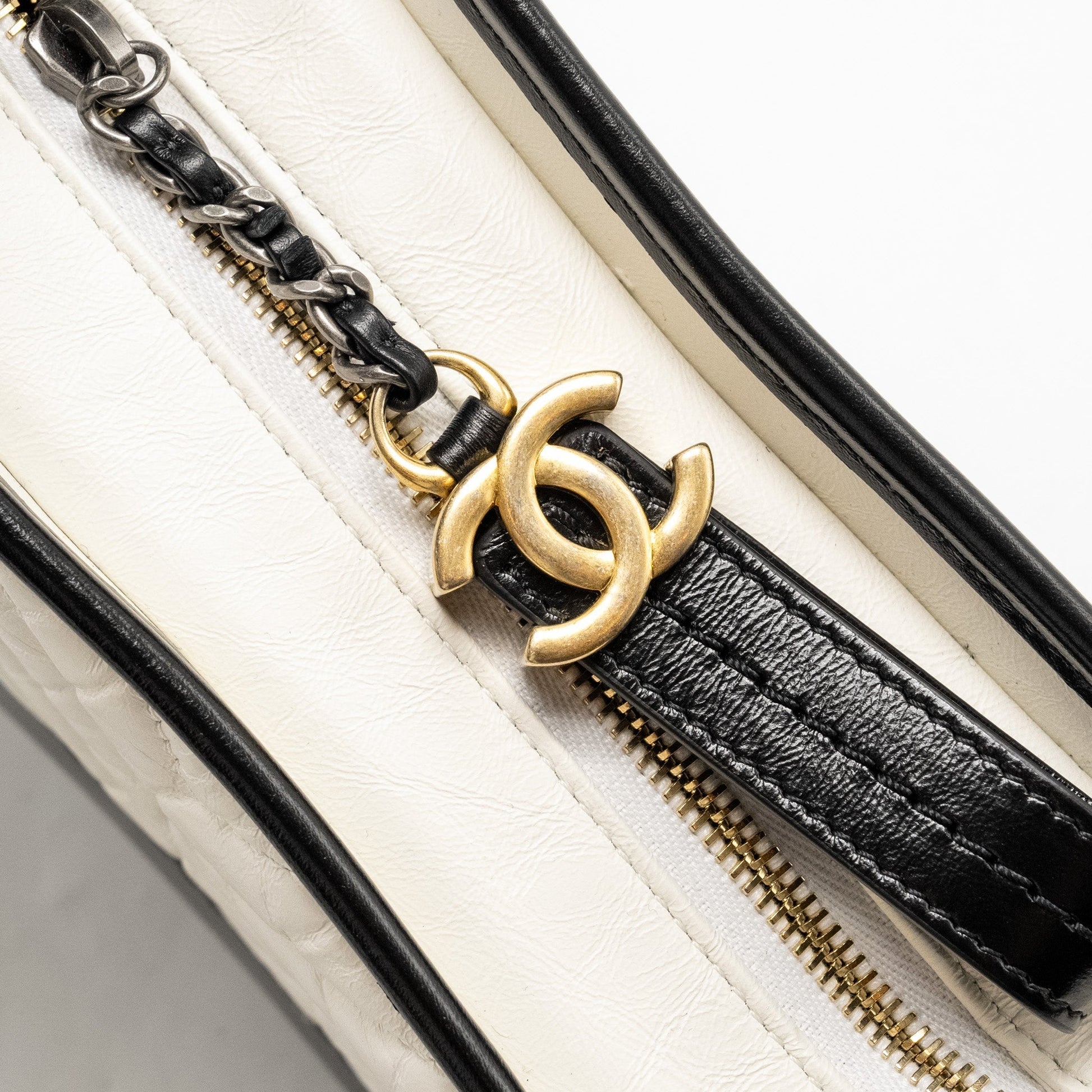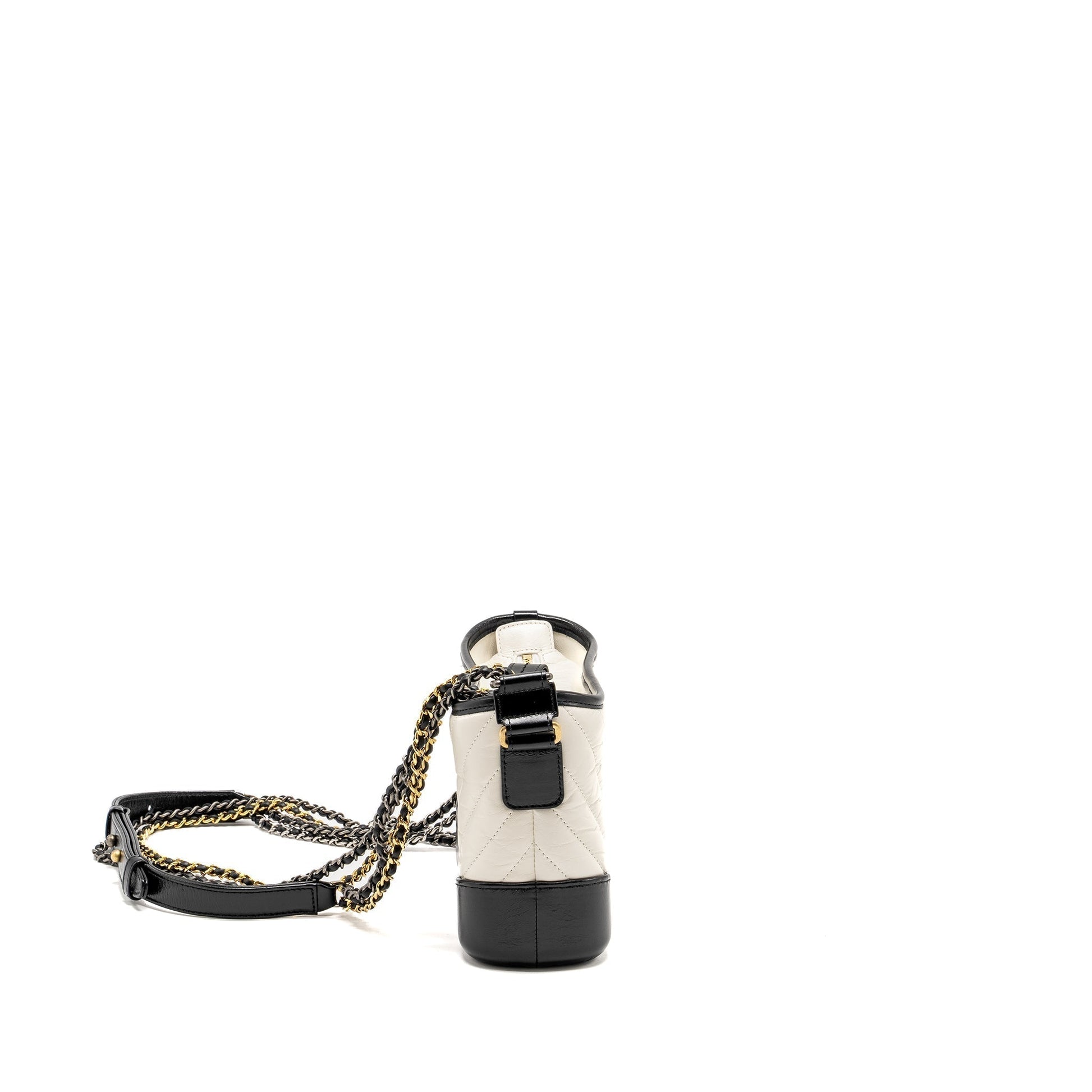 Chanel Small Chevron Gabrielle Hobo Bag Calfskin White/Black Multicolour Hardware